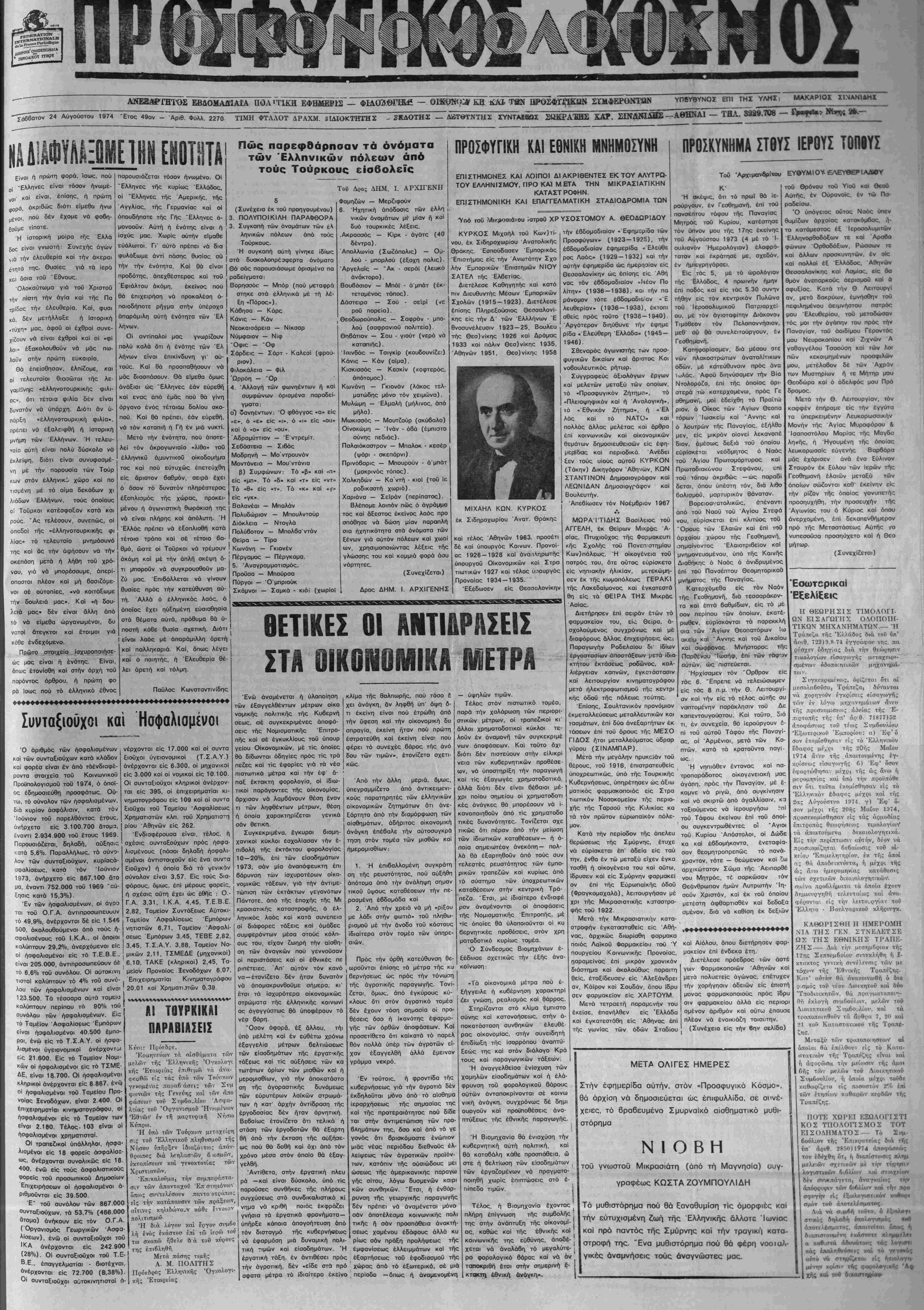 24 Αύγούστου 1974 Έτος 49ον - Αριθ. ΦΟλλ. 2270 ΤΙΜΗ ΦΤΛΛΟΤ ΔΡΑΧΜ. 3ΐΔΙΰΚΤΗΤΗΣ - 3ΚΔΟΤΉΣ — ΔϋΤΘΤΝΤΗΣ ΣΥΝΤΑΙΒΕ.Σ ΣβΚΡΑΈΗΣ ΧΑΡ. ΣΙΝΔΤτΙΔΤΕ. —ΑΘΉΝΑΙ — ΤΗΛ. 8229.Τ08 — Γε^»«Τ»: :· ~{ —