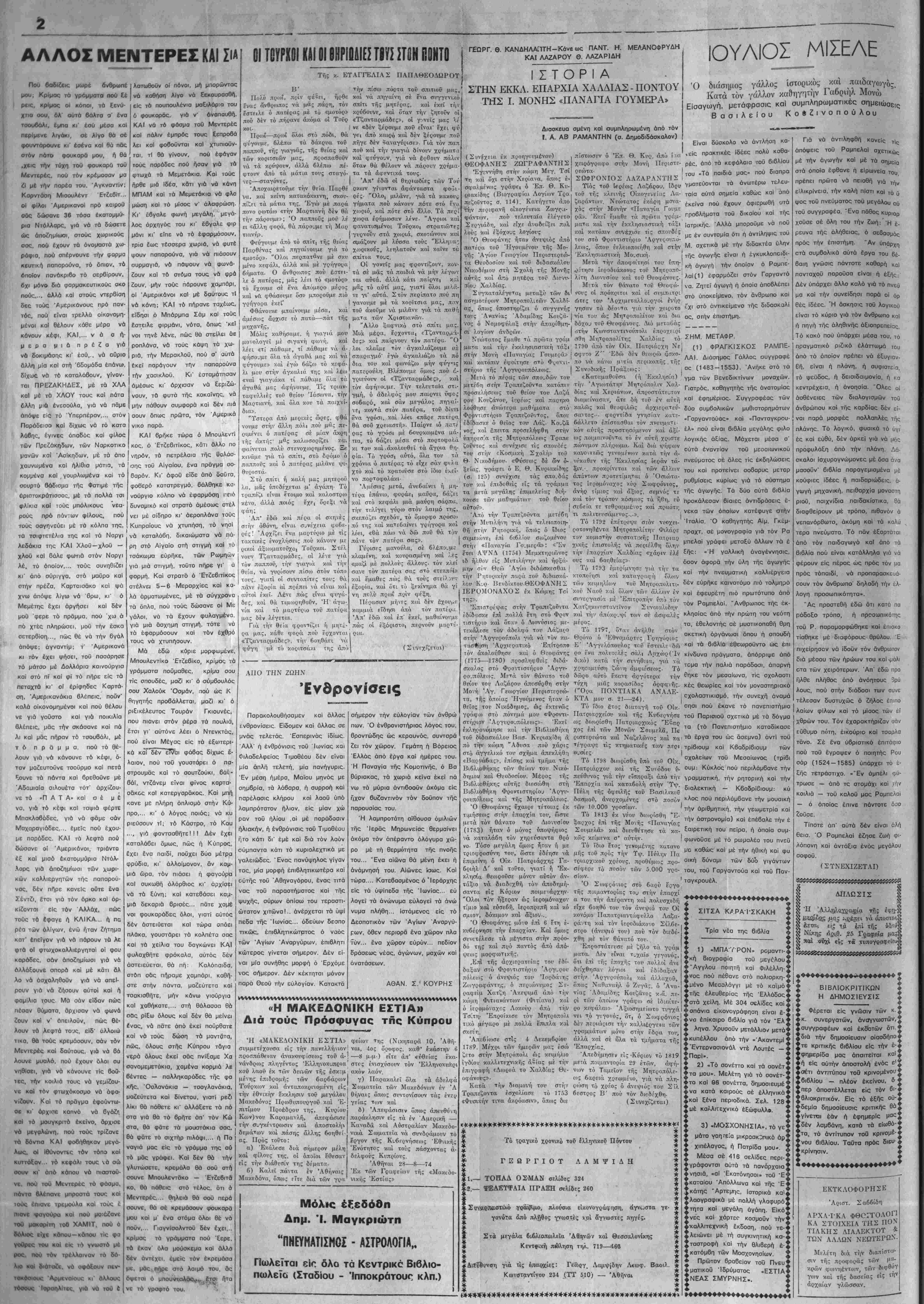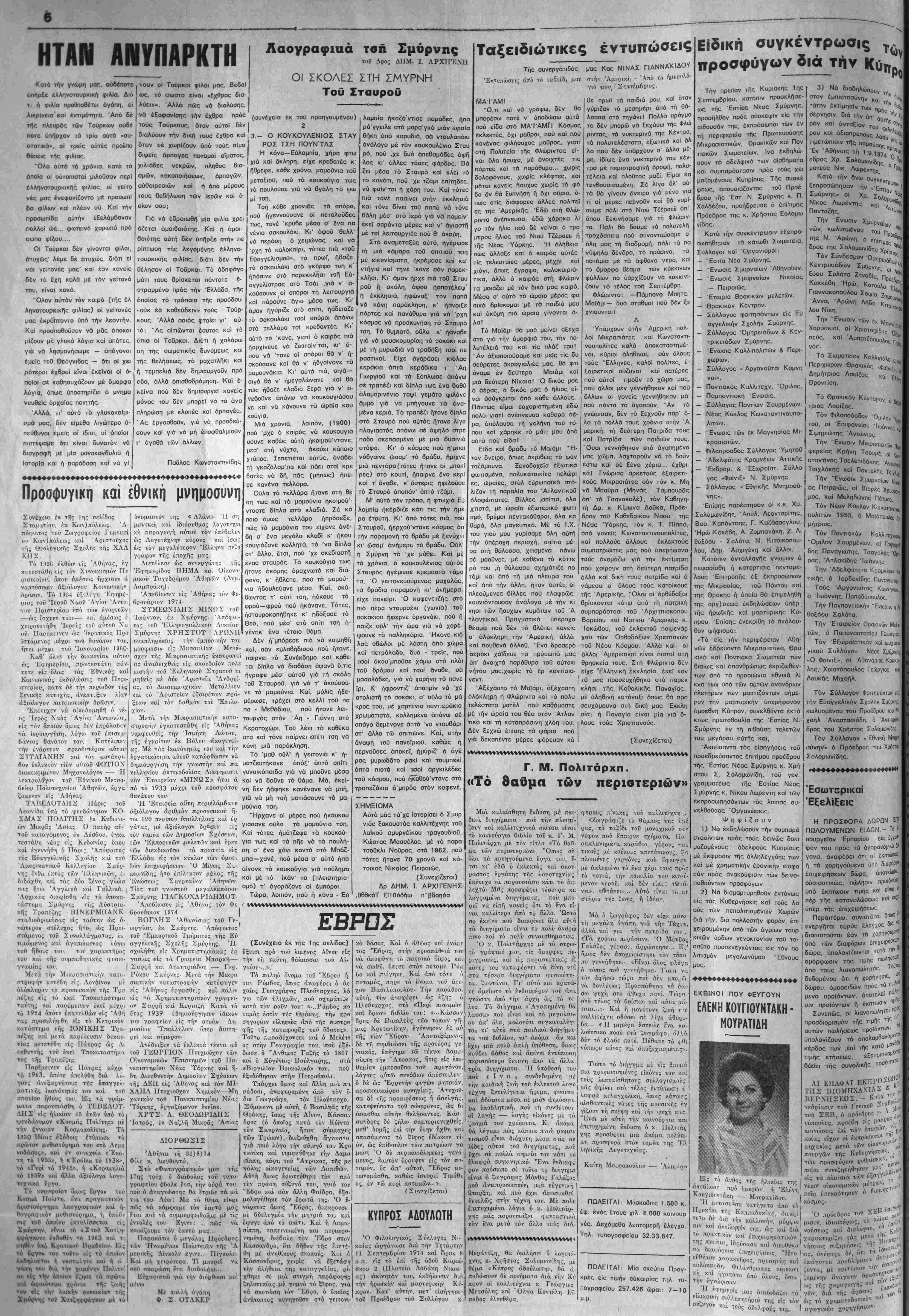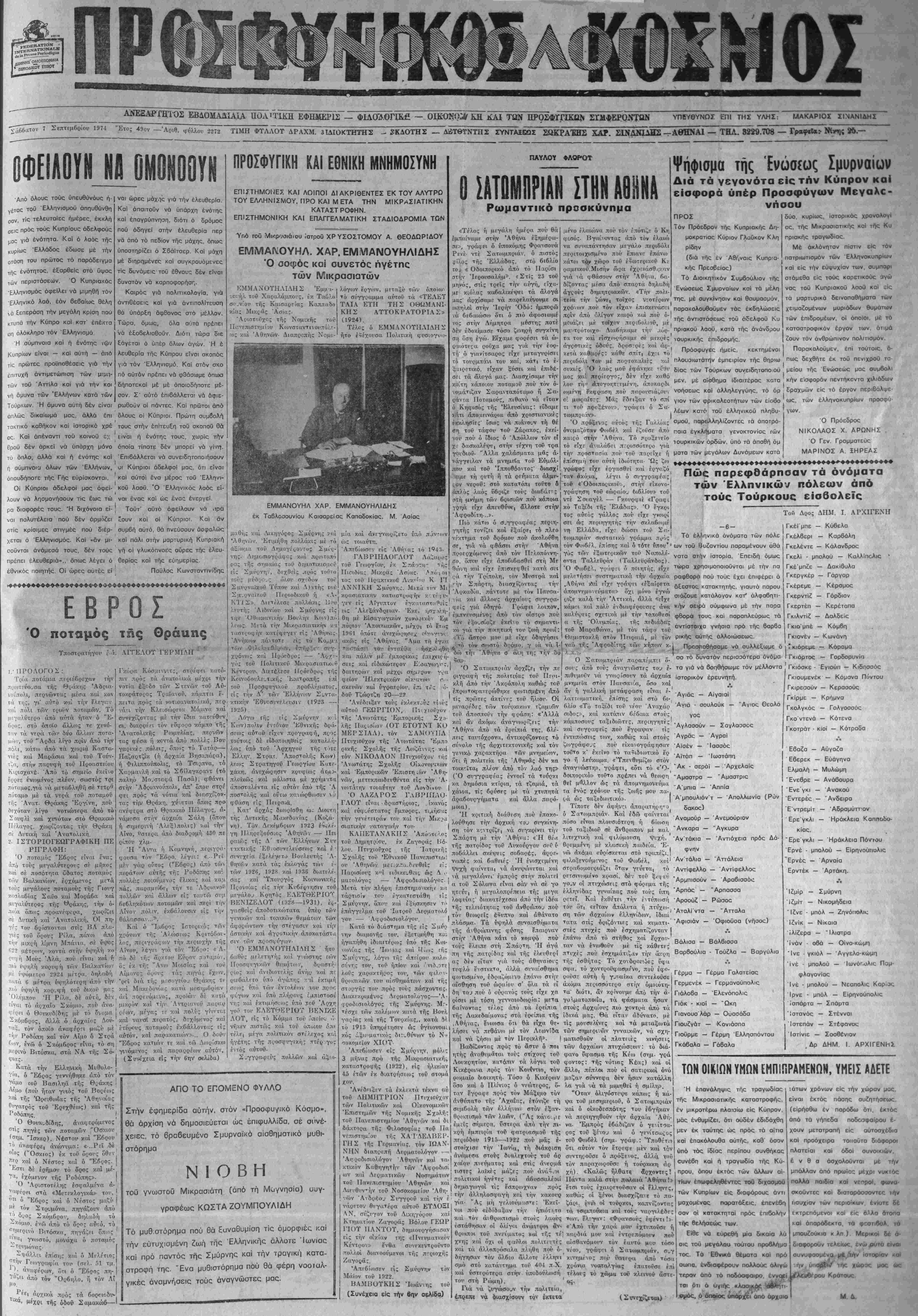 ν(ΐ66ατον 7 Σεπτέμβριον 1974 "Ετος 490ν —ΆΟιθ. φύλλον 2272 ΤΙΜΗ ΦΤΛΛΟΤ ΔΡΑΧΜ. 3ΪΔΙύΚΤΉΤΗΣ - 3ΚΔΟΤΉΣ _ Δ&ΤΘΤΝΤΗΣ ΣΥΝΤΑΞΕΩΣ ΣΩΚΡΑΈΗΣ ΧΑΡ. ΣΙΝΔόΝΙΛΗ-—ΑΘΗΝΑΙ — ΤΗΛ. 3229.708 — Γραφείω ΝΙιτης ».—