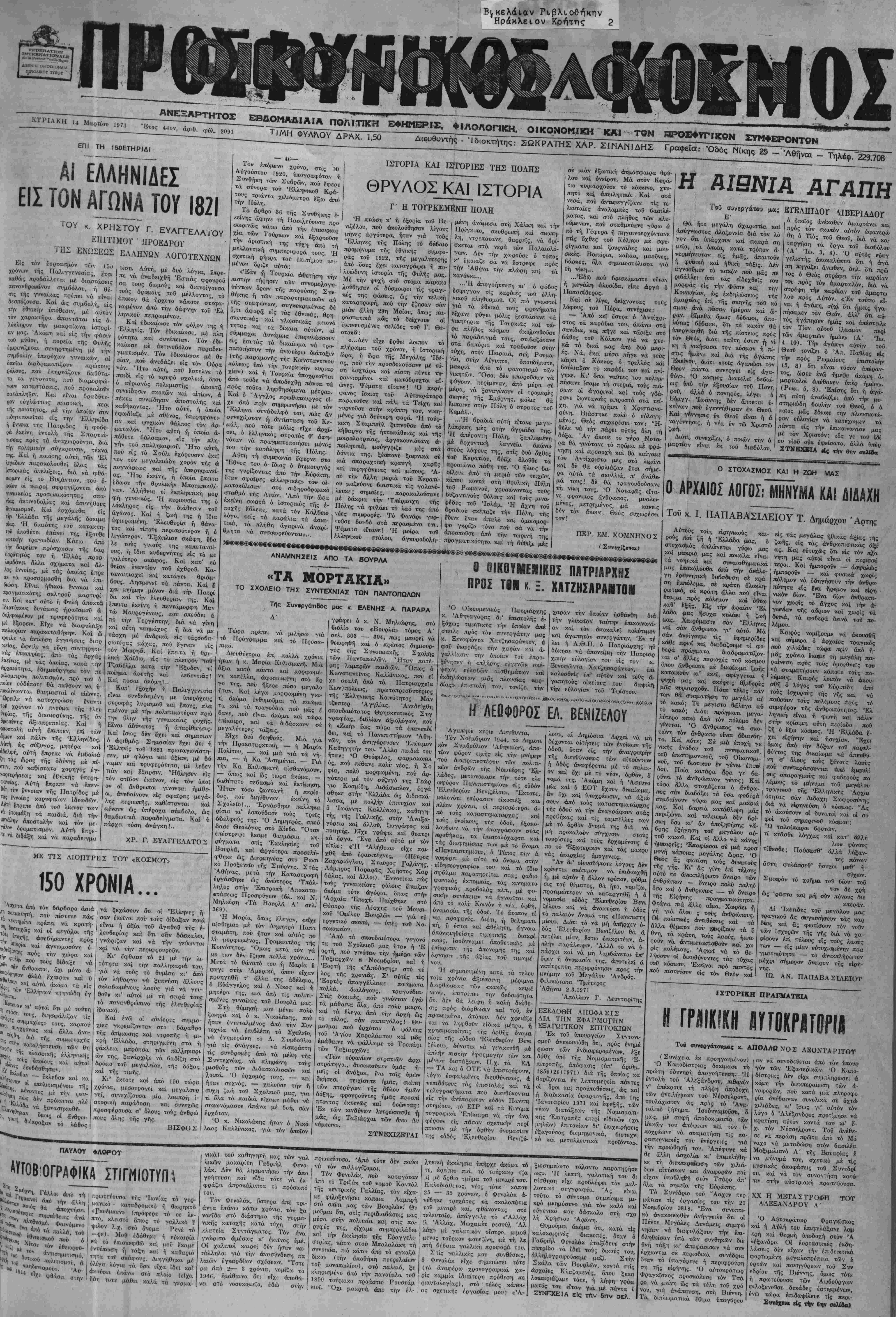 ΚΎΡΙΑΚΗ 14 Μαοτίου 1971 "Ετος 44ον, αριθ. φύλ. 2091