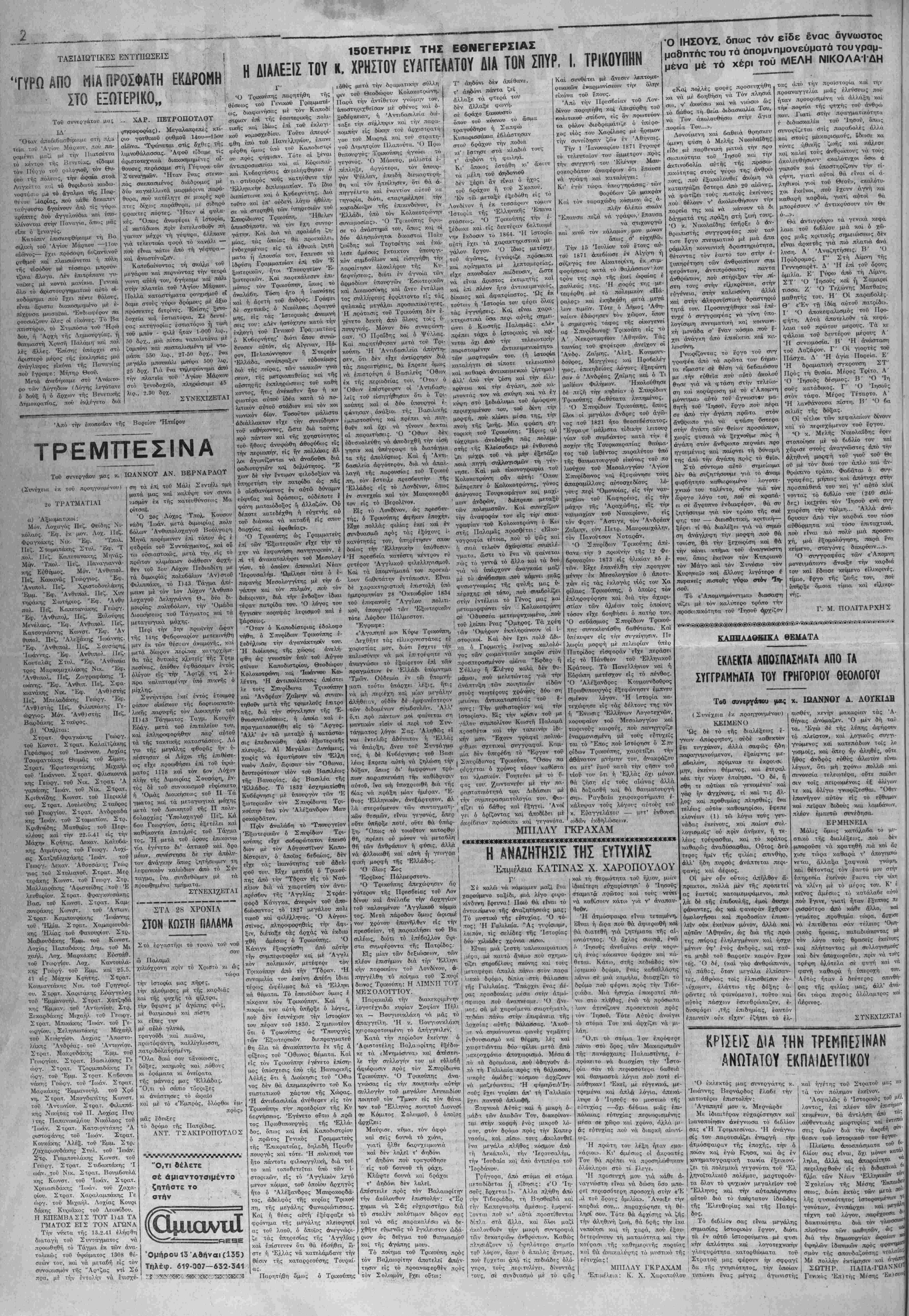 τε/ιλπ τον ηΜον τού και δια τού; ν)<χν κΛτ. ^ ,^ , .τονηρονς καΐ διά τούς άγαθούς λοφίβνΐου. Γεν. βντ.ττο καί βνέχει δώ τούς δικαίους κοΐ ΟόΛκ4οονλ<*> θ»»<τέ»ς 7 άδίκονς. (Ματθ. 5 44 — 4ξ) ροεβς- Τηλ. 226.024 λον, «'Η επί Τουρκοαρατίας έλ- ληνική παιδεία», τοΰ κ. Γ. Κρου- οταλάκη, «'Ενα δλέμμα είς τό I- διο>τικΛΛ· δίκαιον τοΰ Γένους κα¬