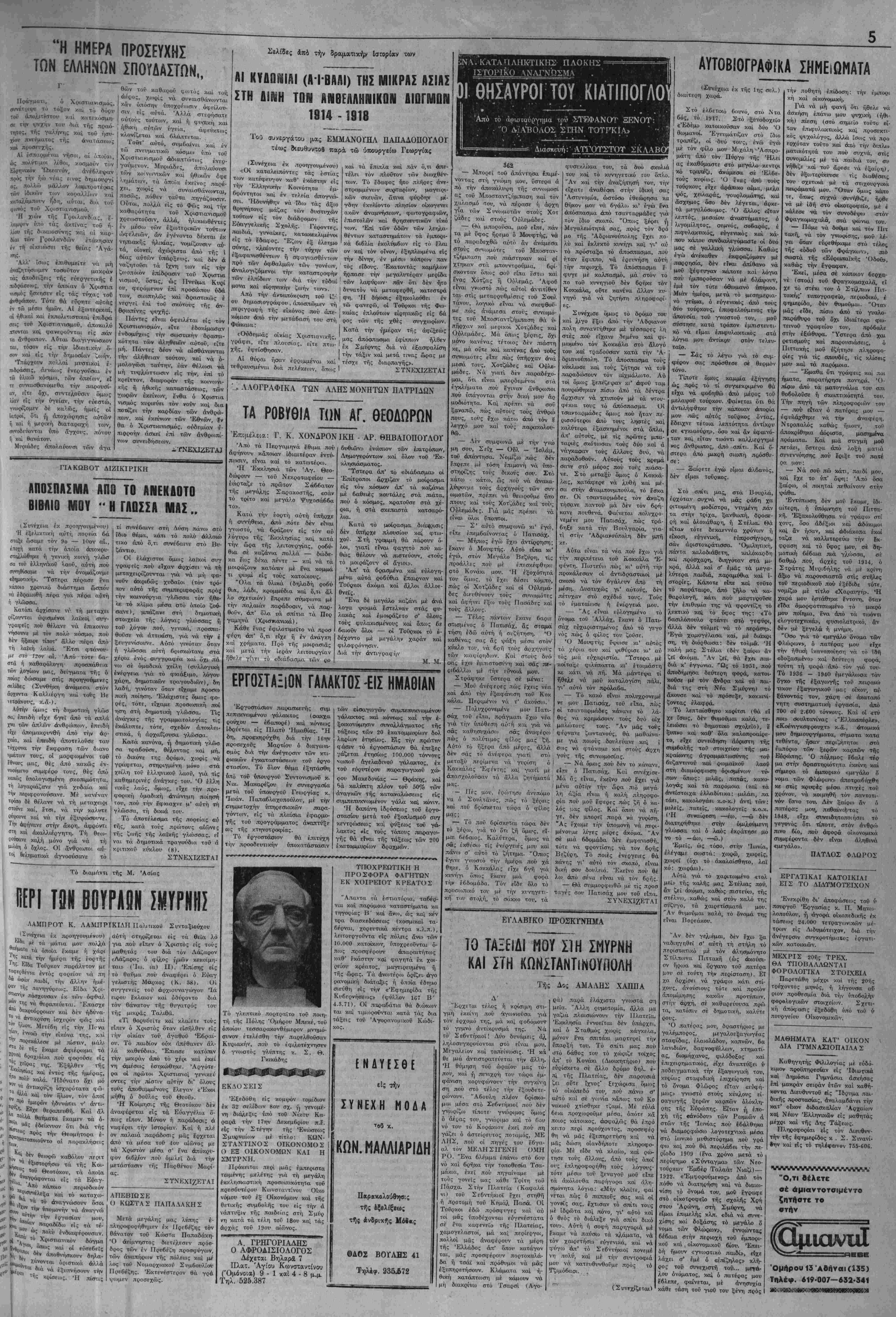 στίς αλλες περιφέφΕ<ίς, πού τα ηπίτκι ίίχαν παραθνρα (καί αύτά πάντα άψηλά, γιά άσφάλεια), 6 άεριστή<)ας αύτός, ηταν |να εΤ- δος καμινάδας άρκετά φαρδιας καί μισύ μ-ΐόϊ ϋψος, σκεπασμένη ναν τό μήί,ο κ.αί στή θέση τον ?- δεναν ^να μεγάλο κοοιμμύδι. Κοί ό Καλ/ιντ6ς, πού τό άνέβαζε μέ την Ιδέσ, .τως ήταν τό μήλο τού μ—τηιενα χ?ήματα, καβώς ?- πώς ήταν ίνα σκίτο κοομ- μύοι, ϊιιιπηγ* μαζί «.έ την παρέα Τθν «αραπονιάρικ.ες φ<ονές, ένώ οί νοικοκνοαίοι κάτοι γελοϋσαν. Άλλά τοΐ'ς φώναζα"·; «γκένί έν 'ντίρ» (ξανά κατέδασε) καί κατε δαζαν τό κρο·μψΐύδι γιά νά τούς οάλονν στή &έ·ση τον τό μήλο μέ μ.·—γμένα χρήμΛτα. Στην περιφέρεια τοϋ Ικονίου καί τή; Καισάρειας, πού ό τόπος ίβγαζϊ ώοαία μιεγά/.α δαπρα ρα- πάνια κα4 μπατζάςια, οί Κο.),αν- τά&ες άντ'ι αήλο κατέβαϊαν ο«πά· ν ι, είτε και μεγάλο ατατ';άρ . Καί άπάνίο σέ αύτά τους Βμπηγαν τίς παοάδες. Γιά τό ραπιάνι οί Ρ<ο- μνιοί £).εγαν μιά παοοιμία στά τούρκικα: €Μπίρ τούρπ, μπίν Τούρκι', Άλ τοχ'ρπού, 6ούρ Τονρκέ. Γκένε γιαζήκ μπιρ τουρ.τά». Μεταφράση «"Ενα ροσΐαΛΊ, χίλιοι Τοϋρκο-ι. Πάρε ραπάνι, χτύπα Τούρκους. Καί άκάμα κρίμα στό ενα ρα- χάνι.». (Συνεχιζίται) Δ0. ΔΗΜ. Ι. ΑΡΧΙΓΕΝΗΣ πλασμάτων, άλλά είναι δηιμιονρ γός τής άγαθότητος .τού νπάρ •/.γ: είς αύτά. ' Ηθεία άγάπη είναι διάχντος είς την δημιουργίαν καί ολα τα ΐ·"'.ι·, ά καί πνευματικά ότγαιθά εί¬ ναι δώρα της άγαθότητός τού. «Πάσα δόσις άγαθή καί πάν δώ τέλειον άνωθεν έστΐ κατα άπό τοϋ πατρός των φώ τ(ον» (Ίακ. 1, 17). Άπύ την πή γήν τοΰ θ&οΰ ρ«ει ό πο-ταμός τής εύτι·χίας. Ή είιηιχία είναι τνευματική, διότι ό θεός είναι ά γάπη καί <Λ·νεπως πηγή πάσης πραγματικής εύττ·χίας. Αϊτός 8- 3<ι μόνον ϊφερεν είς την ύπαρξιν δλα τα δντα, άλλά καί διά τής άγαθής τού προνοίας προνοεί καί διά τόν σκώληκα καί διά τα πε- τεινά τού Ούρανοϋ Ιδιαζύντιος δέ διά τόν άνθρωπον. Την πατρικήν τού στοργήν μδς ΕΙΣ ΤΟ ΑΙΤΙΟΝ ΘΑ ΕΓΚΑΤΑΣΤΑΘΗ Η ΒΙΟΜΗΧΑΝΙΑ ΔΕΡΜΑΤΟ2 Είς απόστασιν 5 χιλιόμετρον άπό τό ΑΙγιον, θά ΙδρνΘή ή μο¬ νάς έ.τε.ξεςιγασίας δέρματος καί καταισκευής {«ποδτ^ιάτοη· τοΰ έφο ,τλιστοΰ κ, Ν. Βαρδινογιάννη, αν νολικοΰ Ρνονς δαπώνης 18 Ικατ. δαλλαρίων. Ή θεσ'ς ίπελέγη ά¬ φοΰ εξητάσθη καί διεπιστώθη δ- τι πλ.ηνοϊ δλας τάς προΰποθέβεις διά την καλήν λειτονργίαν της. Έ,τί τής θέσεως έμειναν άπολιι τίος σίιμφωνοι καί οί έχπρόσωπ» τής γαλλιχής έταιρίίας, μέ την οποίαν Θά συνεργασθή ό κ. Β«ιϊ δινογιάννης, οί όποίοι επεσκέφθη σαν προχθές τό Αίγιον. Ήδη, διά την ίδρυσιν τής μο· νάδος ?χουν 0ΠΛ·τε'.εσθή .τλέον δ λαι αί προετοίμαοίατ καί δέν ά- πομενει παρά ή έγκρισις τής ά- τενιμένον» της κ. Ειρ. Μνκονιάτη» σαγωγης κ*φα>.αίων κσΑ ή