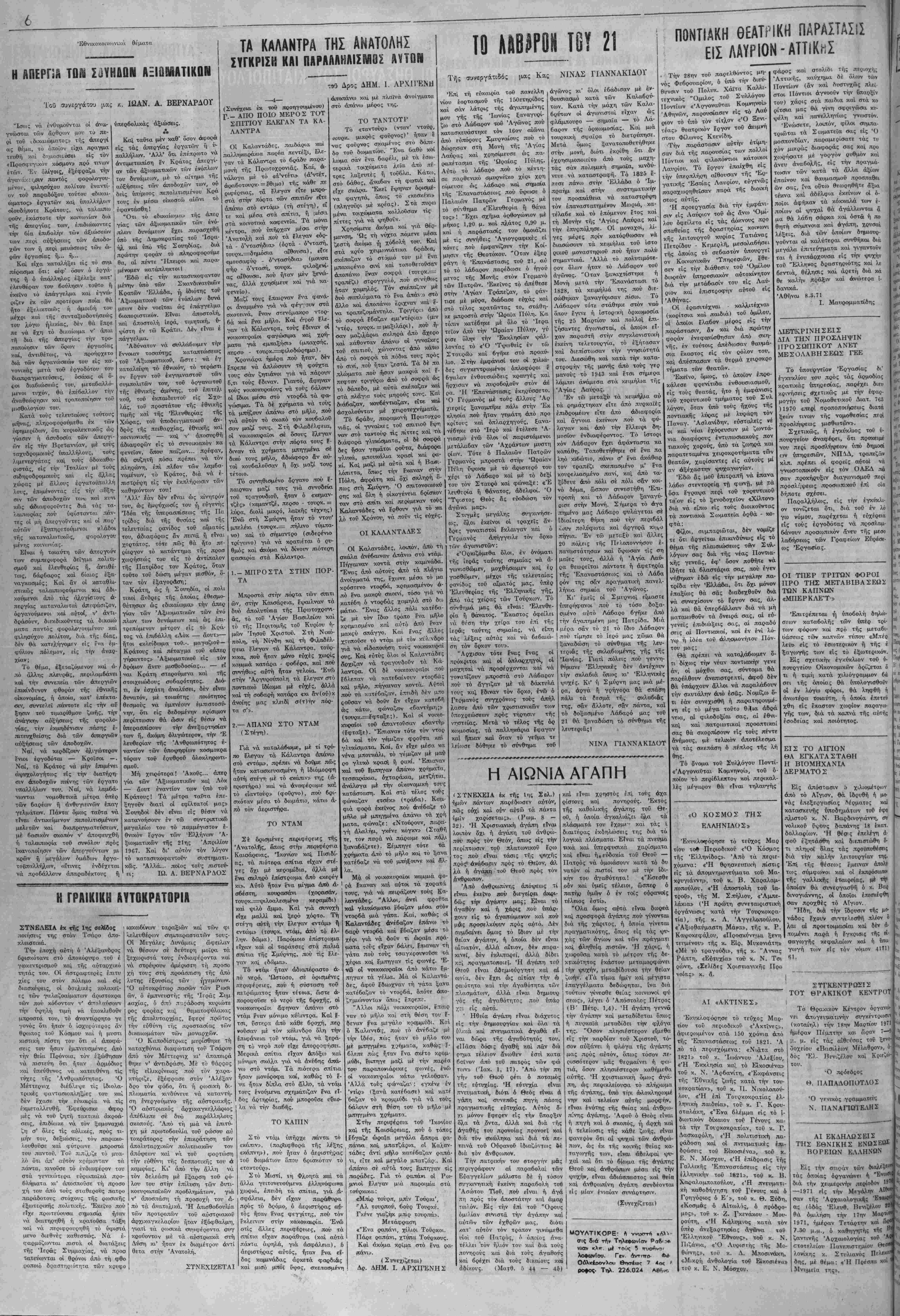Διευθυντάς - Ίδιοκτήτης: ΣΩΚΡΑΤΗΣ ΧΑΡ. ΣΙΝΑΝΙΔΗΣ ΓραΦεΙα: Όδός Νίκης 25 - Αθήναι - Τηλέφ."229.708