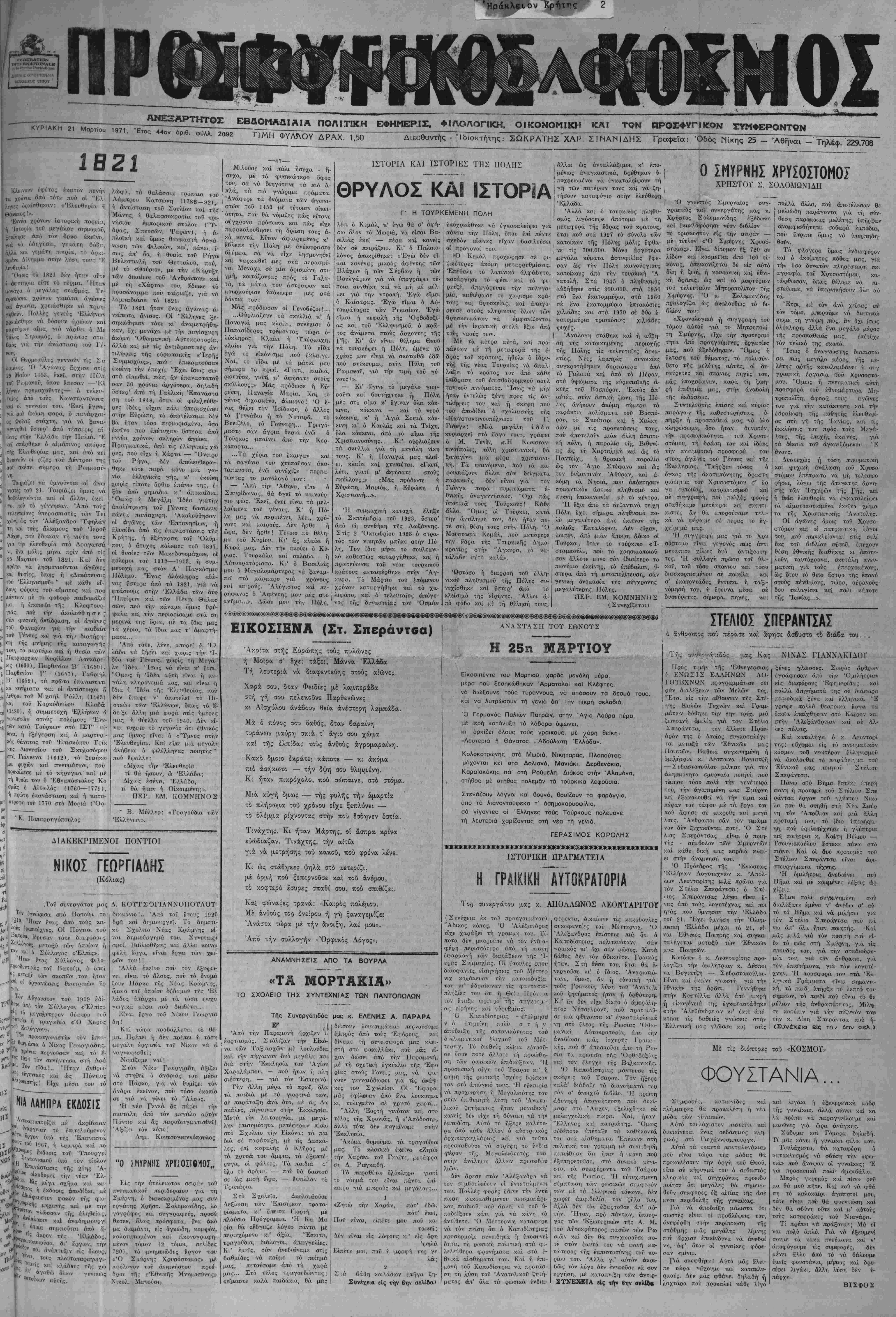 25 Μάρτιον τοϋ 1821. Καί δέν