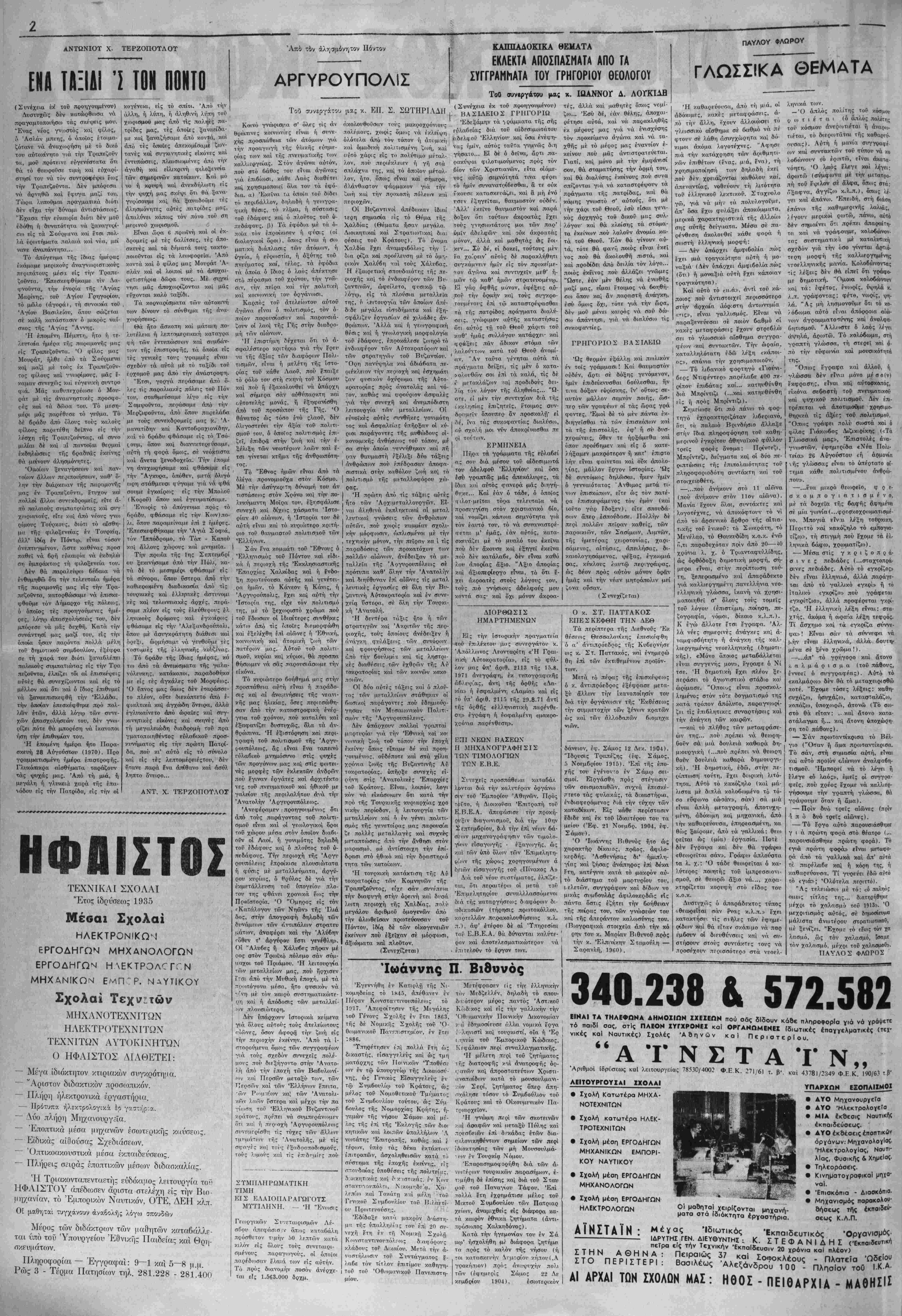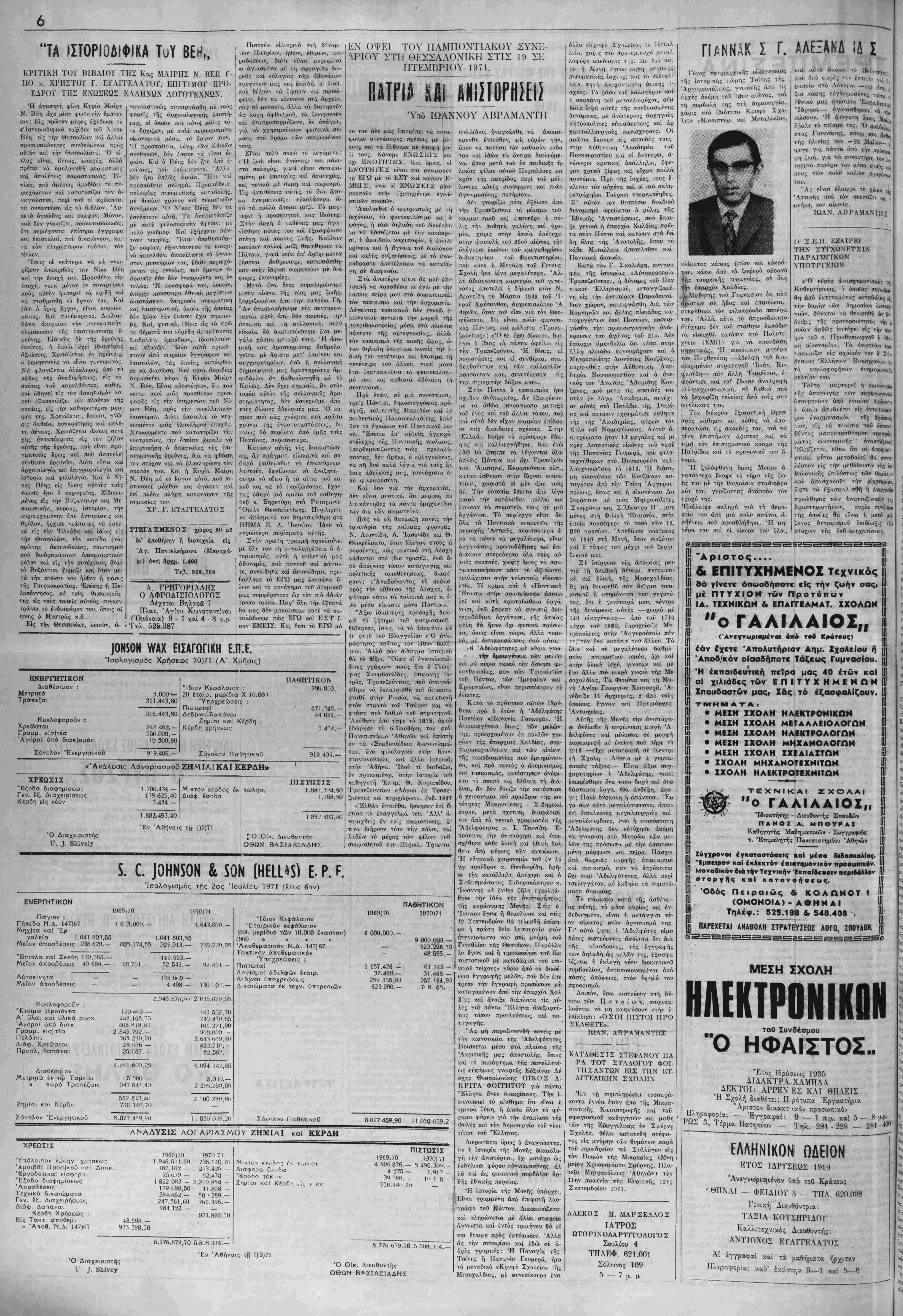 τ<ον, είς τα πλαΐστα τού εχπονη· θέντος μακροποοθέσμον ποογοάμ· ματος οίκονομικής ' άναπτύξκο;. Έλ_τίΐετΓΜ, οΐηυι ότι αί άπβφβσι- στικαί αυται μεταβολαί θά σνντί· λέσοι»ν είς την αεθόδει·σιν τή; 4ο· θολογικής έπιλνσειος των θϊμΛτιιν ποϊ' άπασχολονν την οίκσνομίαν, ό',στε νά έξαστταλ.ισθή ή άναγκ«(α προώθησις τέ5ν άναπτνξιαχών τη; δρίΑστηριοτήτίον, κνρία σΐΎΕ.τΕΐα τής όποία; θά ίίναι ή μετά μει- ϊονος δυναμισμον επιδ/ιοξις των στόχιυν τής έκβιομηχανίσεως. ΚΑΤΑΘΕΣΙΣ ΣΤΕΦΑΝΟΥ ΠΑ ΡΑ ΤΟΤ ΣΤΛΛΟΓΟΤ ΦΟΙ- ΤΗΣΑΝΤΩΝ ΕΙΧ ΤΗΝ ΕΤ- ΛΓΓΕΛΙΚΗΝ ΣΧΟΛΗΝ "Επί τή συμπληρώση τεσσαοά- κοντα έννέα έτών άπύ τής Μικρα- ηατική; Καταστροφής κα'ι τοΰ σφανιασμοΰ καθτιγητών καί μάθη των τής Εύαγγελικής έν Σμύρνη Σχολ.ής, θέλει κατατεθή στέφα- νο; είς μνήμην των θνμάτων παρά τοΰ προεδθίτ'ον τοΰ Σύλλογον είς τόν Βοκιόν τής Μικρασίας (Μνη μείον Χρνσοστόμον Σμύρνης, Πλ.α- τεΐα Μητροπόλεως Αθηνών) την 11 ην πρωϊνην τής Κα«ριακή; 12ης Σεπτεμ6ρίο· 11»71. "Α ρ ι σ τ ο ς.... & ΕΠΙΤΥΧΗΜΕΝΟΖ Τεχνικάς Π θά γΐνετε όπωσδήποτε «Ις την ζωήν οας>