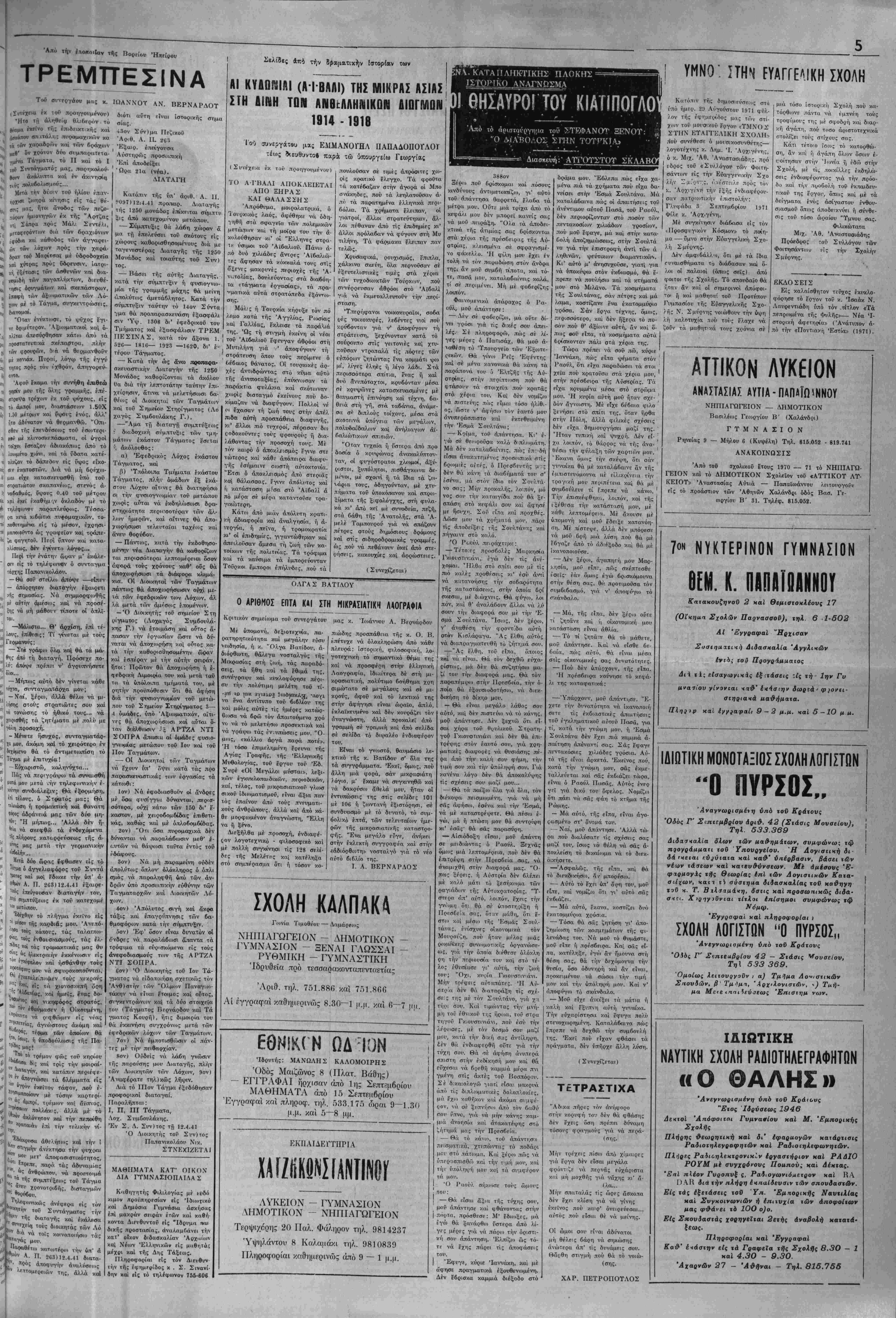 — Εγγραφαί: 9 — 1 π.μ. καί 5 — 8 μ.μ·