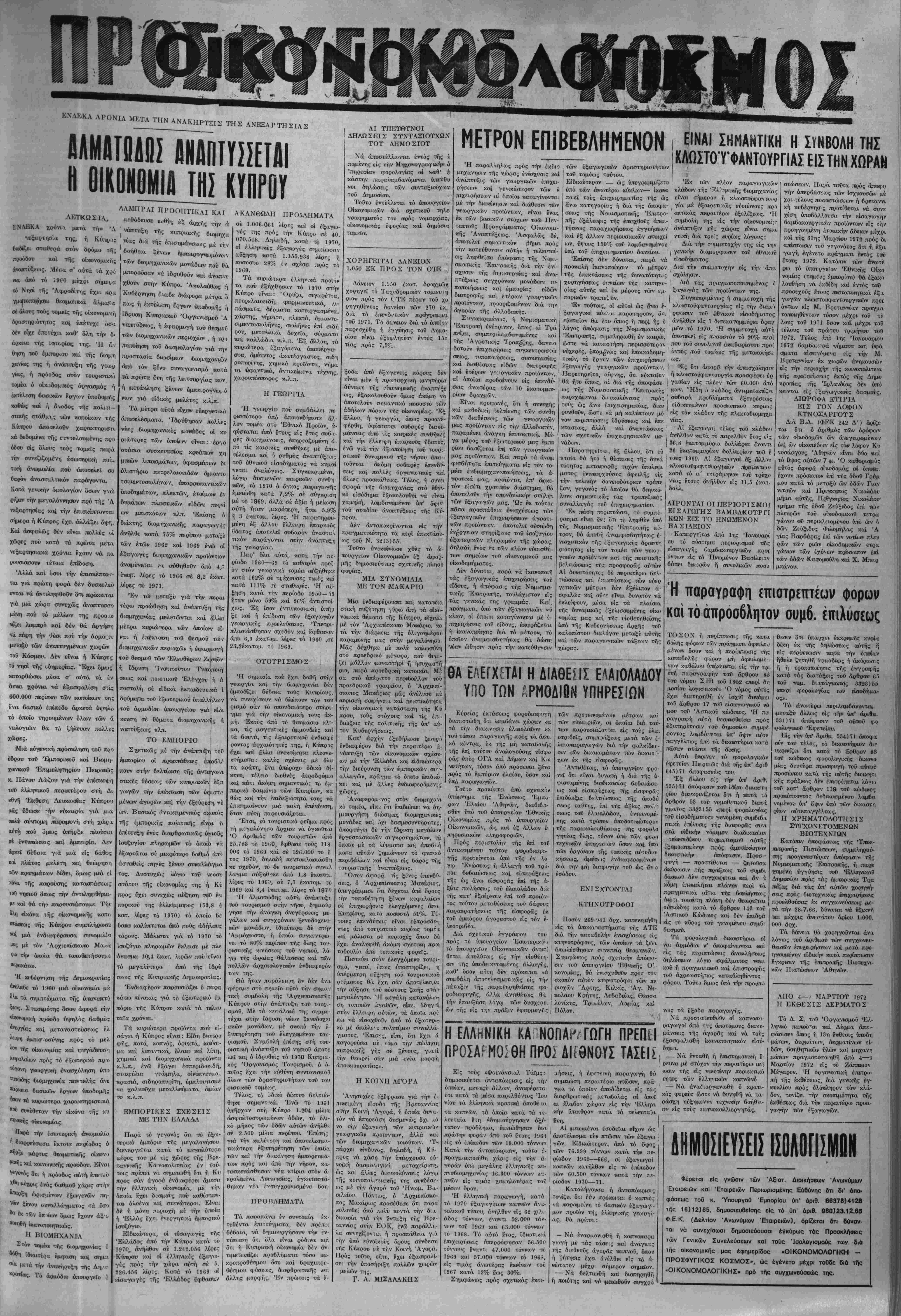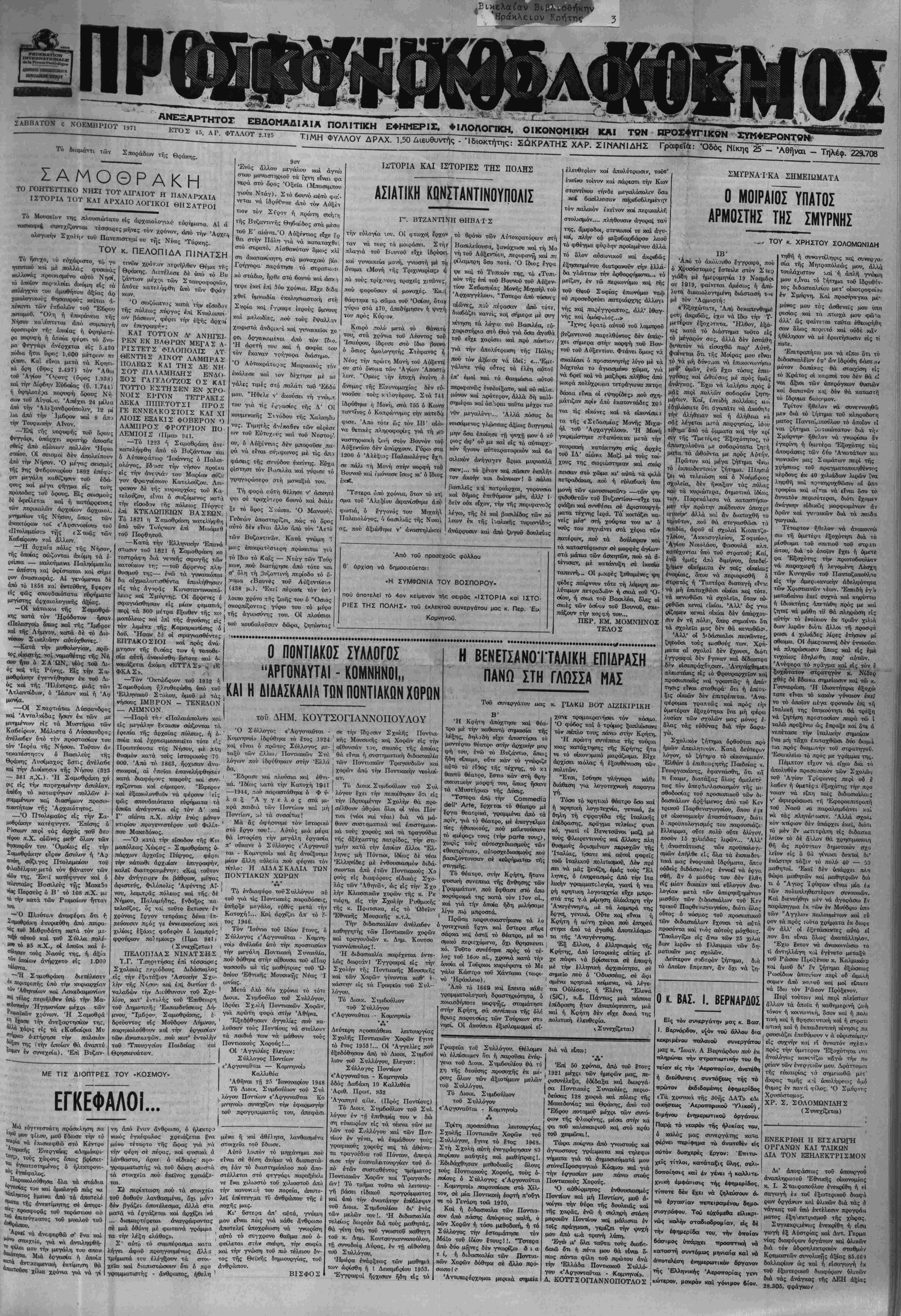 Τ.1ΜΗ ΦΥΛΛΟΥ ΔΡΑΧ. 1,50 ΔιευΘυντής - Ίδιακτήτης: ΣΩΚΡΑΤΗΣ ΧΑΡ. ΣΙΜΑΜΙΔΗΣ Γραφείω: Όδός Νίκης 25 - Αθήναι - Τηλέφ. 229.708