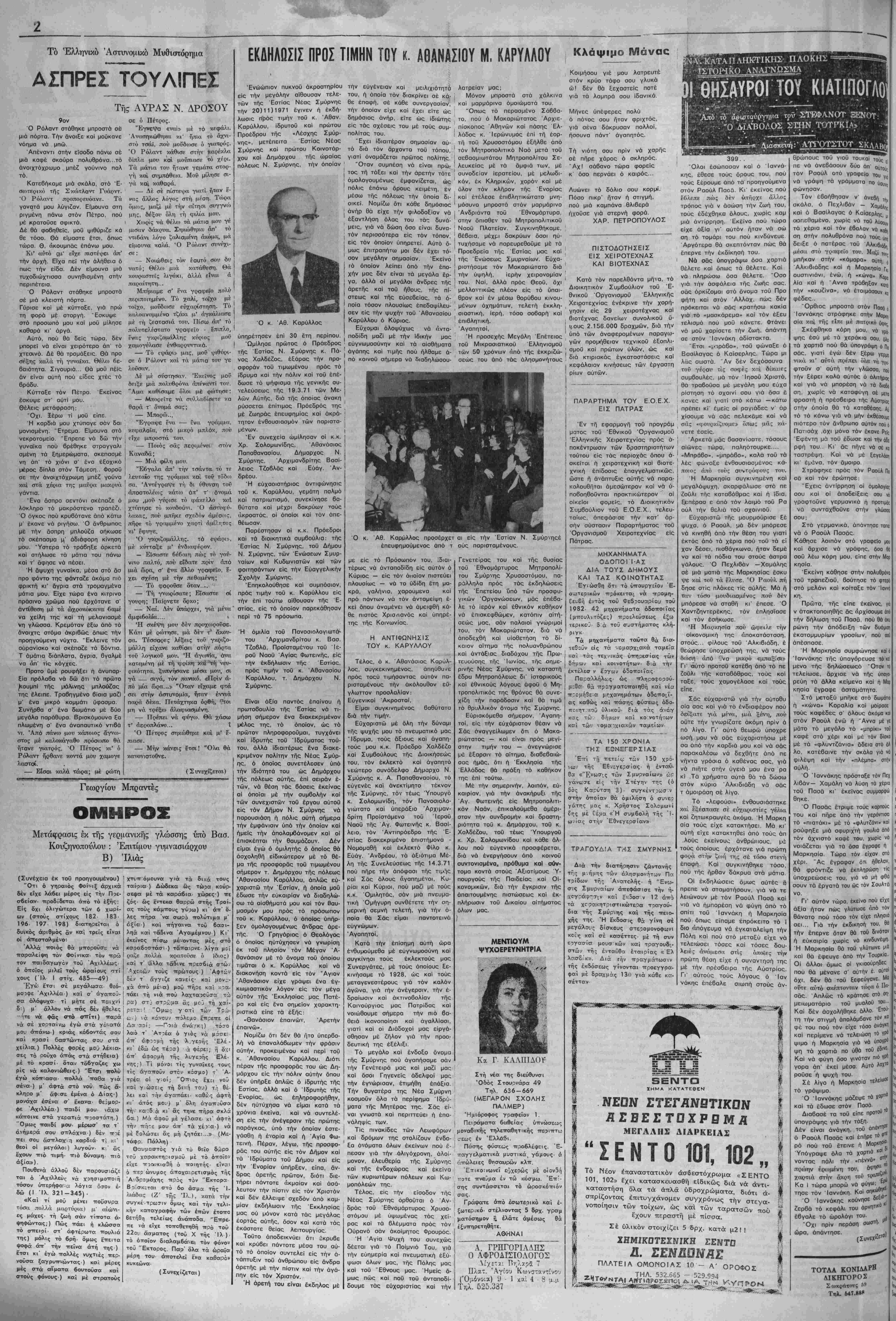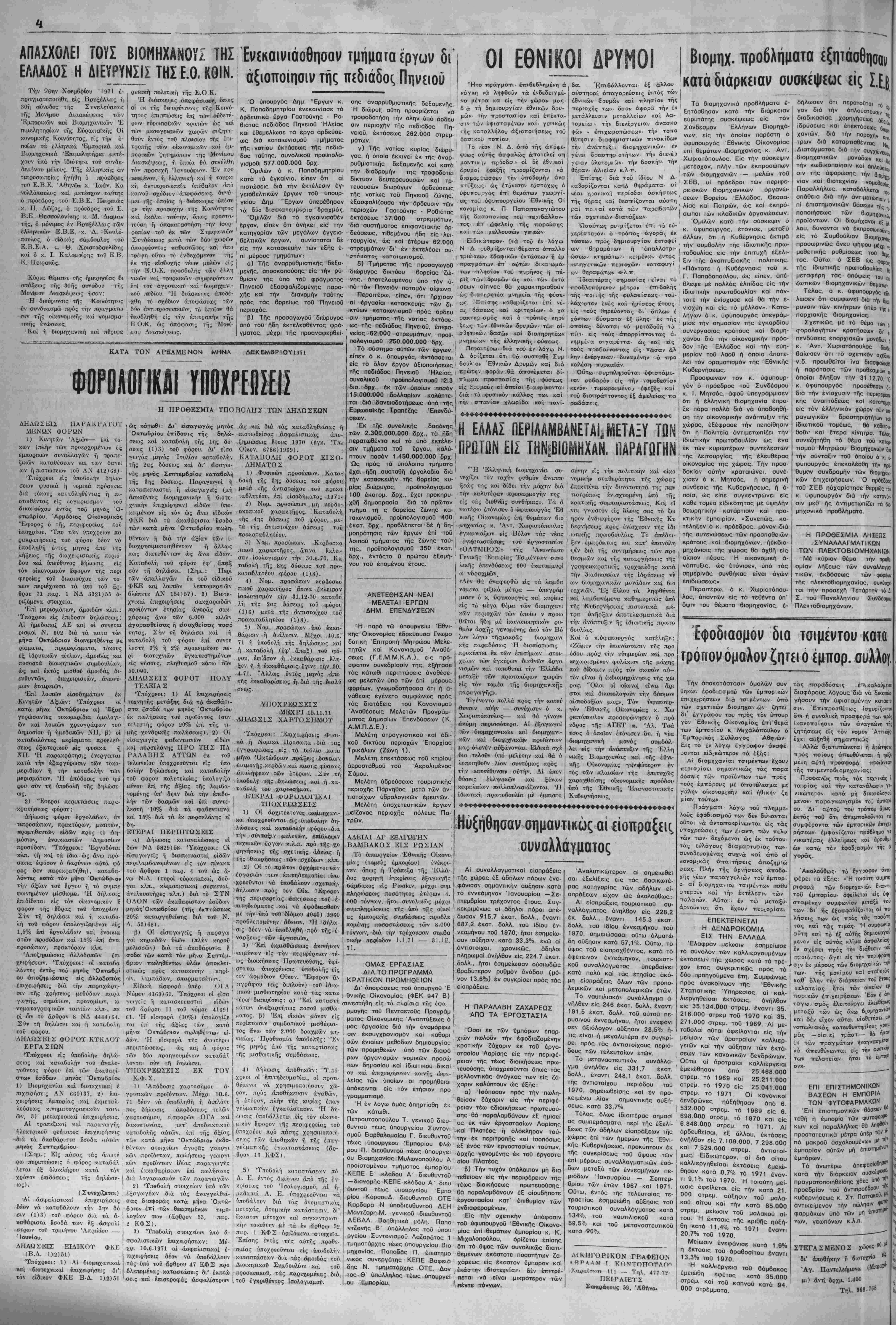 ΦΥΛΛΟΥ ΔΡΑΧ. 1,50 ΔιευΘυντής - Ιδιοκτήτας: ΣΩΚΡΑΤΗΣ ΧΑΡ. ΣΙΝΑΝΙΔΗΣ Γραφεΐα: Όδός Νίκης 25 — Αθήναι — Τηλέφ. -229.708