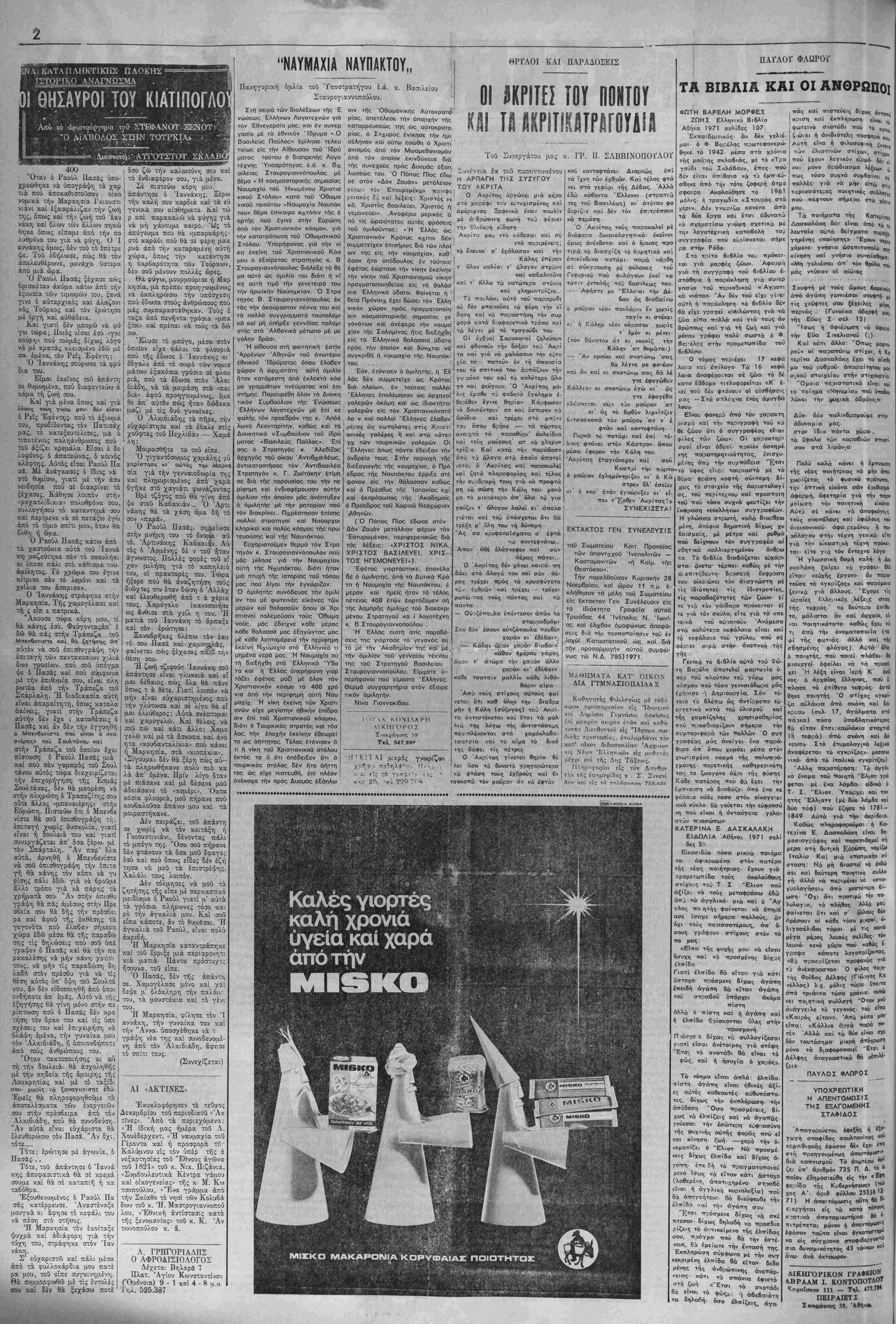 αυτ<=—άρνησης σκόρπισες γιά μέ να κα'ι ττόσους φυλάγεις άκόμα πρόβ.μα στό βάβος τής αγ ι άς σου ψυχής. Ξέρω π^^ χάνοντάς με χάνεις τό πάν. άκόμα κι κείνο, ττοΰ σέ μενά θύμιζε τή ι χή μας μανουλα «κ 1, ΔΩΡΕΑΙ πρός τό Σωματείον Κοιν Πρΐ νοίας των άπανταχοΰ ΊνεποΑ των - Κασταμονιτών «η μησις τής Θεοτόκου». 1) Ή κ. Αίκατερίνη Βασ Βι σιλειάδη καί ό κ Θωμάς Βασυ Βασιλειάδης, μήτηρ και άδελφι τού Αειμνήστου Αρχιμανδρ ΜαΕίμου Βασιλειάδη, προσέφερο είς μνήμην τού πολυκλαυοτο υίοϋ καί άδελφού των, ολοκΑΐ) ρον την βιβλιοθήκην τού όποτε λουμένην έκ 350 περίπου βιβλίω» έπισημονικού, φιλολογικοΰ, θεο» ■! γίας, έθνικοθρησκευτικοθ και Κθε™ νωνικοϋ περιεχομένου 2) Ό κ. Γεώργιος ΠσναγκΛ" δης έΕ Ίνεπόλεως τού Πόντου νυν κάτοικος ΚοΖσνης, έκπροο* πος| τής Α Ε. -ΠΑΠΑΣΤΡΑΤΟ· απέστειλεν είς τό Σωματείον μ« πλουσίαν συλλογήν βιβλίων Κ* νωνικοΰ περιεχομένου δρχ. 500 υπέρ των εύγενών φιλανθρωπικόν σκοπών τοϋ ματείου. 3) Τό Προεδρείον τού ι τείου κατόπιν παραστάοεων τ άπέσπασε την εύγενή μεγάλου 'Εκδοτικού Οϊκου, διαθέσεως μεγάλης βϋλίον διά τόν ιτλοι/τισμον βιθλιοθήκης τού Σωματείον •Επί τή εύκαιρία, άποτί:ινομ είς πάντας τούς έχοντος ^ έστω και παλαιά, εύγενώε ^ καλούμεν, δπως διαθέσουν διά την βιβλιοθήκην τού τείου ημών, επί τή &*αι6Ζ} τι, οϋτω θοηθοϋν την σπου σαν νεολαίαν κα'ι τους τας τό βιβλίον πλουτΐΖοντ<κ γνώσεις των. Τοΰς ευχαριστούμεν θερμ ΤΟ ΔΙΟΙΚΗΤ. «π «ι •Υπεύθννοι συμφωνως 1090)193» ΣΟΚΡ. Κατοοαα Προίστάμ«νος ΓΑΒΡΓΗΛ Κατοικία ΑΜΦΙΑΛΗ