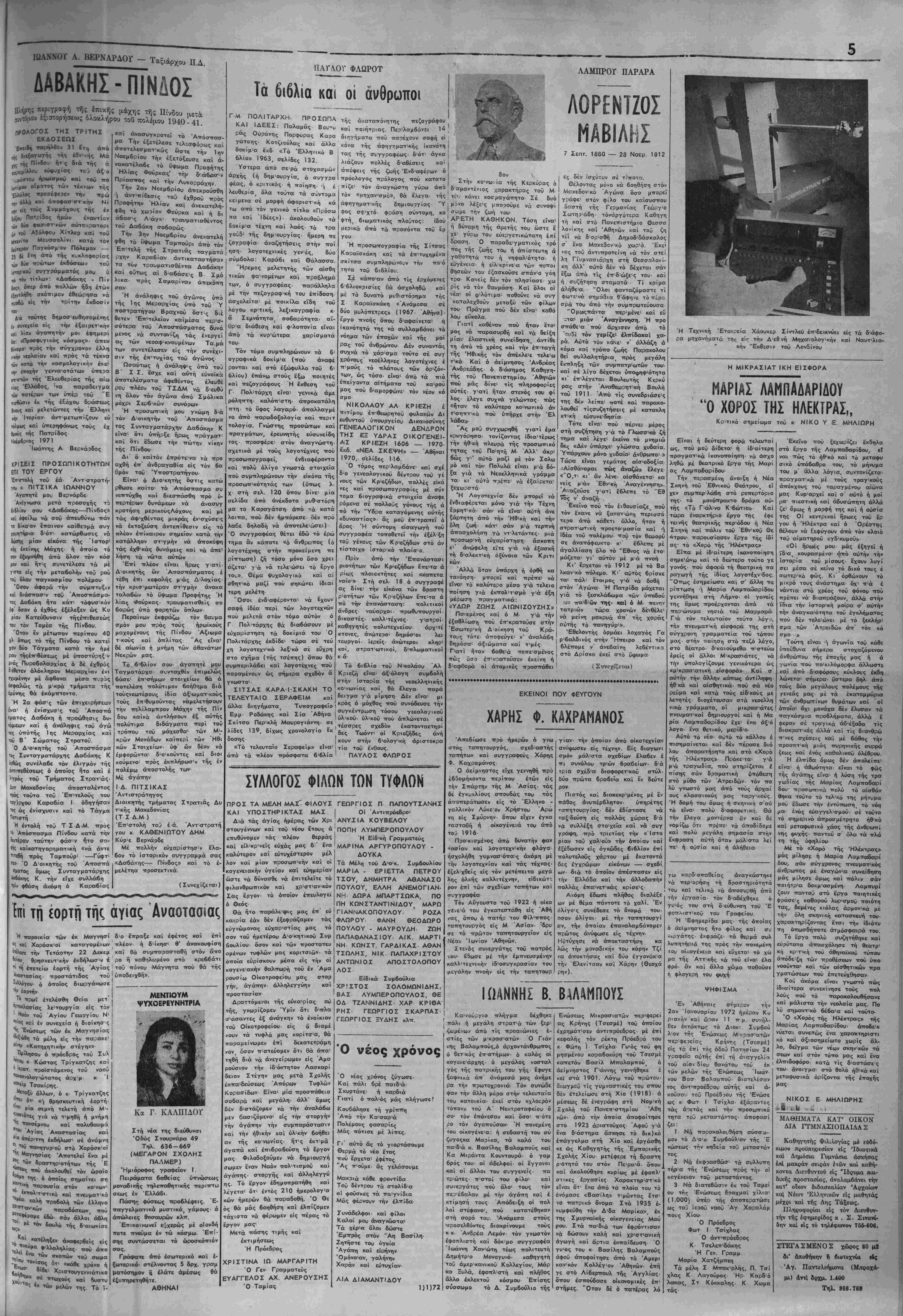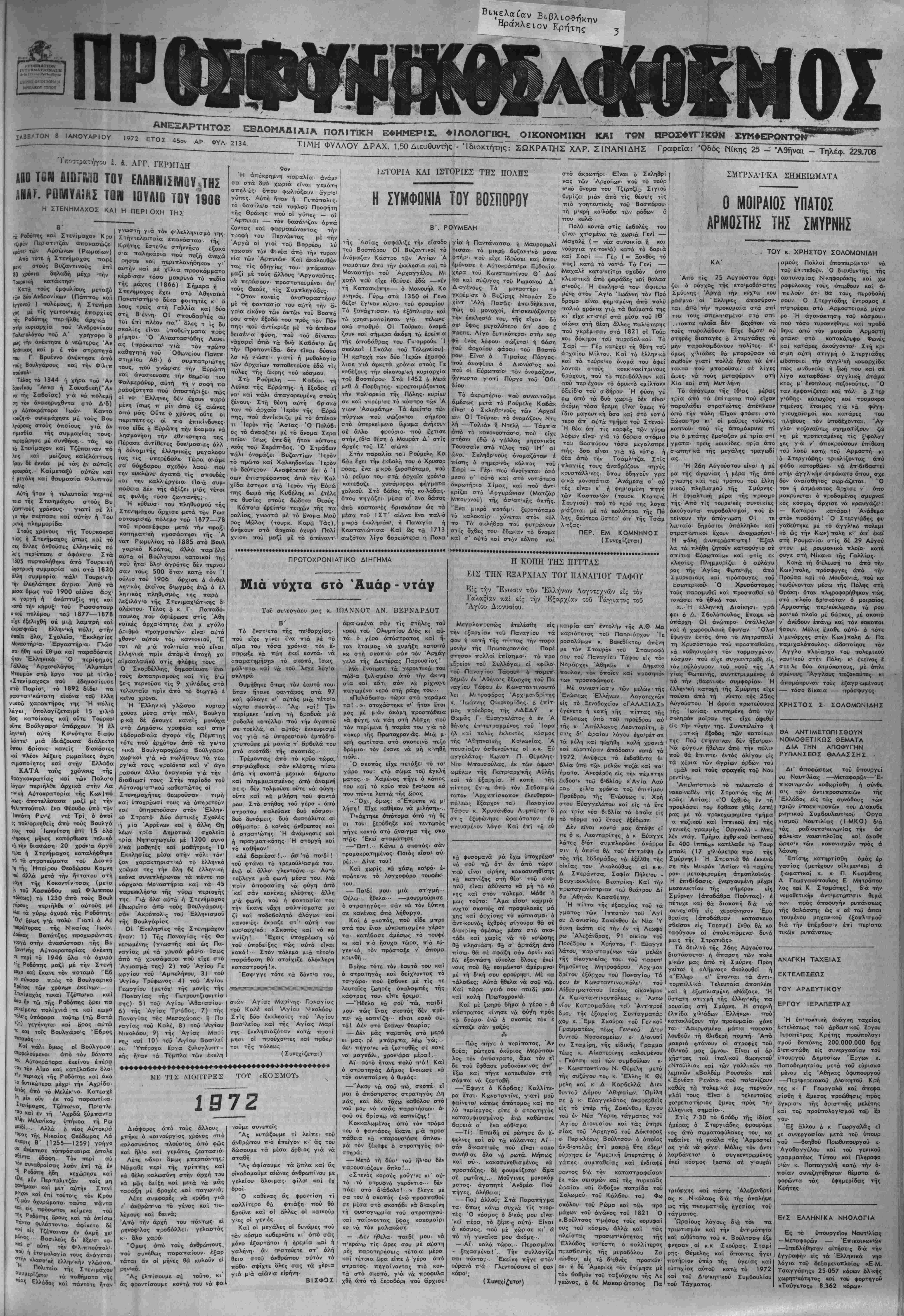 ΦΥΛΛΟΥ ΔΡΑΧ. ΐ,50Διευθυντής - ' 1 διακτήτης; ΣΩΚΡΑΤΗΣ ΧΑΡ. ΣΙΜΑΝΙΔΗΣ Γραφεΐα: Όδός Νίκης 25 - Αθήναι — Τηλέφ. 229,708