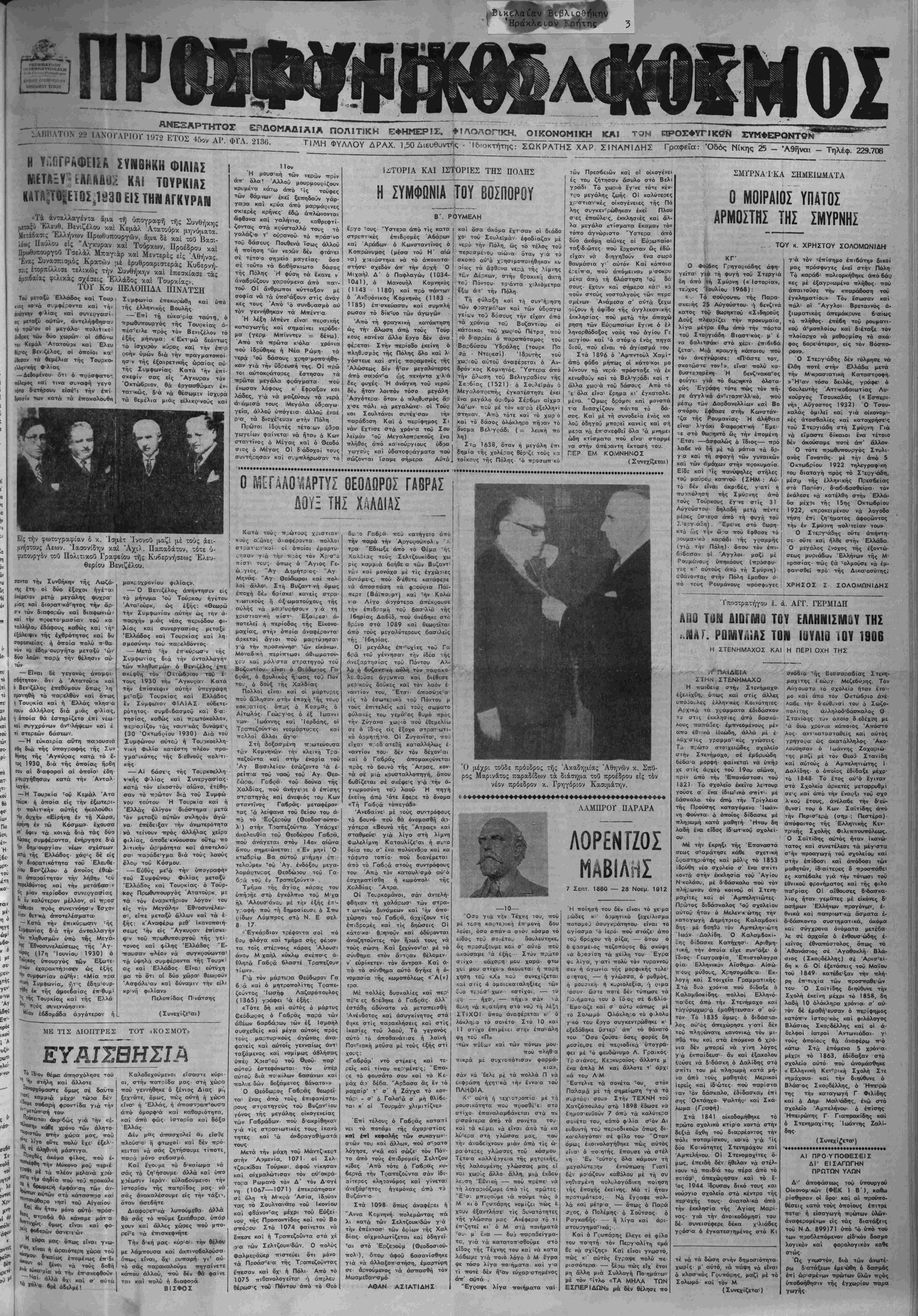 ΤΙΜΗ ΦΥΛΛΟΥ ΔΡΑΧ. 1,50 Διευθυντάς - Ί&.οκτήτης: ΣΩΚΡΑΤΗΣ ΧΑΡ. ΣΙΝΑΝΙΔΗΣ Γρσφεΐα: Όδός Νίκης 25 - Αθήναι — Τηλέφ. 229.708