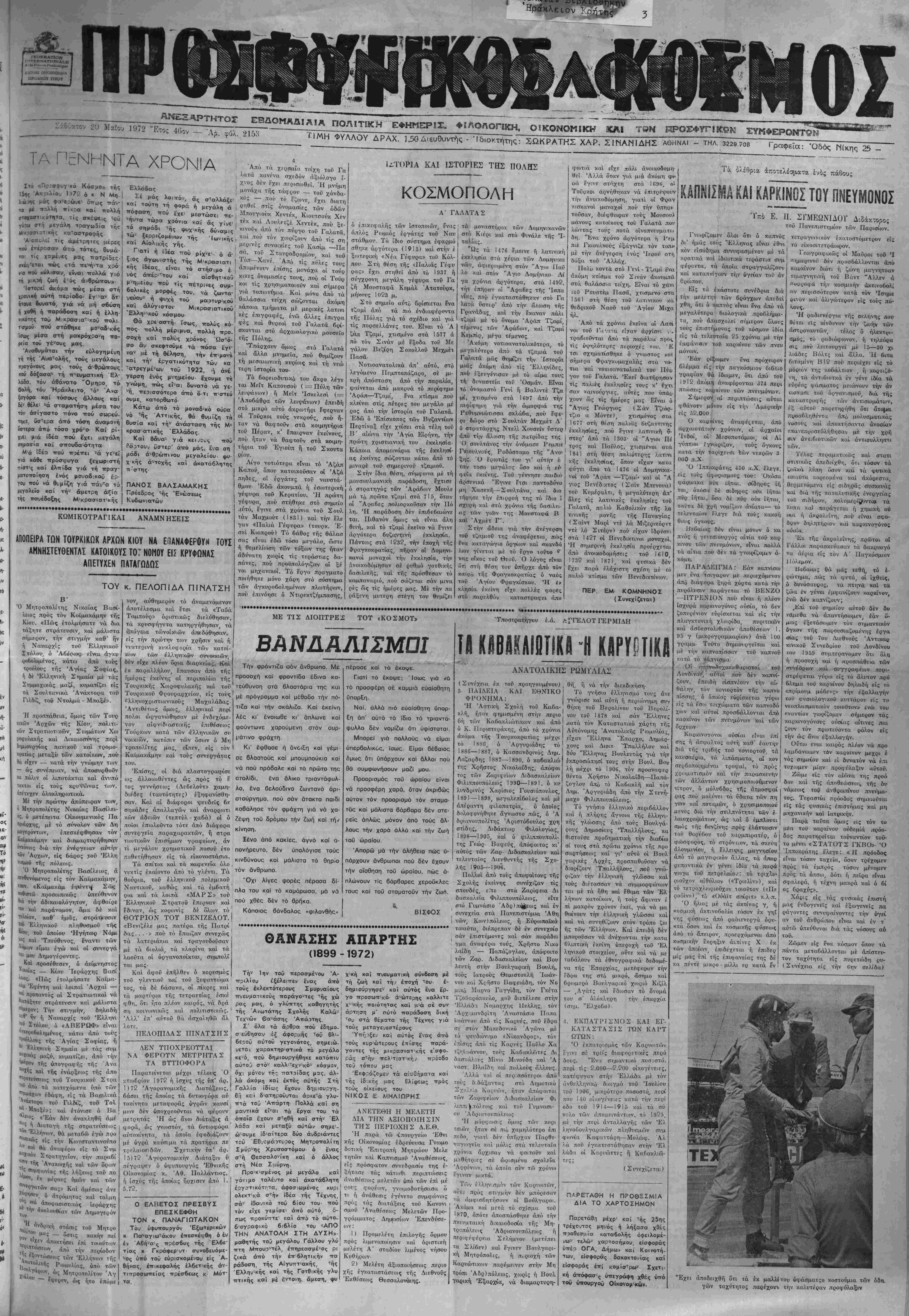 — Αρ. φύλ. 215.'· _______ ΤΙΜΗ ΦΥΛΛϋΥ ΔΡΑΧ. 1,50 Διευθυντάς - Ί 6ιοκτήτης: ΣΩΚΡΑΤΚΣ ΧΑΡ. Σ1 ΝΑΝ ΙΔΗΣ ΑΘΗΝΑΙ - τηλ 3229708 Γραφεΐα: Όδός Νίκης 25 -