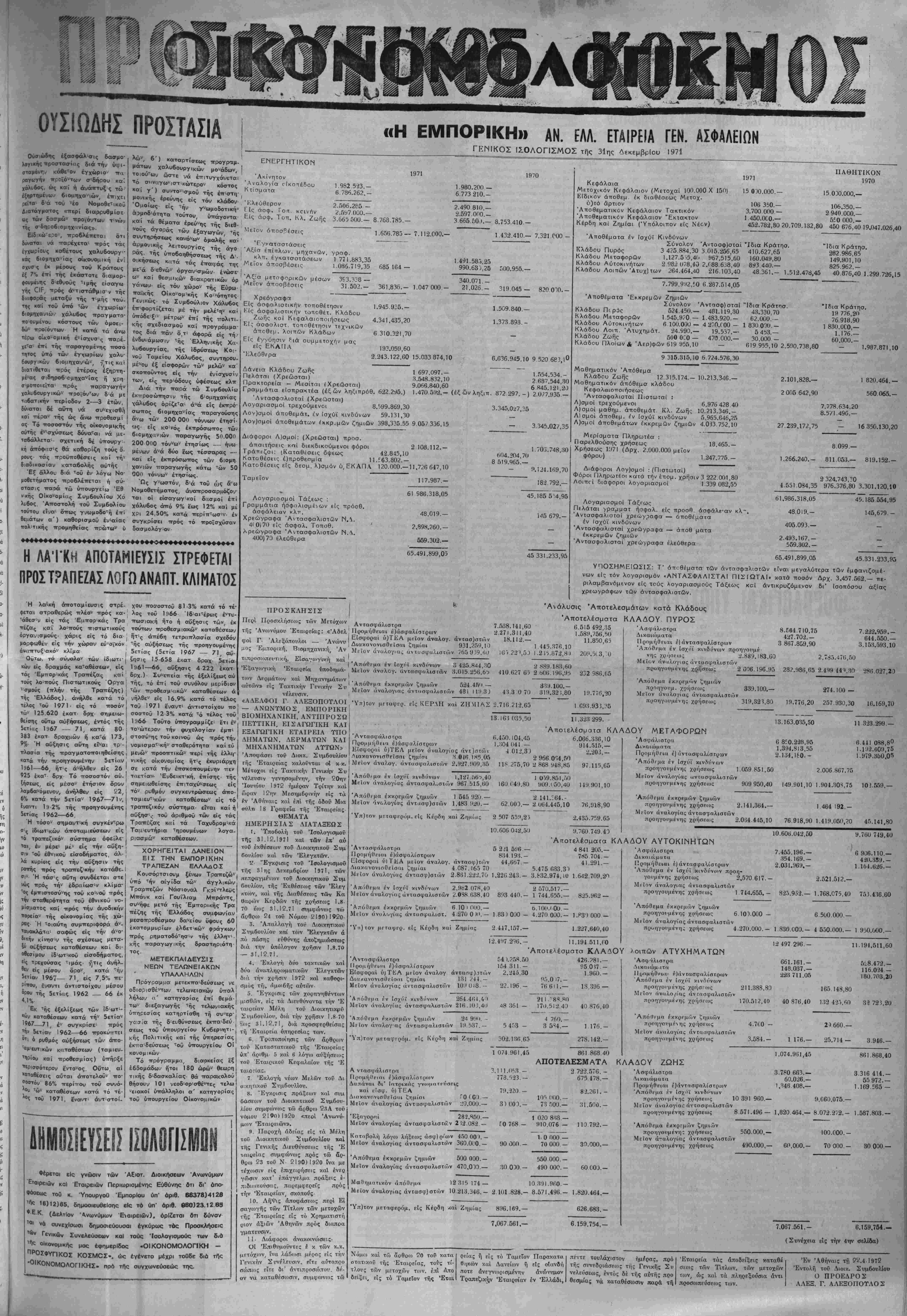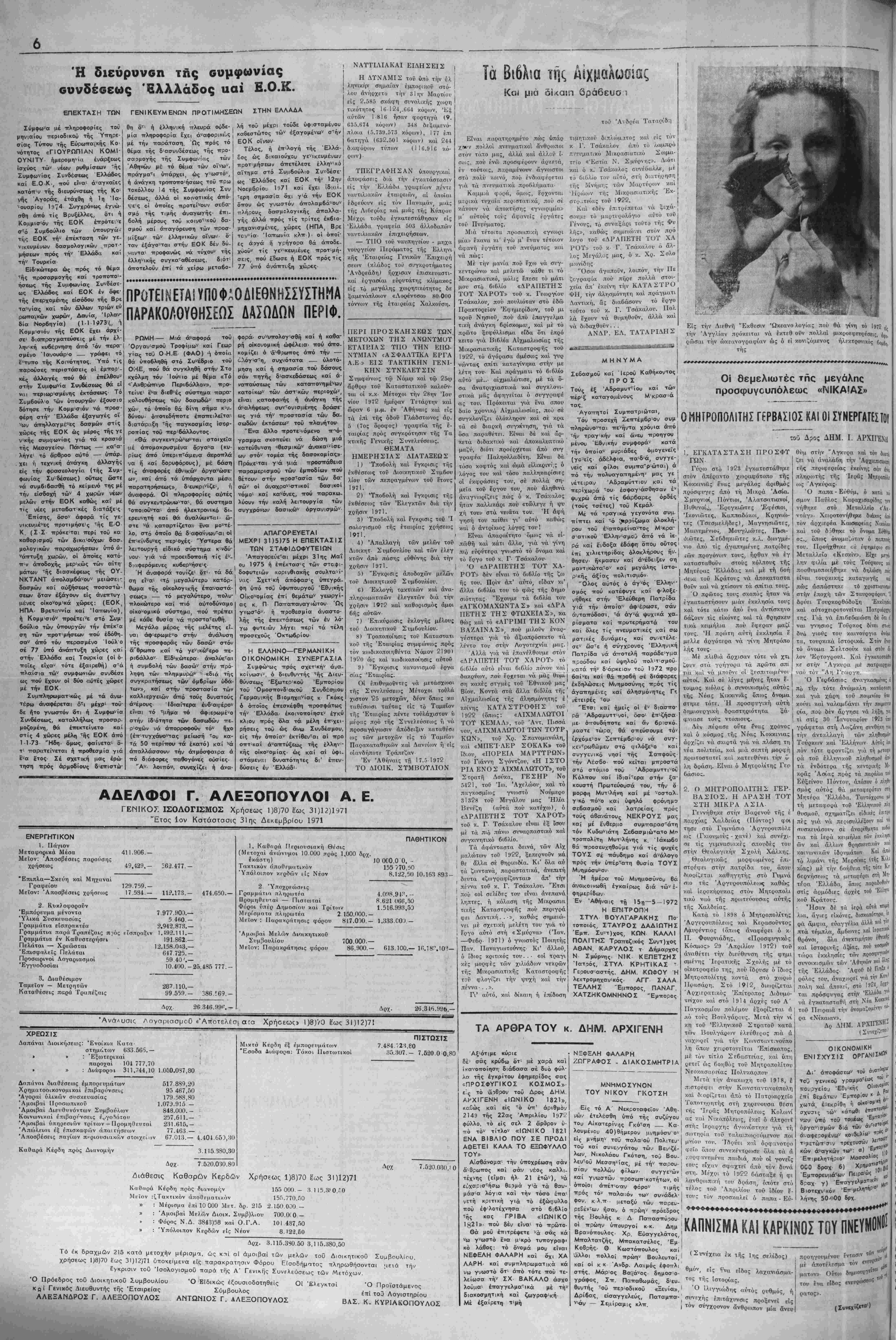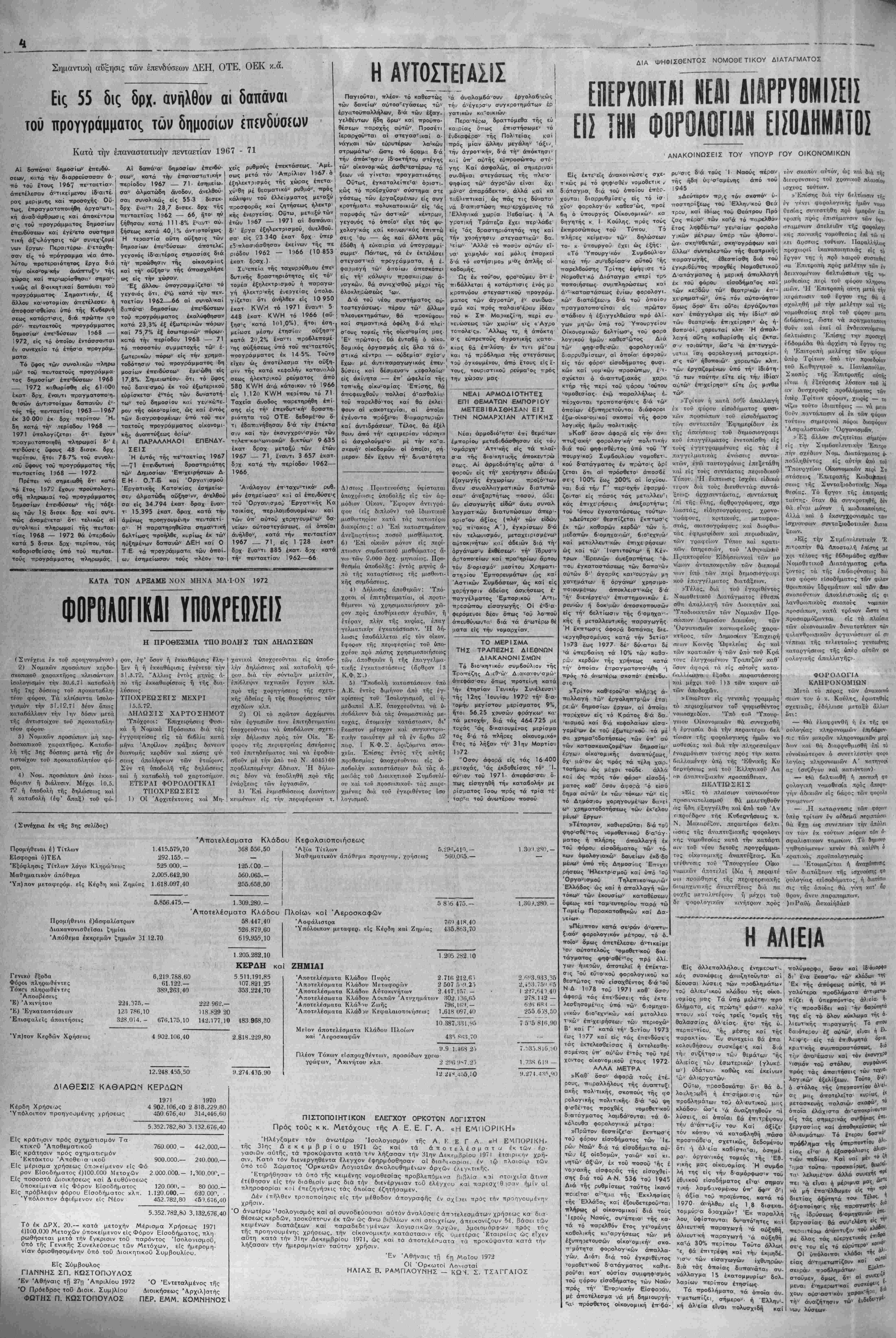 χρήσεως 1)8)70 έως 31)12)71 ύποκε,μενα είς παρακρατησ.ν Φόρου Είοοδήματος πληρωθήσοντα. αετά