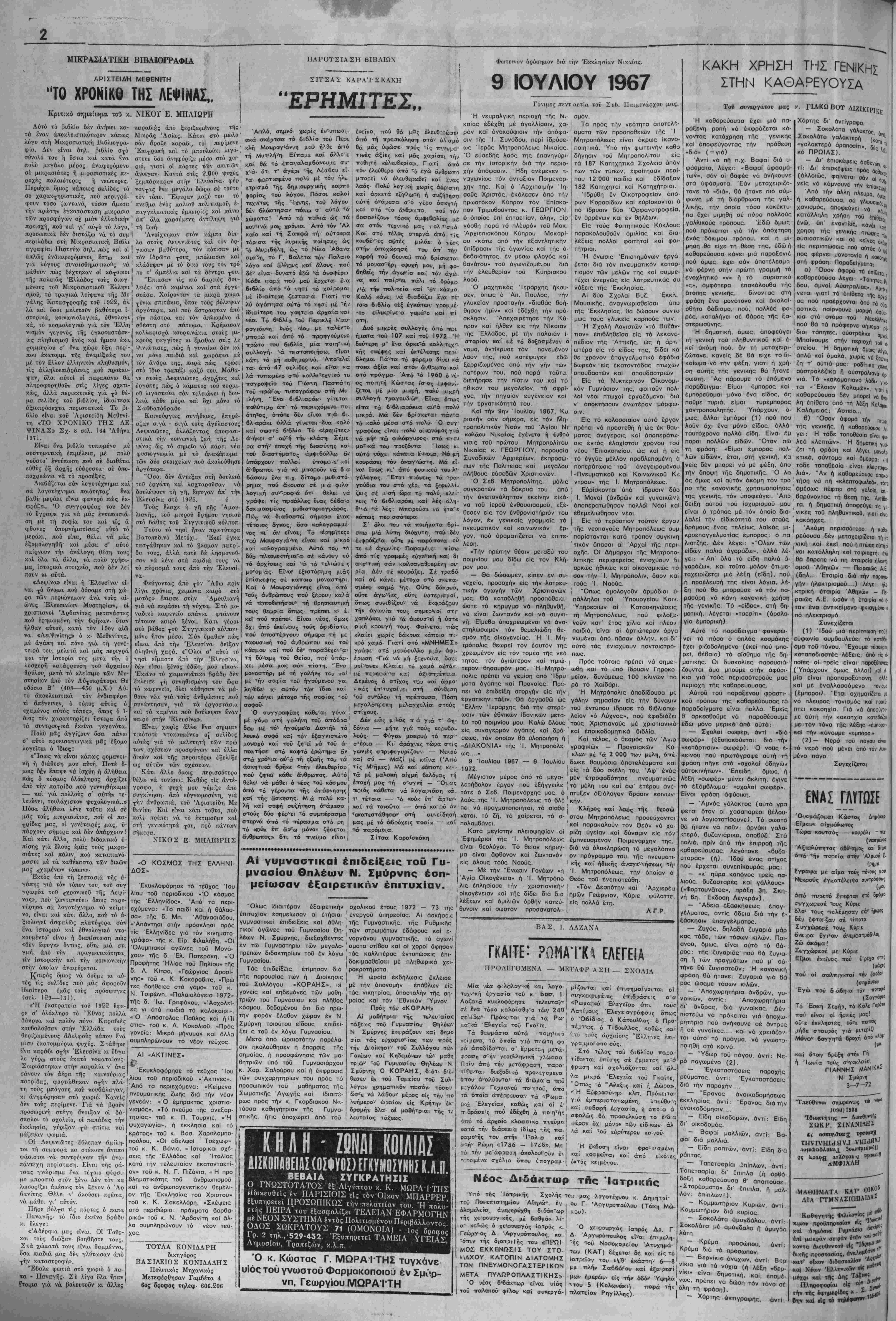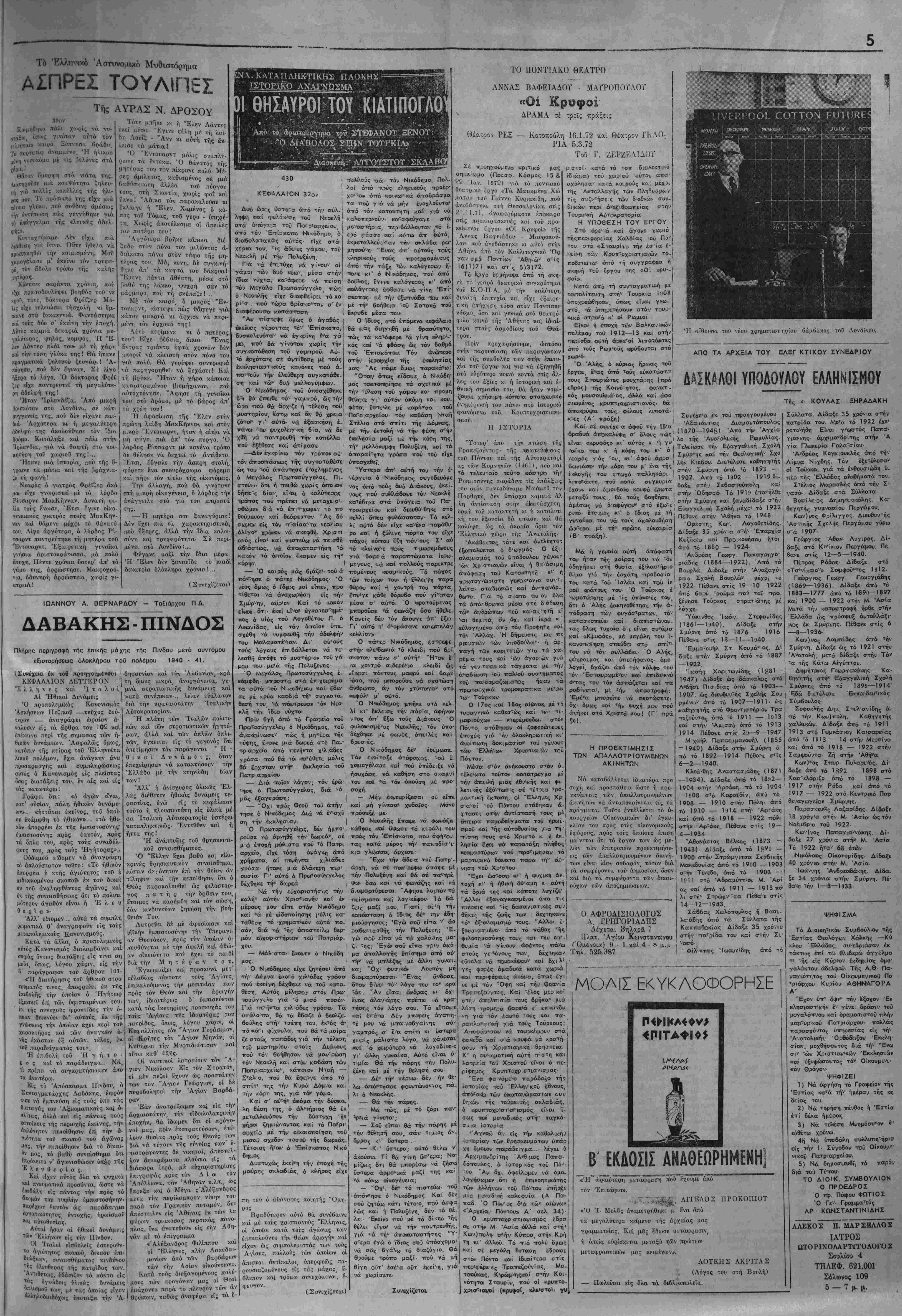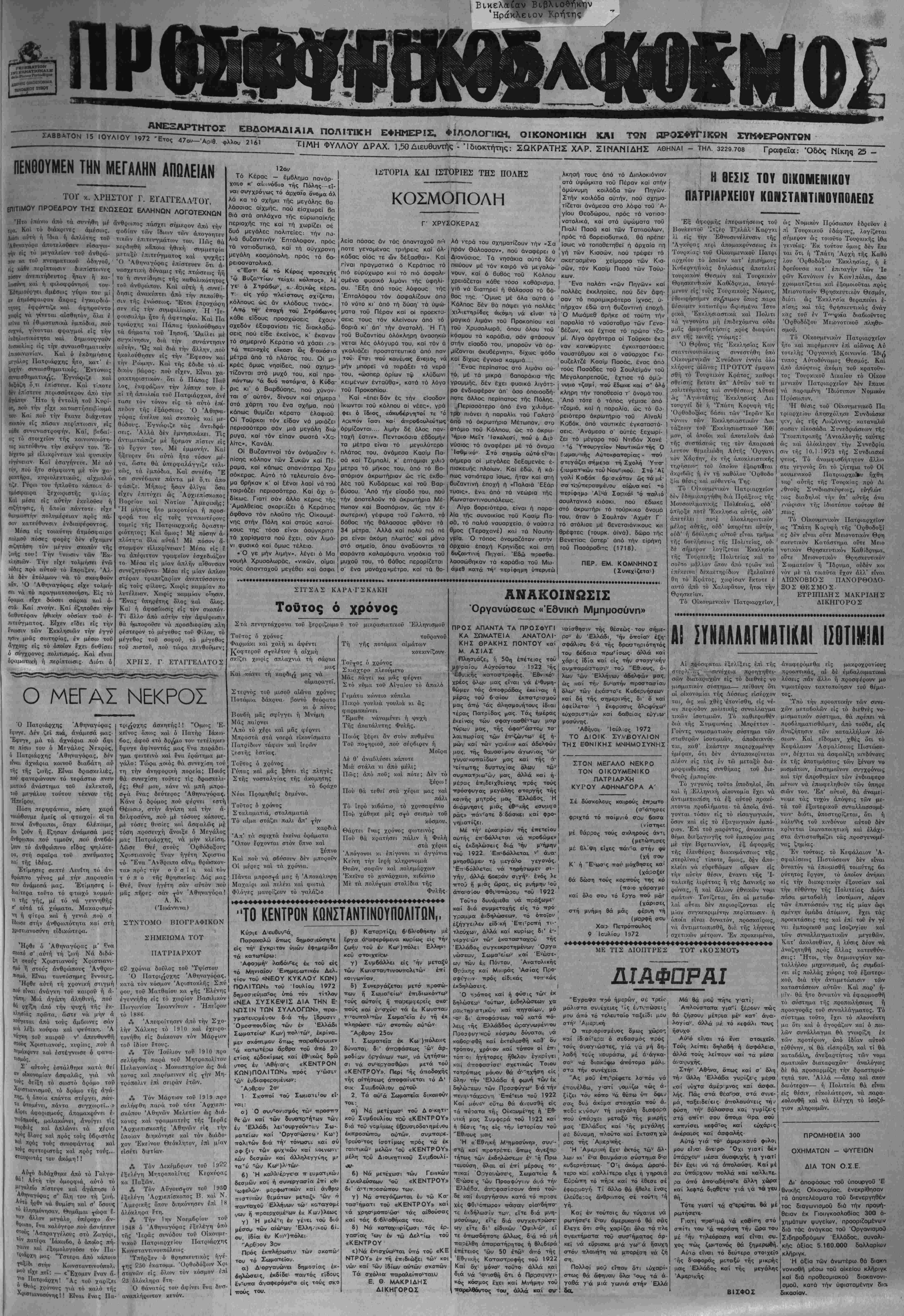 Τ.ΙΜΗ ΦΥΛΛύΥ ΔΡΑΧ. 1,50Διευθυντάς - Ίδιοκτήτης: ΣΩΚΡΑΤΚΣ ΧΑΡ. ΣΙΝΑΝΙΔΗΣ ΑΘΗΝΑΙ - ΤΗΛ. 3229.708 ΓραΦεΐα: Όδός Νίκης 25 -