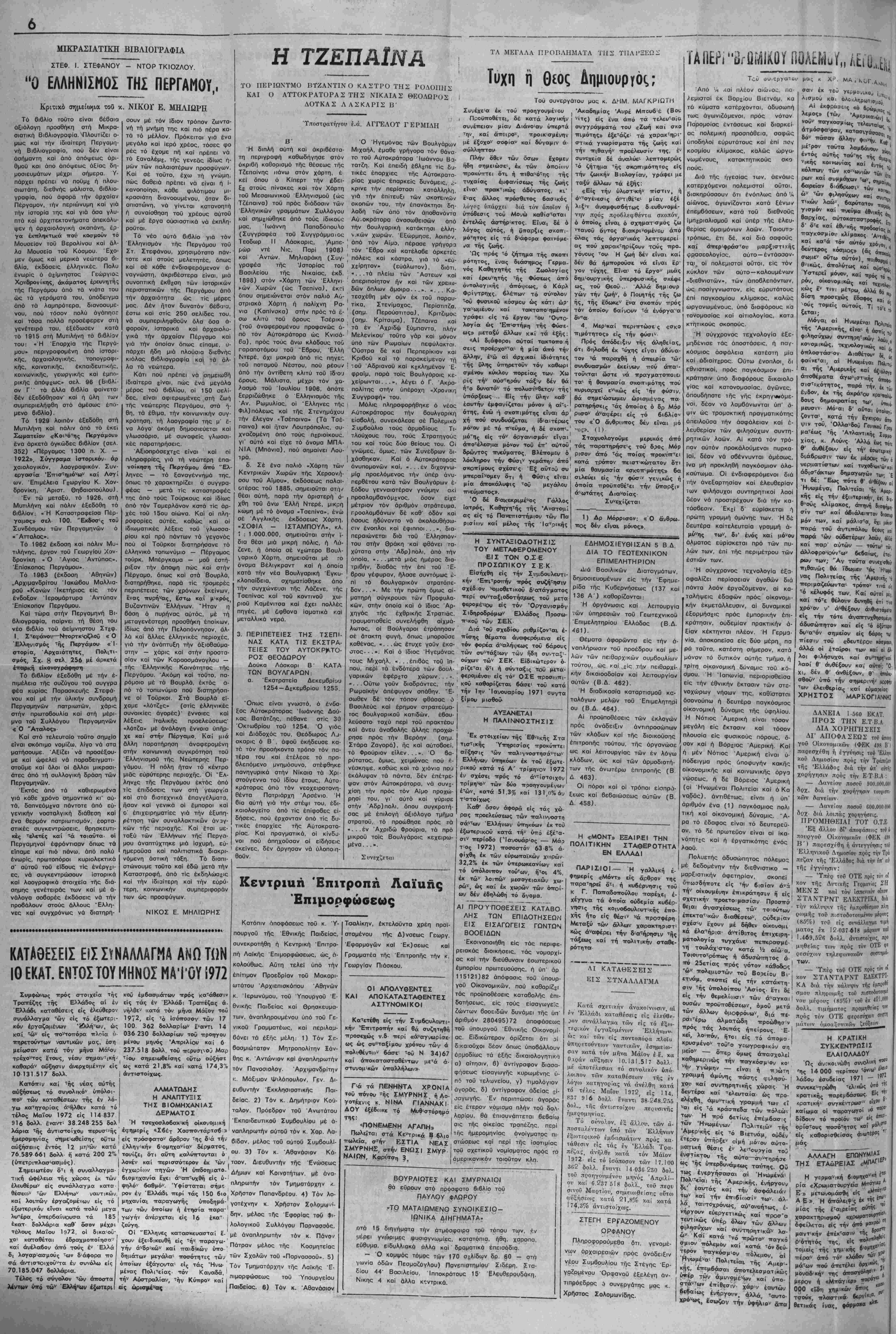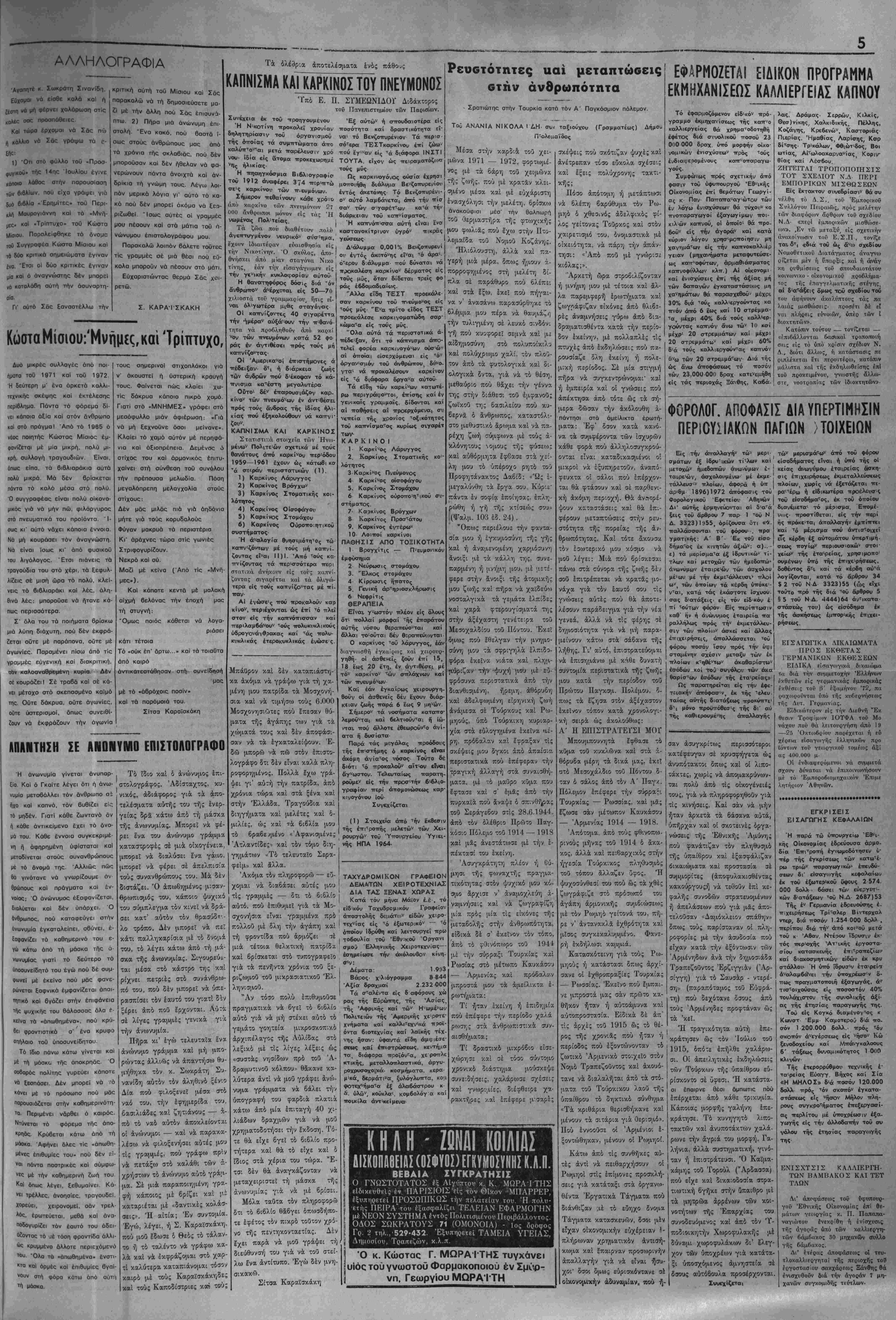χι, €·έν θ' άνβέξονν, θ1 <ικοΧί· σθούν υπό τήν σημερινήν μορ| τι.τν ελευθερίας καί εϋμαχίας ΧΡΗΣΤΟΣ ΜΑΡΚΟΓIΑ^ίΝΗΣ έκατ- δολλάρια καθ' όσον μέχρι ζεύγη. νς ου 9, ο διαού Οί Ελληνες κατασΐκίυασταί ε καταθέται έδραχμο'πο!ησαν | χούν έξειδικενθη είς την τταραγω έλβ άό ύ έ Ελά τέλονς Μαΐου 1972, οί δικα'ού-. Οί "Ελληνες κατασΐκευασταί ε-'μέ άναπληρωτήν τόν κ. Πόνον 3υν εξειδΐ'Κευθή είς την τταρανω-' „ . καί ανέλαβον ό—ό τούς έν Ελλά δι λογαρ'ασμούς Των δ άφορα πό σά άντιστοιχον^α έν συνόλω είς 70.185.047 δολλάρια. Τέλος τό σύνολον τών άποστα λέντβν υπό τών ""' ΓΛ'Γ'-Τ"1 "'' "β -""""""",Πάτραν μέλος τής Κοσμητείας γήν άνδρικων και παιδ'χων υττο δημάτων μεγάιλαΐ ποσότητες των τών Σχολών τού «Παρνασσοϋ». 5) οποίων έξάγοντα' ΐίς τάς Ήνω- Τόν Τμηματάρχην τής Λαϊκής Έ- μένας Πολιτ«ίας. τόν Καναδα, . ,„ *, . , ,, , „. , πιμορφωοεως του Υπουργειου την Αυστραλιαν, τηγ Κυττρον καί Ι είς ώρισ|ΐένας I Παιδείας. β) Τόν κ. Άθανάσιον ά 8 β,λιο πωλεϊα, ο-τήν Ε.ΣΤΙΑ ΝΕΑΣ , οτώσεως καί περί τής ίσοτιμίας ΣΜΥΡΝΗΣ, στην ΕΝΩΣΙ ΣΜγρι'τοΰ σχετικοϋ νομίσματος πρός γο ^ν Α ■ έιεηΐ 1/ ._ .^-.ο^.._ «% ~ Ι ΝΑίΩΝ Ι αμερικανικόν τοιούτον κλπ. ΒΟΥΡΛιΟΤΕΣ ΚΑΙ ΣΜΥΡΝΑΙΟ' §ά εύρουν οτό πρόσφατο βιβλίο τρϋ «Τ© ΜΑΤΑΙΩΜΕΝΟ ΣΥΝΟΙΚΕΣΙ^- ΙΩΝΙΚΑ ΔΙΝΓΗΜΑΤΑ» οτό 15 διηγήμρτο τήν άτμόσφαιρρ τοϋ τόπου τι^ν, ήν μέρει γνώριμες φυσιογνωμίες, κατατρπια, ήθη, χαροπα, εϋθυμρ, ειδυλλιρκή αλλα καί' δραματικά έπεισόδια' — Ό κομψός τόμος των 170 σ:λίδων δρ. §0 - στπ νωνία όδών Πεσμαζογλου) Πθνεπιστημίου· Σιδέρη, Στα¬ δίου 44· Βοσιλείου, Ιπποκράτους 15' Έλευθερρυδάκη, Νίκης 4 κσί αλλα κεντρικό. ώς υμ των είς ποντοπόρα ? ύπηρετοΰντων ναυτιχΛν^ έσημειω- σαν κατά τόν ιχήνα Μάϊον έ ε. χιΐ Ο ιοάν αύξησιν Ι 0.13 1.5 Ι 7 δολλ· μέ άποτέλεσαα τό συνολικόν υπό λοιπον των καταθέσεον τής έν λόγιο κατηγορίας νά ανέλθη κατά τό τέλος Μαίου 1972, είς 114. 8Γ.7 916 δολλ έναντι 38 248.25ο δολ., τή; άντιστοίχου περυσιντίς ήμερομηνιοκ:. Τύ σύνολον, έζ άλλον, των η- ποστ.-ιλέντο)ν υπό των Έλλήνων ρξιοτερικρ-ΰ ΐμ&ασιιάτο'ν πρός κα· τάθεσιν είς τάς εν Ελλάδι Τοα- πέΐΐας, άνήλθε κατά τόν Μάϊον 1972 είς τό ίσόποσον τών 17.100 3«2 δολλ. εν<χντι Ι4·0ο6 230 δολ. τοΰ πηοηγουμένου μηνός Άποιλί— ου καί Ο 237 51 8 δολλ., τοΰ πεου σινοΰ Μαρτίου, σημειοιβείσης οΰτο) αύξήσετος ν.ατά 21,8% καί κατά 1 74,3% άντιστοι'χως. ΣΤΕΓΗ ΕΡΙ-ΑΖΟΜΕΝΟΥ ΟΡΦΑί^ΟΥ Πληροφορούμεθα ότι, γενομέ¬ νων αρχαιρεσιών πρός όνάδειξιν νέου Συμβρυλίου τής Στέγης Έρ- γαΣρμένου Όρφανοϋ έΕελέγη άν- τιπρόεδρος ο συνεργάτης μας Χρήοτος Σολομωνίδης. την οίκονμένην επικράτησιν η είς σχετικήν ί ΔΑΝΕΙΑ 1-560 ΒΚΑΤ ΠΡΟΣ ΤΗΝ Ε.ΤΒ.Α ΔΙΑ ΧΟΡΗΓΗΣΕΙΣ ΔΓ ΑΠΟΦΑΣΕΩΣ τού ν,τοΐ{ γοΰ Οικονομικήν (ΦΕΚ 498 Β Ι παρεσχέθη ή εγγύησις τοθ '£λλ*ρι κου Δηαοσίου πρός την ί τή; Έλλάδο; διά τήν ύ.τ' χορήγησιν πρός την Ε Τ Β.Α : — Δ«νε!ου ποσοΰ 900.000.000 δ