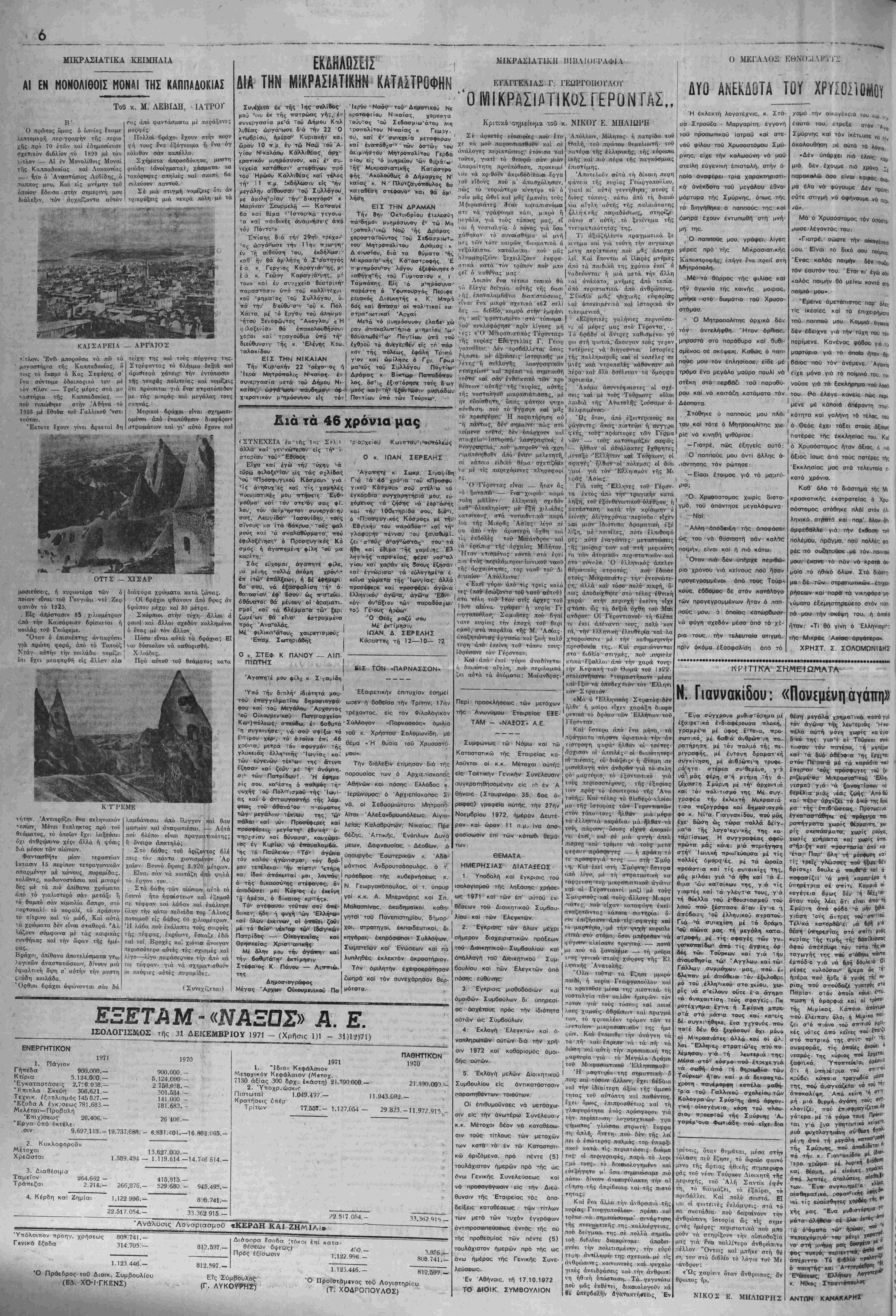 γικές άντιδράσεις καί τήν άνθρ<.οπ! νη ήθική ΰαόβταση. Τά γεγονότα ποΰ μδς έκθέτει, δικαιολογοϋν κά βϊ ύπερβολήν ΛγανακτήΛως, "Εν τούτοις, Οταν θυμαται, μέσα στήν κόλαση πό») εζηηε, τό ώραΐο αραινό μενο τής άρτιας ήθικής συμπεριφο ράς τοΰ νίου Τούρκβυ Διοικητή τής ,ιεοιοχής, τού Άλή Σαντίκ ίφέν τη, τό θατ'μάζει, τό εξαίρει, τό .ιροήάλλει. Καί πολΰ στοστά. ΕΙ ναι οί φίοτεινές έκλάμψεις. στά τό σα σκοτάβια. ποΰ βαραίνοΐΛ' τττν ανθρωπίνη ίστορία ως τίς σημϊ ρινές ήμέρες- περιστατικά πού μπο ροΰν νά στηρίξουν τήν αίσιοδοΐία μας γιά ?να καλλίτερο άνθρο')πιν<» ;ιέλλον "Οντοις καί μπήκε στή θε στ, τού στό 6ι6λίο τό λόγιο τοΰ Με • ανδρου: «Ώς χαρίειν ΰταν δνθρωπος, άν θριοπος ή». ΝΙΚ0 2 Ε. ΜΗΛΙΟΡΗΣ γάμο τους γοητπ/τικό κειμ£ ' ης, .^ Γιαν*ακιο- ται γ'ά μιά ψυχολσγημένη μένη άττό τη τής ττό την κ. ιεοο χρώμα μέ· λυρ'Κ1 καί θέρμη, μέ είκόι«ς άττό λετττίς τ«ν "Ενα αίαβημαΐικό, ρομαν^ική^ Με'» τίς εύαί'σθητες Ενα μι σέ όλα χης ι μάτο τά όνόματα τών ττε^ιχχόμΐΛΌ τού νο στή μνηνη μβς φός -πνκνό, α'ΐτΊριττο1 ι ο ό ττοιητής καί τής»" γ£- βΓΤΓΟ ί 'Ο μι ΕΛσε«ς, ή κ. Νίχος Στασινσττουλος ΑΜΤίΊΝ ΚΑΝΑΚΑΡΗΣ