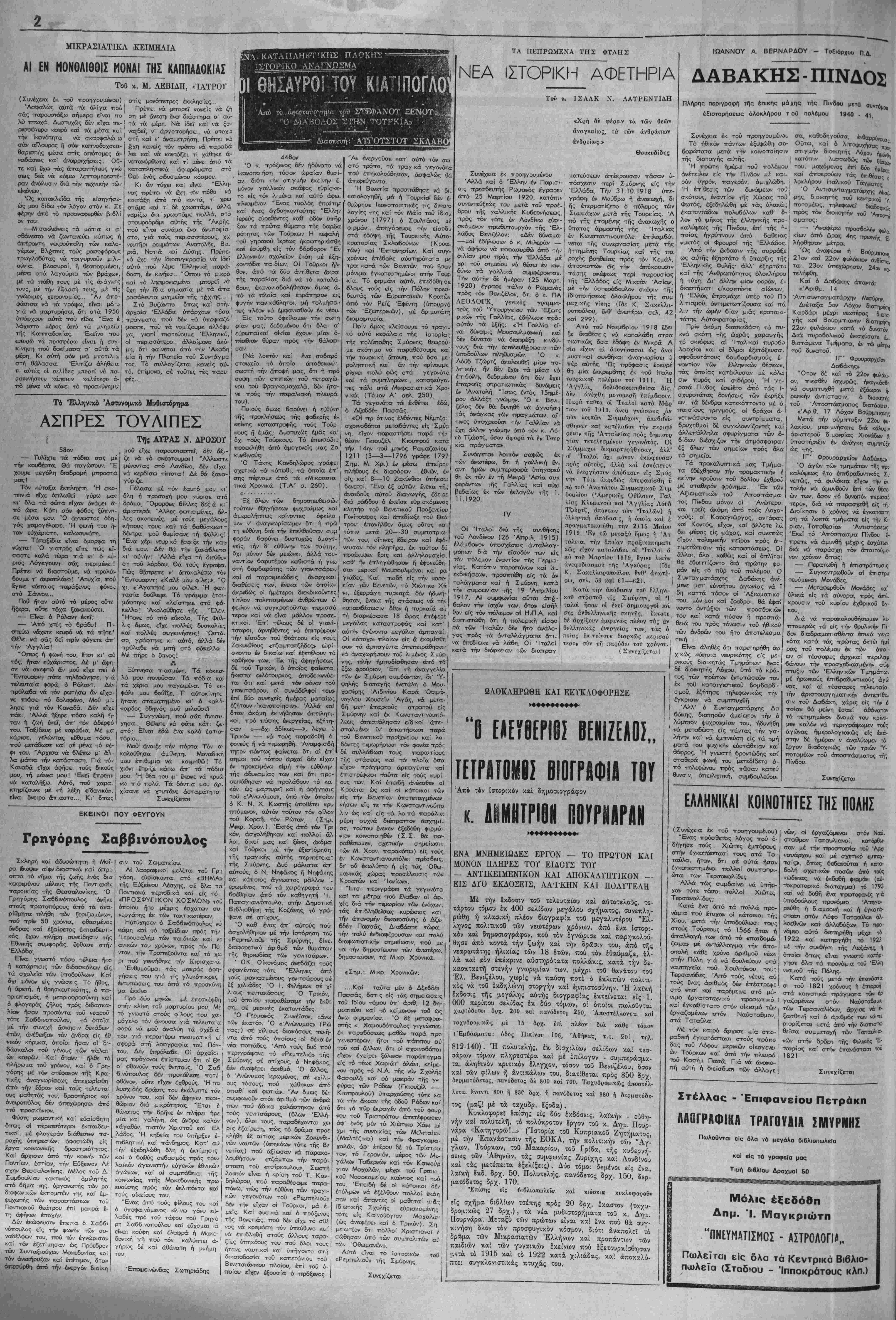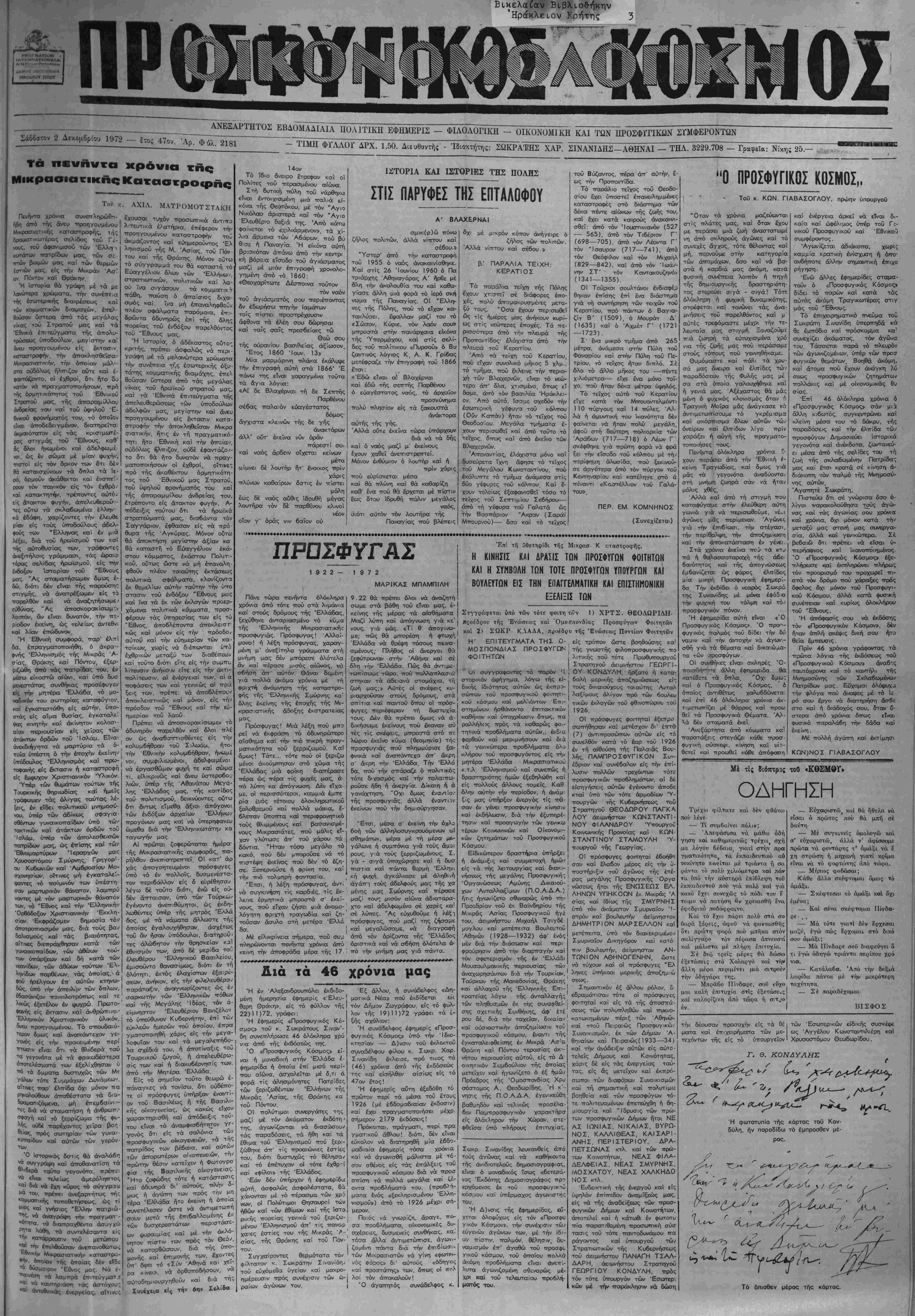_________~ ΤΙΜΗ ΦΓΛΛΟΓ ΔΡΧ. 1,50. Διευθυντής - Ίδιοχτήτης: ΣΩΚΡΑΈΗΣ ΧΑΡ. ΣΙΝΑΝΙΔΗΣ—ΑΘΗΝΑΙ — ΤΗΛ. 3229.ΤΟ8 — Γοαφεία: Νίκης 25-