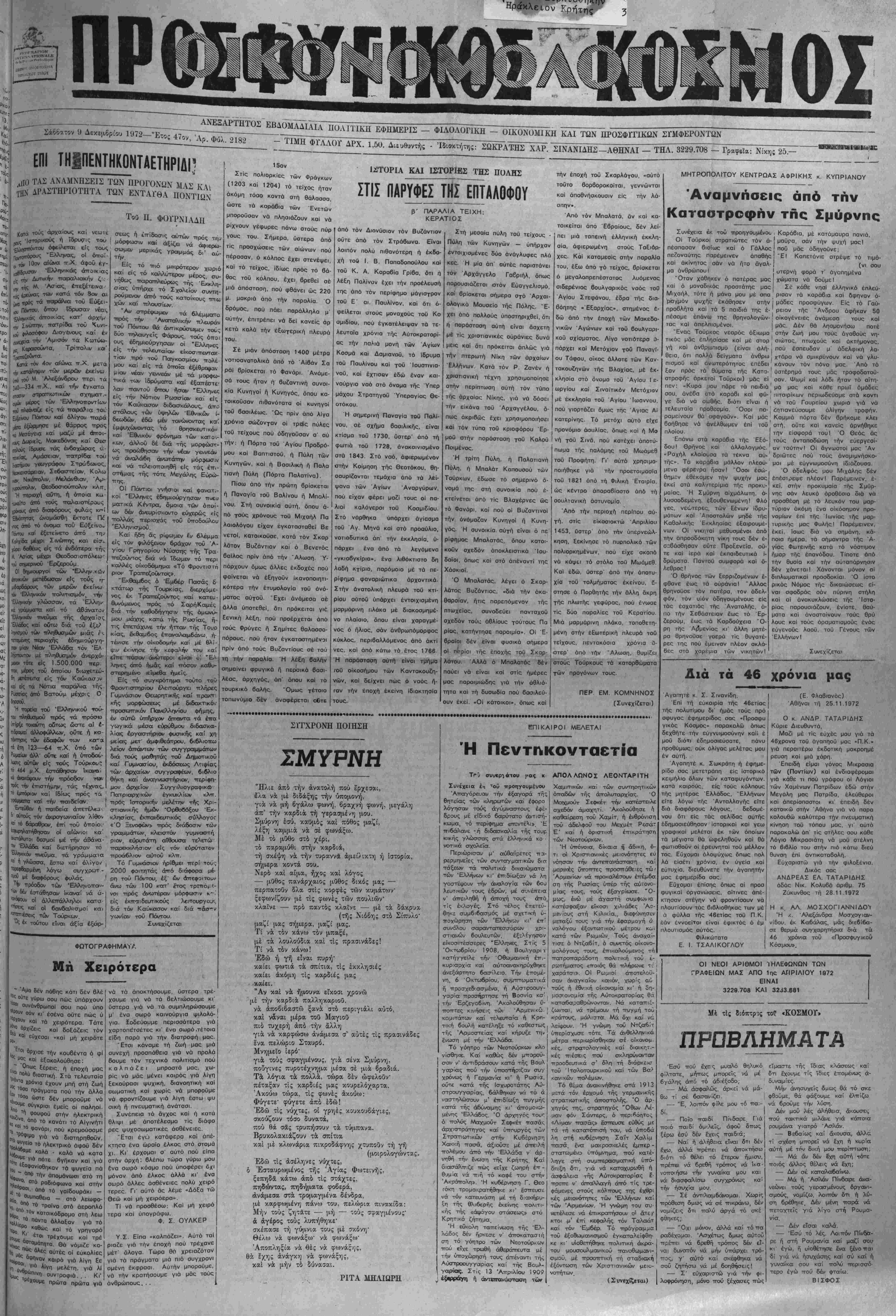 ΔΡΧ. 1,50. Διευθυντής - Ίδιοκτή^ΓΣΩΚΡΑΤΗΣ ΧΑΡ. ΣΙΝΑΝΙΔΗΣ-ΑΘΗΝΑΙ - ΤΗΛ. 3229.708 -Γραφ,ΐα: Νίκη; 25.-