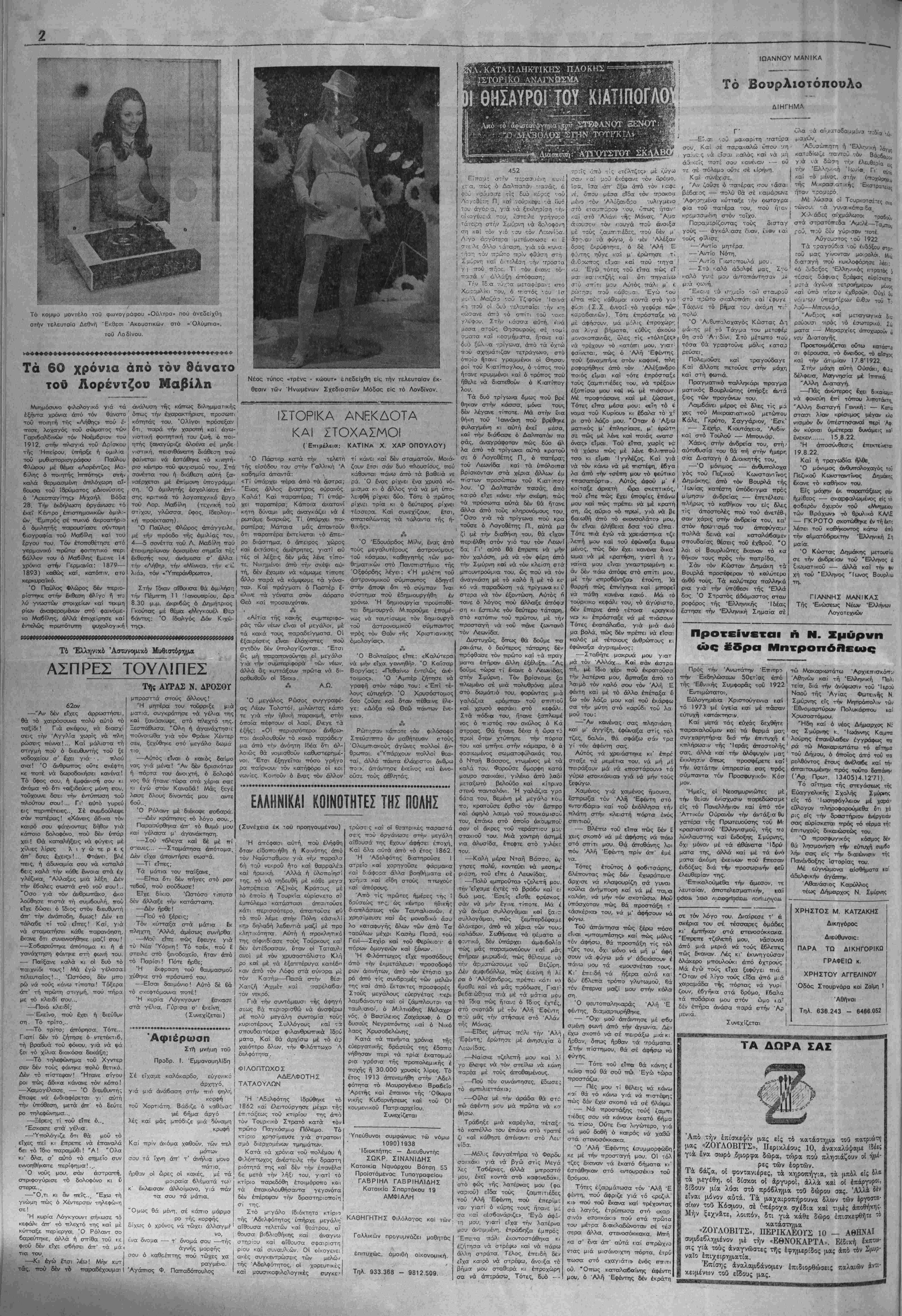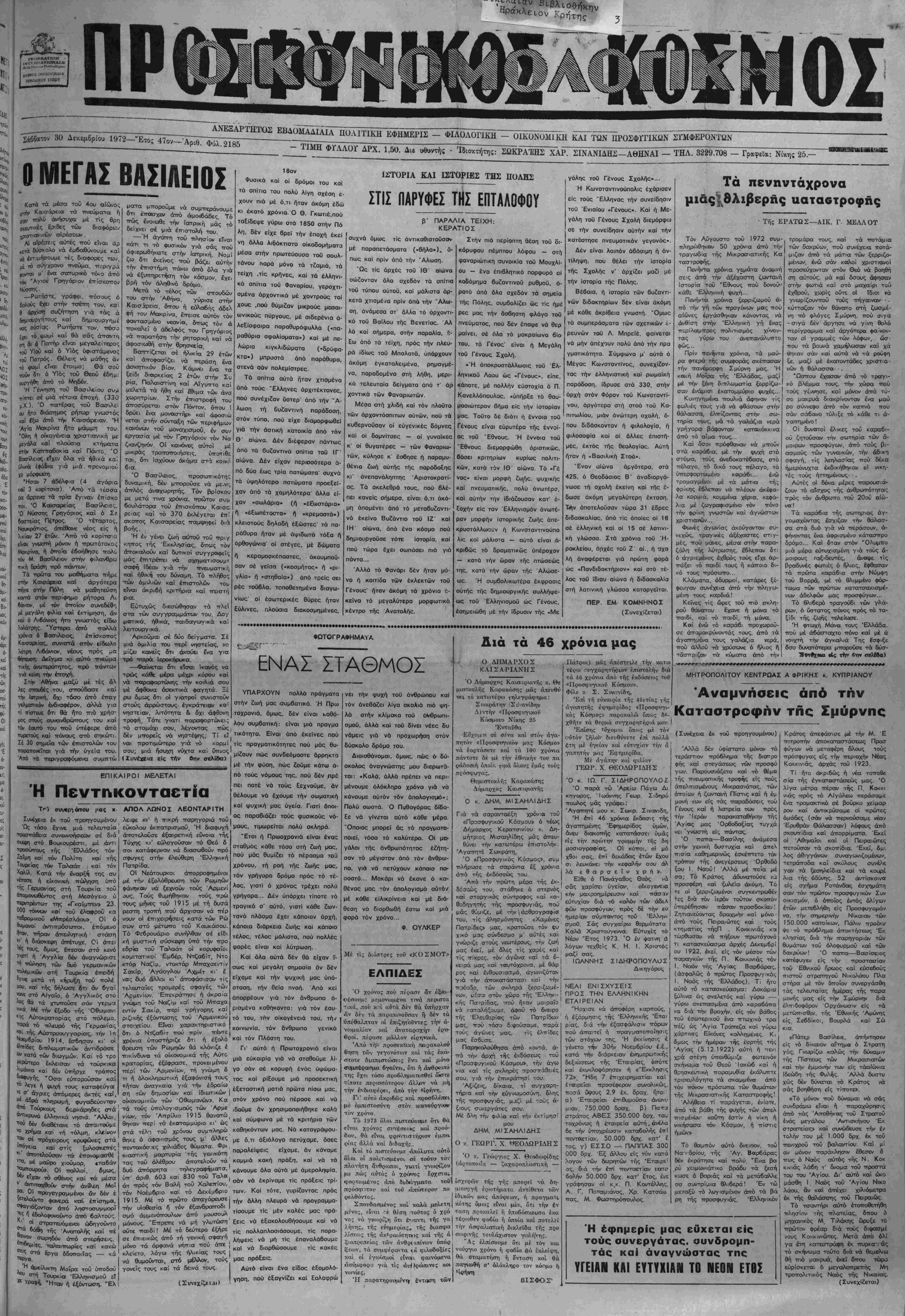 Σάββατον 30 Δεκεμβριού 1972—Έτος 47ον—ΛνΓφύλ.2185
