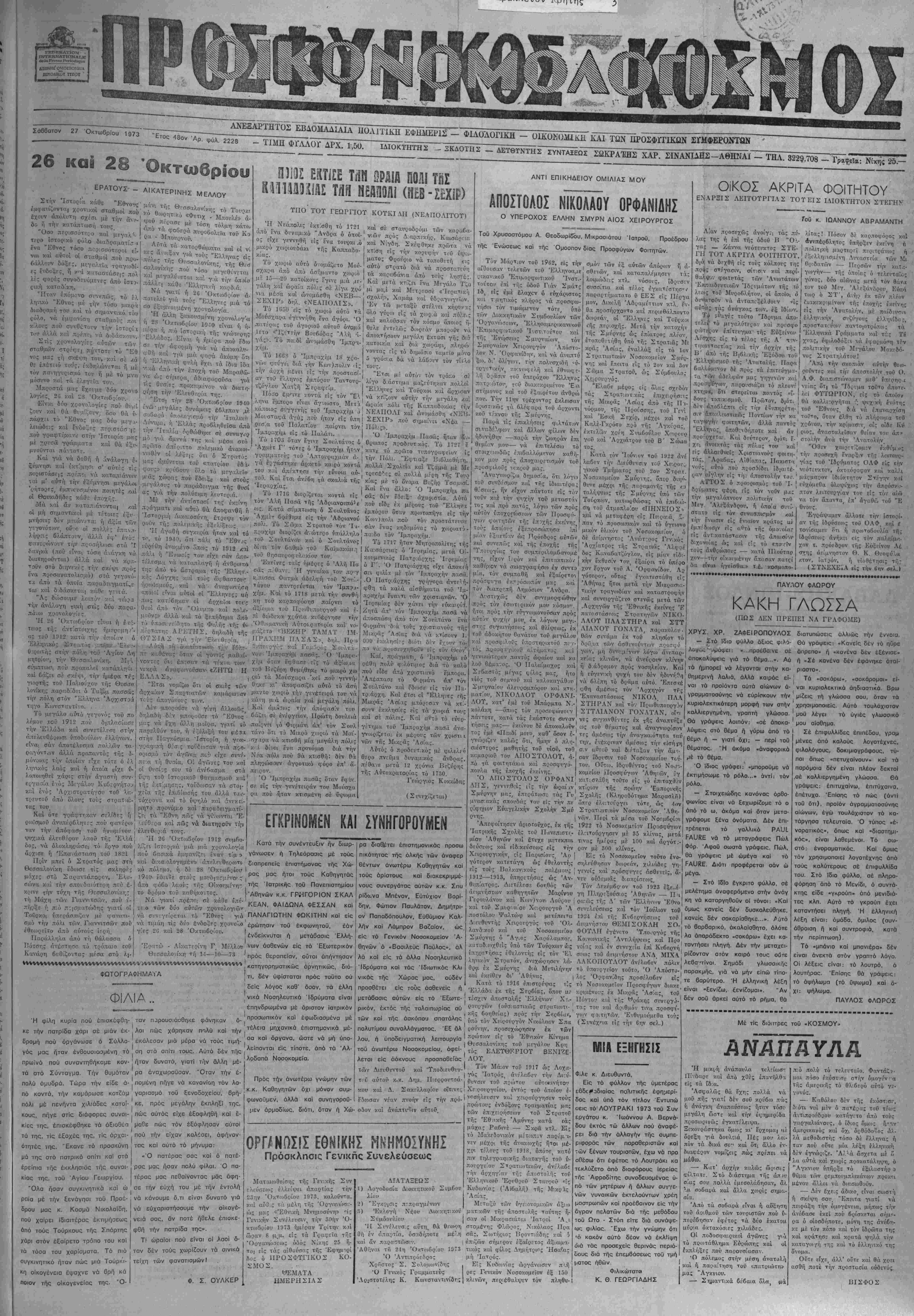 Σάββατον 27 Όκτωβρίου 1973