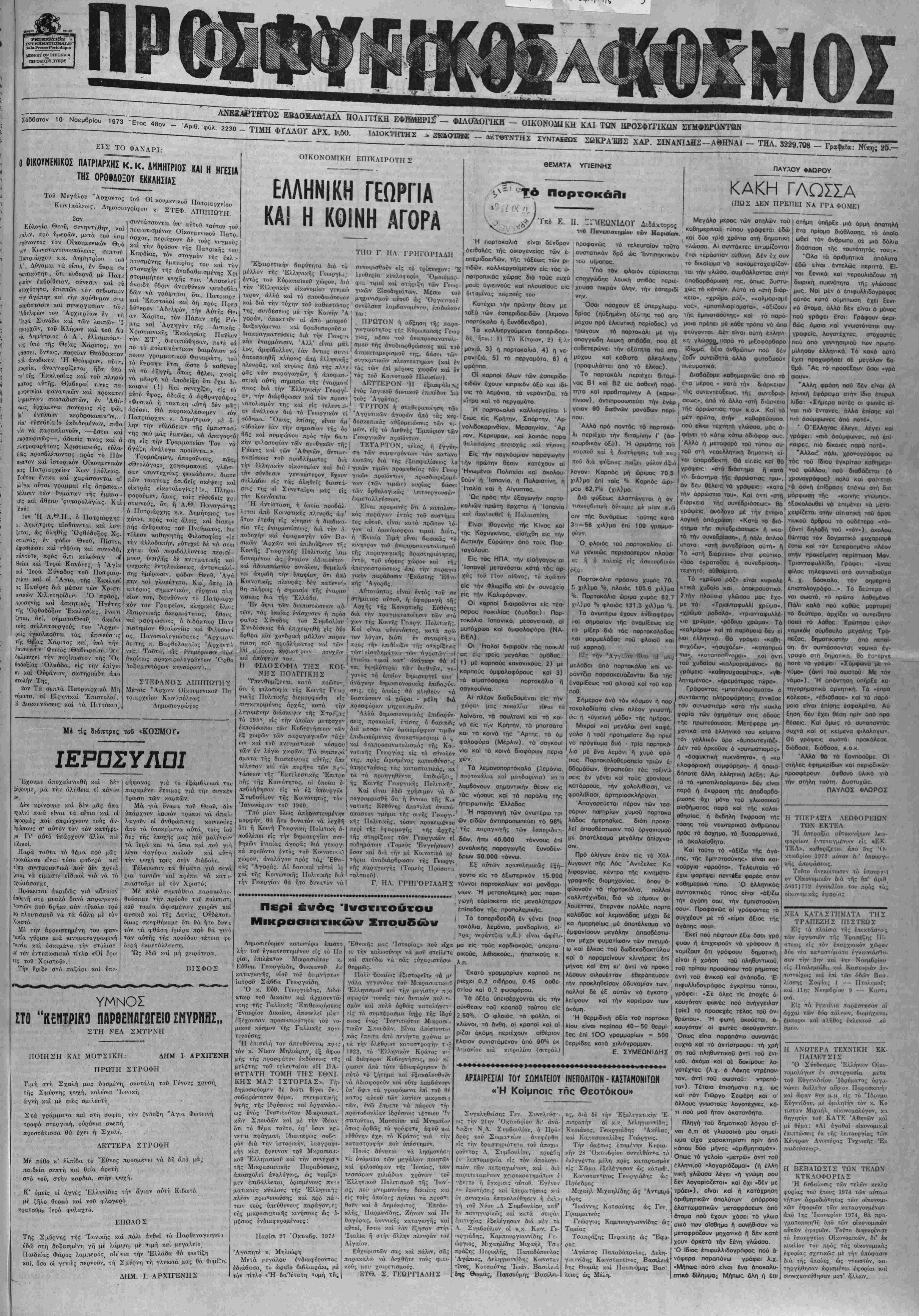 αυτο υφο;, άδϊώ; ά Αρθρογράφ·.»; αν· τί1ν οιάρβρωσιν καί τόν προ/τι' τού; "Αγρότας.