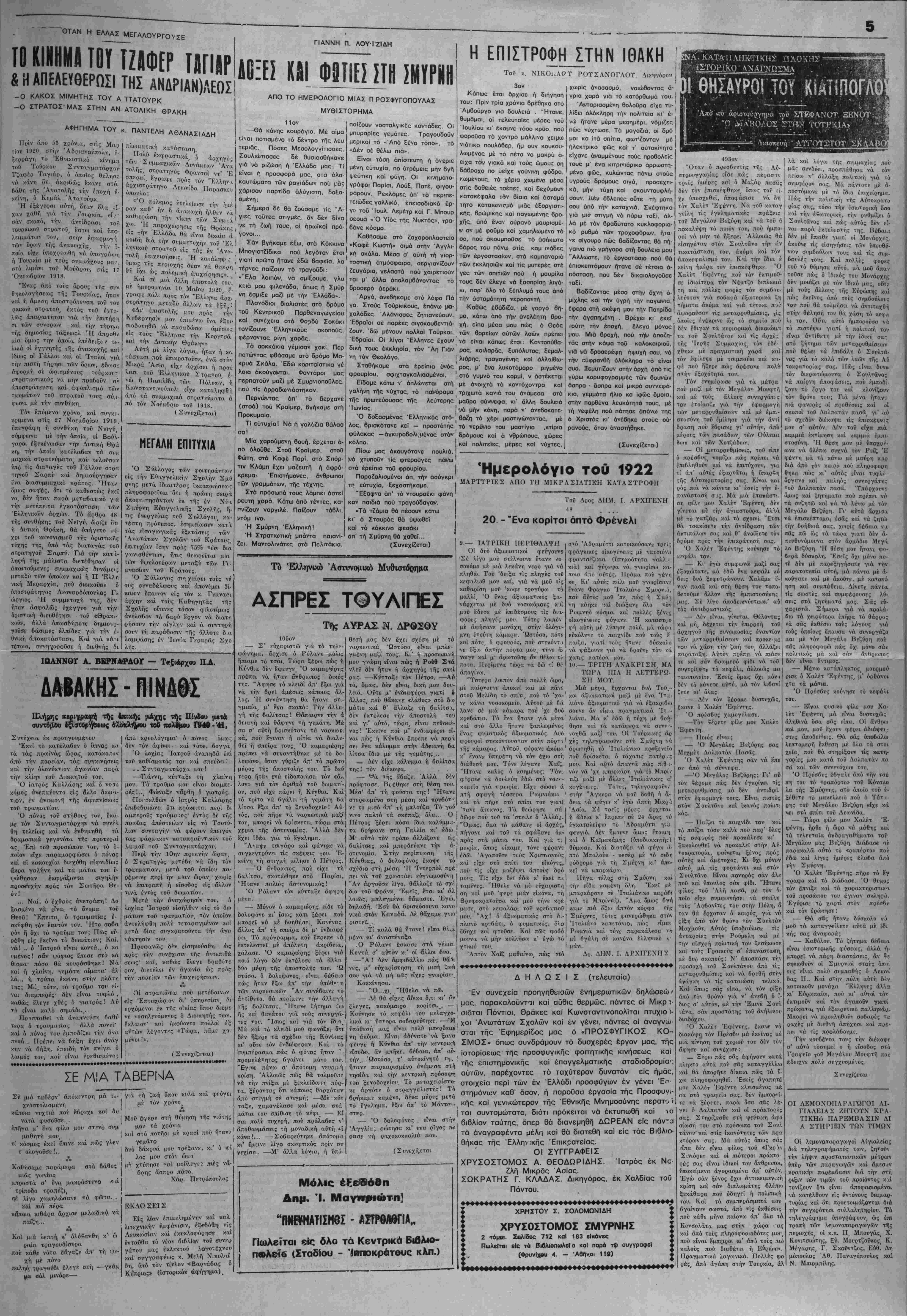 .τ,ληγή εί; τό μ»<αλό τού παπά. Μί: τί τρόπο μποροΰσε νά σώση τού; συμΐτατρώτε; τού; Δέν ύπήρχ* <1λ λη λύσις έκτός εάν δέν φρονούν νενό είς την Έλληνική στΛ'οικία. Είναι έ'νας λύγος νά φέροι»ν νερύ, άλλά άπό ποία πηγή, μέ τί χρήμι'. τα; αϋτά δλα θέλουν κρατική 6ν· ναμη. "Ενας άσήμαΛττος φτονχός παπάς πώς μπορεΐ νά κάνη αΰπ') πού σκεφτεται, τά νά φέροιιν ν· ρο; (Σ ννεχίζεται) ΔΩΡΕΑ ΕΙΣ ΜΝΗΜΗΝ Είς μνήμην Τών γονέιον των, 5 ν- καί ή κ. Γαβριήλ Τσακίρη, δ.£- θεσαν νπέρ των οκοπών τής έν Νέα Ίιονία «Ένώσειος Σπάρτης Πισιδίας καί των πέριξ» δραχμάς 2.000.