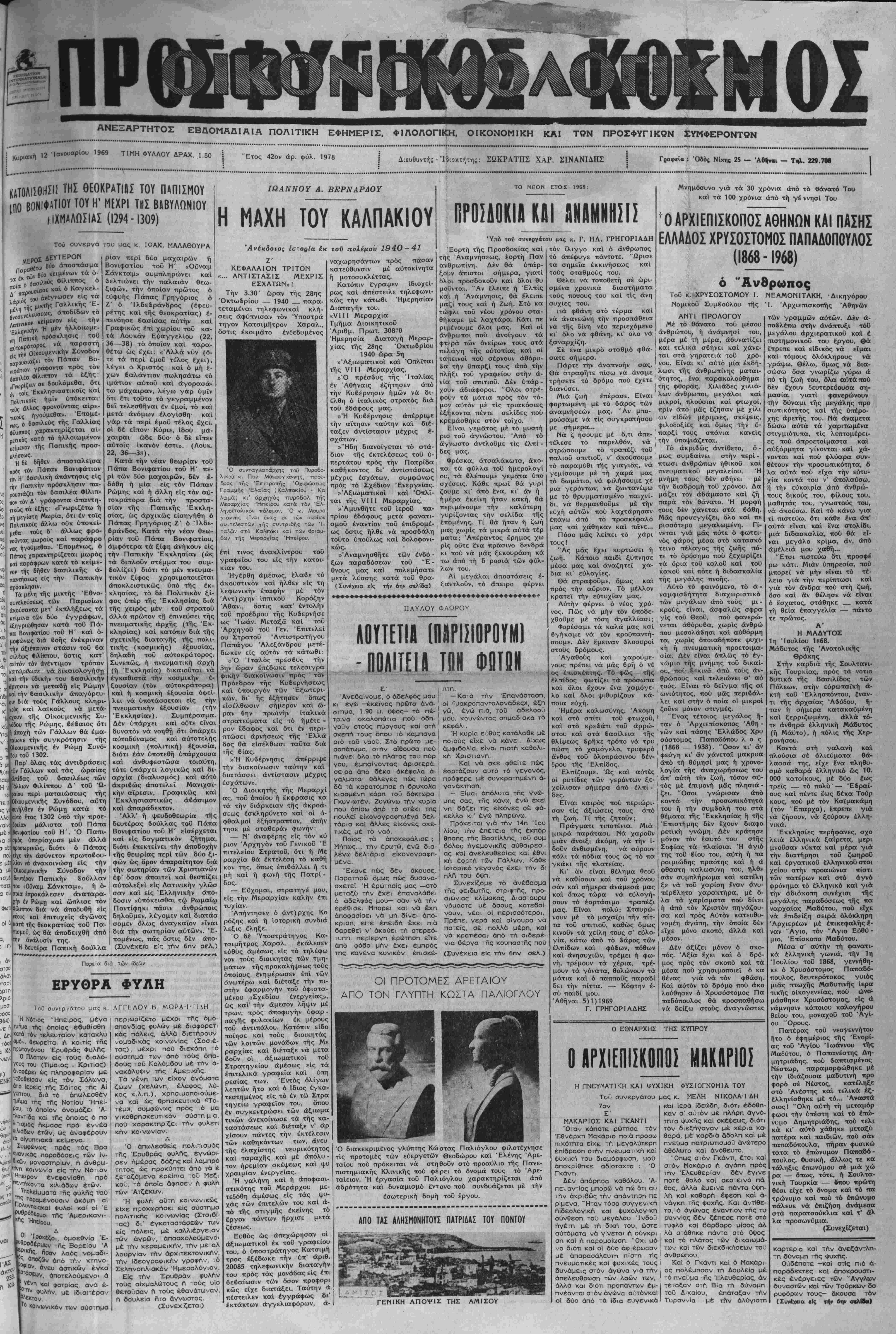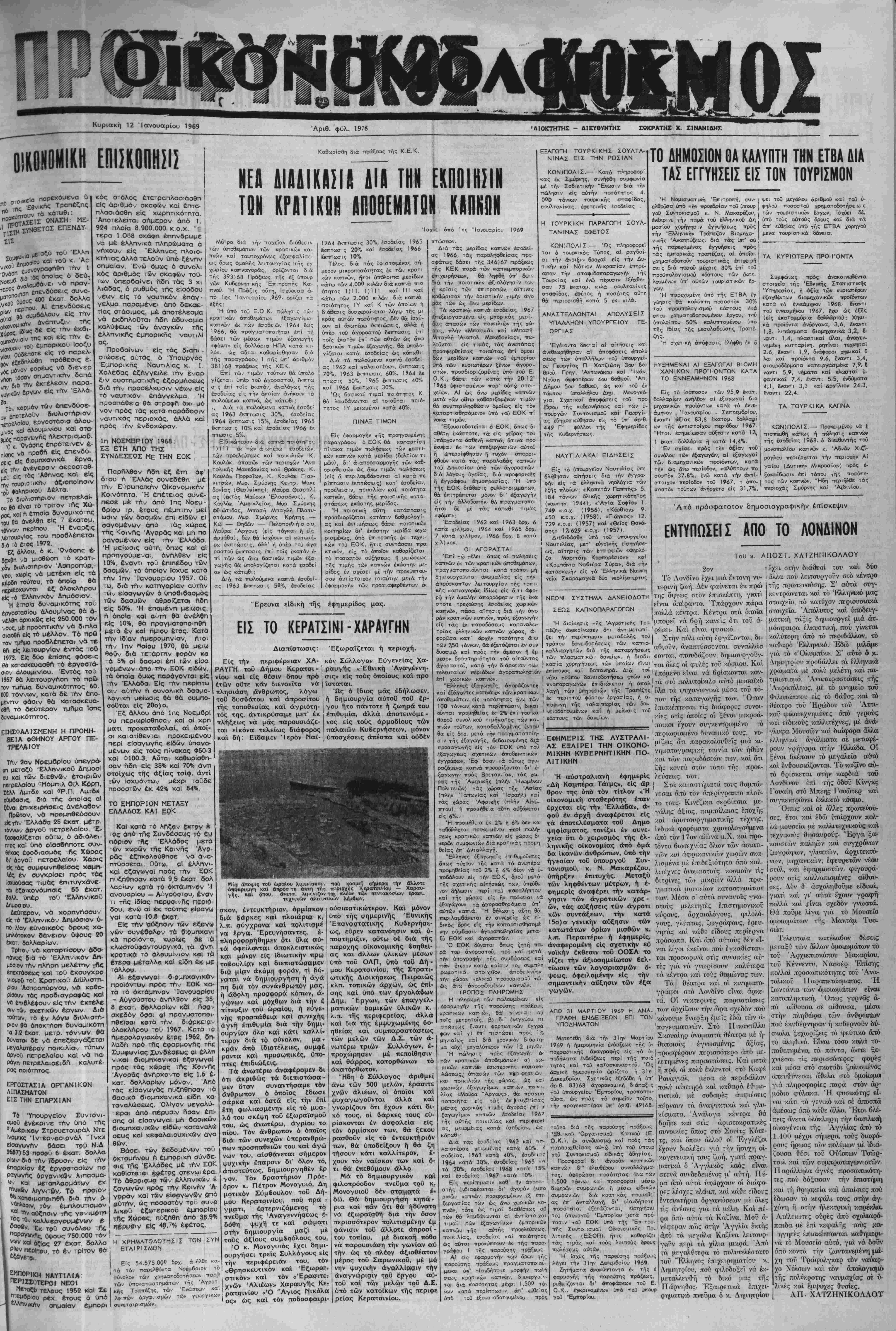 σκί) 12 Ιονουαρίου 1969 ΤΙΜΗ ΦΥΛΛΟΥ ΔΡΑΧ. 1.50 | "'Ετος 42ον άρ. φύλ. 1978