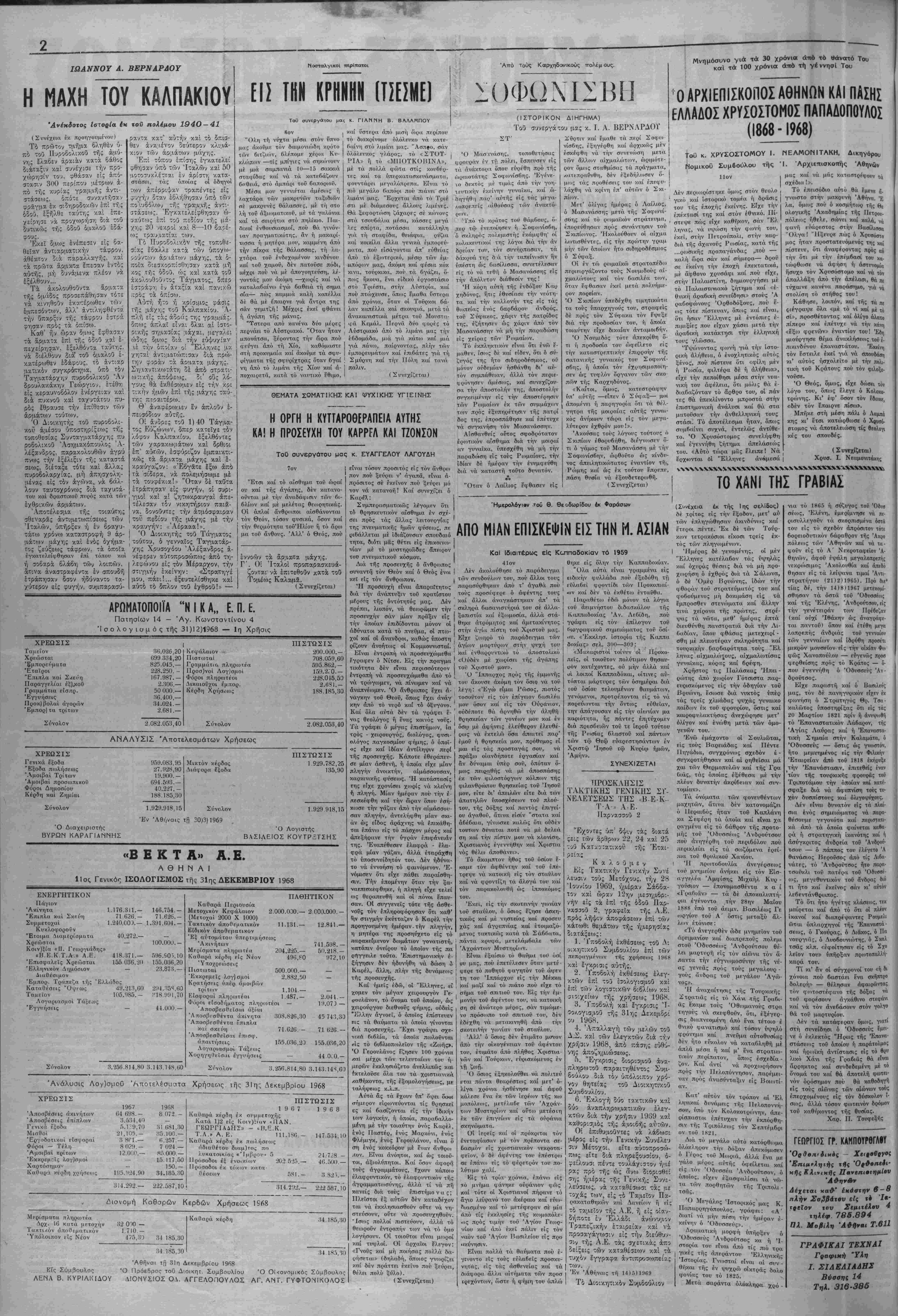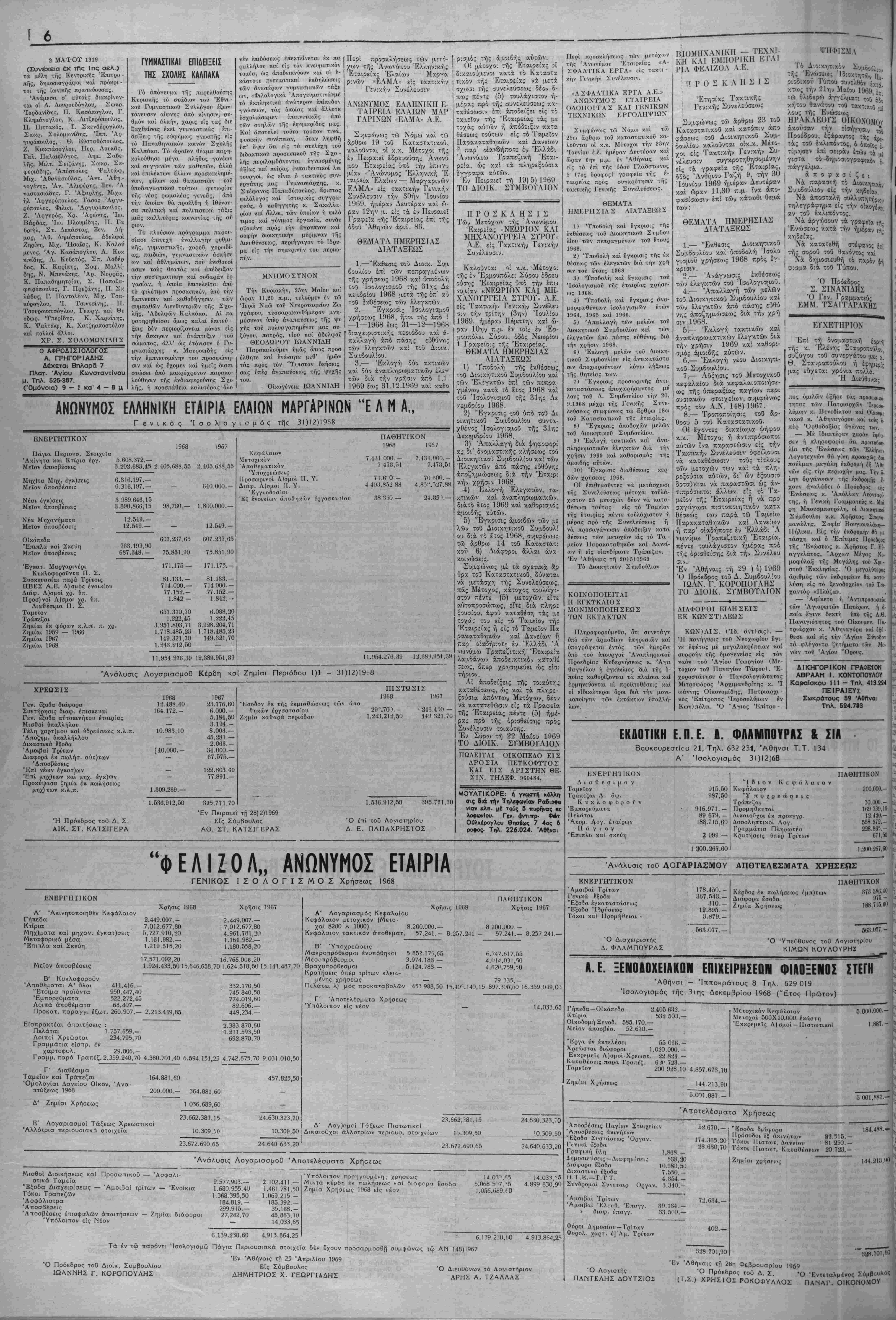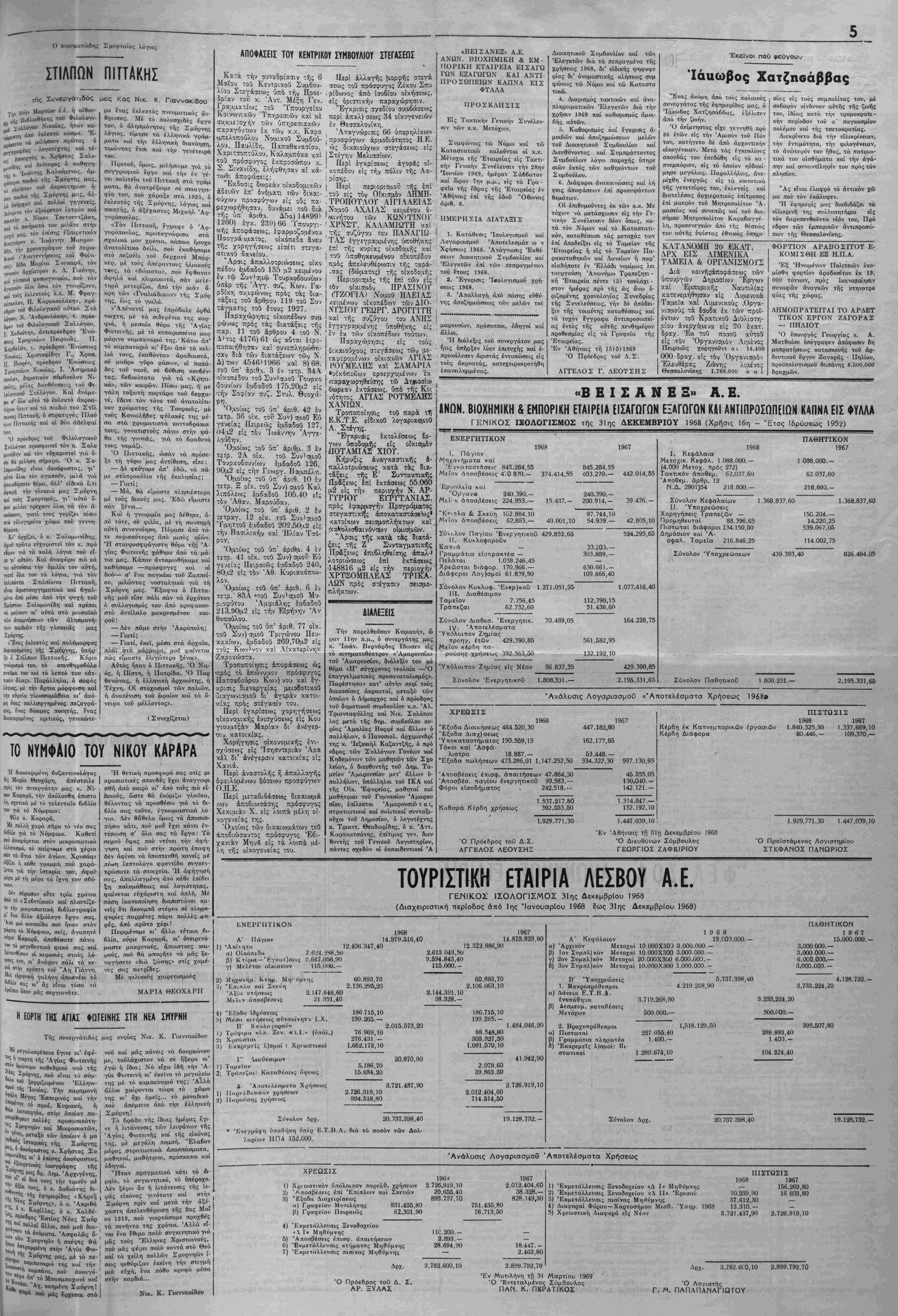 Άμοιβαί Έλειιι'). Έ;τ<ΐγγ. 39.134 — » διαφ. έπαγγ. 33 500.— Φόροι Λημοσίου—Τρίτων Φορολ χαρτ. έ] Α μ. Τρίτων 52.670.- 174.365 20 28.630,70 72.634.- 402.— Τ01.90 "Εσοδα οί... Πρόσοδοι έξ' άκινήτων 8"3 515. Τόκοι ΙΙιστωτ. Δανρίοιι 81250. Τόκοι Πιστωτ, Κατπθέσεων 20 723, Ζημίαι χρήσεως 184.488.- 144.213,110» "388.'.01,"0 Ό Λογιστής ΠΑΝΤΕΛΗΣ ΔΟΥΤΣΙΟ2 Έν Αθήναις τη 2Βη Φϊβρουαρίου 1969 Ό Πρόεδρος τοθ Δ. Σ. Ό Έντετσλμίνος Σύμβο (Τ.Σ.) ΧΡΗΣΤΟΣ ΡΟΚΟΦΥΛΛΟΣ ΠΑΝΑΓ. ΟΙΚΟΝΟΜΟΥ