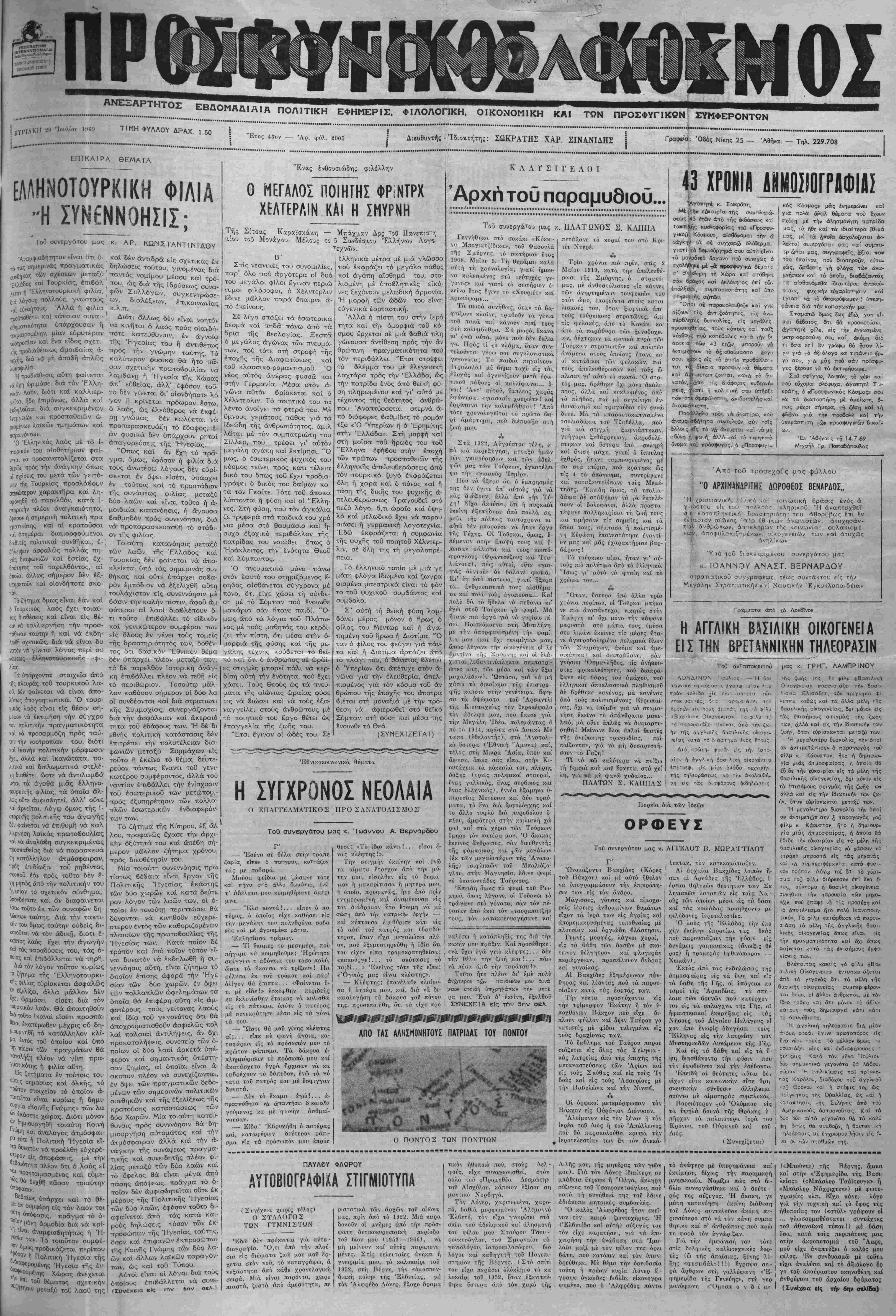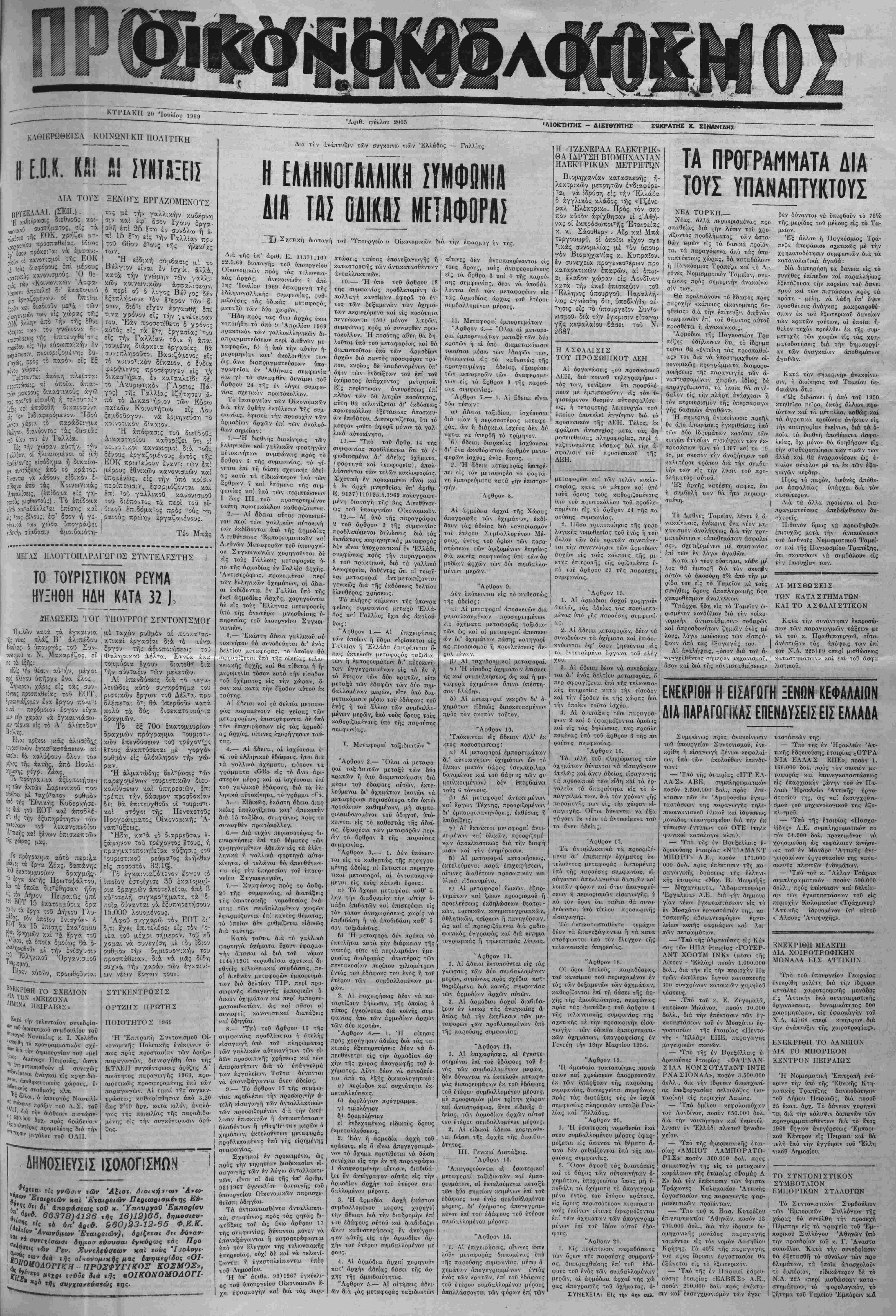 ΚΤΡΙΑΚΗ 20 Ιουλίου 1!»69 ΤΙΜΗ ΦΥΛΛΟΥ ΔΡΑΧ ι