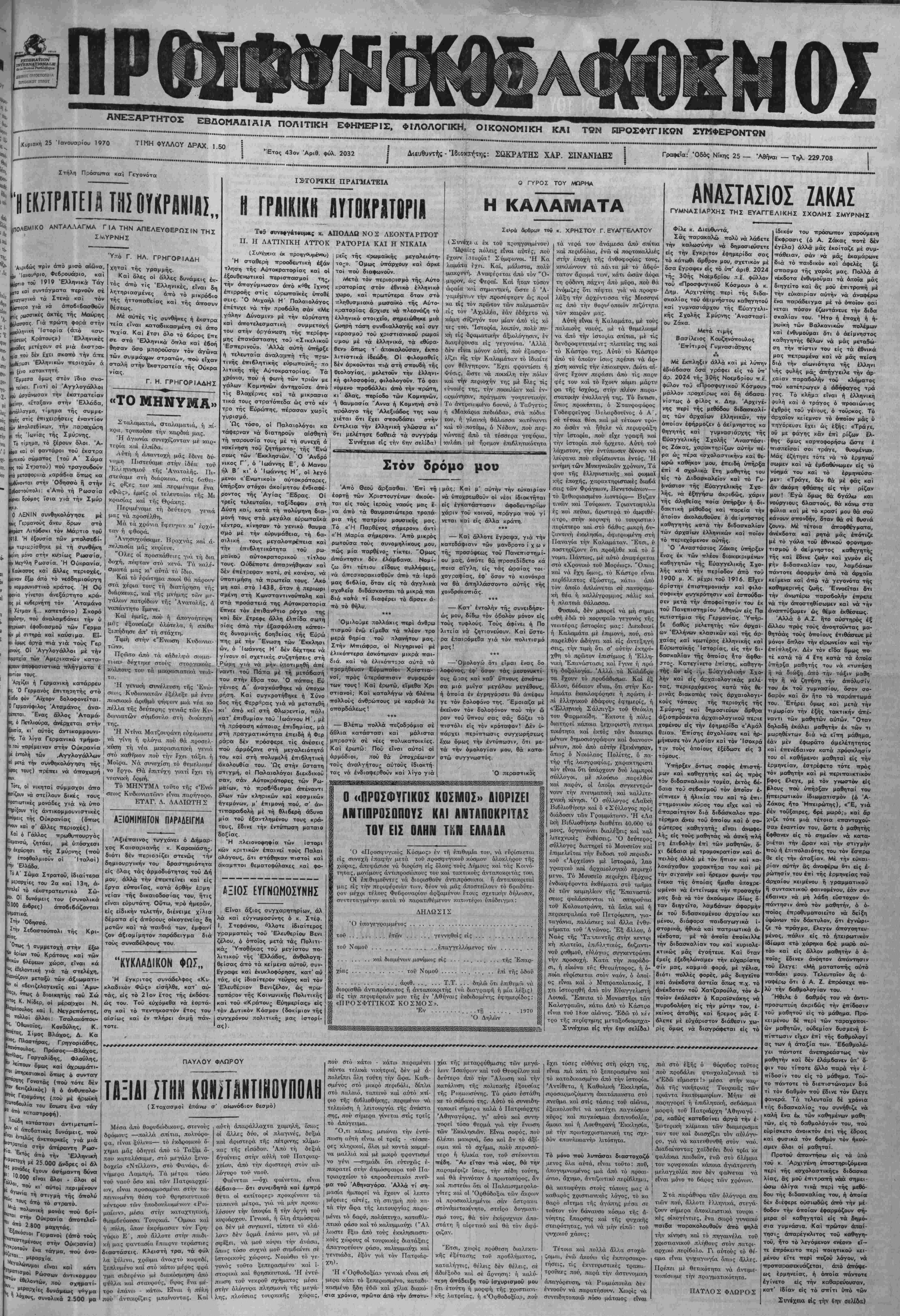 } "Ετος 43ον Αριθ. φύλ. 2032 | Διευτ)υντής - Ίδιοχτ.ή'της: ΣΟ,ΚΡΑΤΗΣ ΧΑΡ. ΣΙΝΑΝΙΔΗΣ