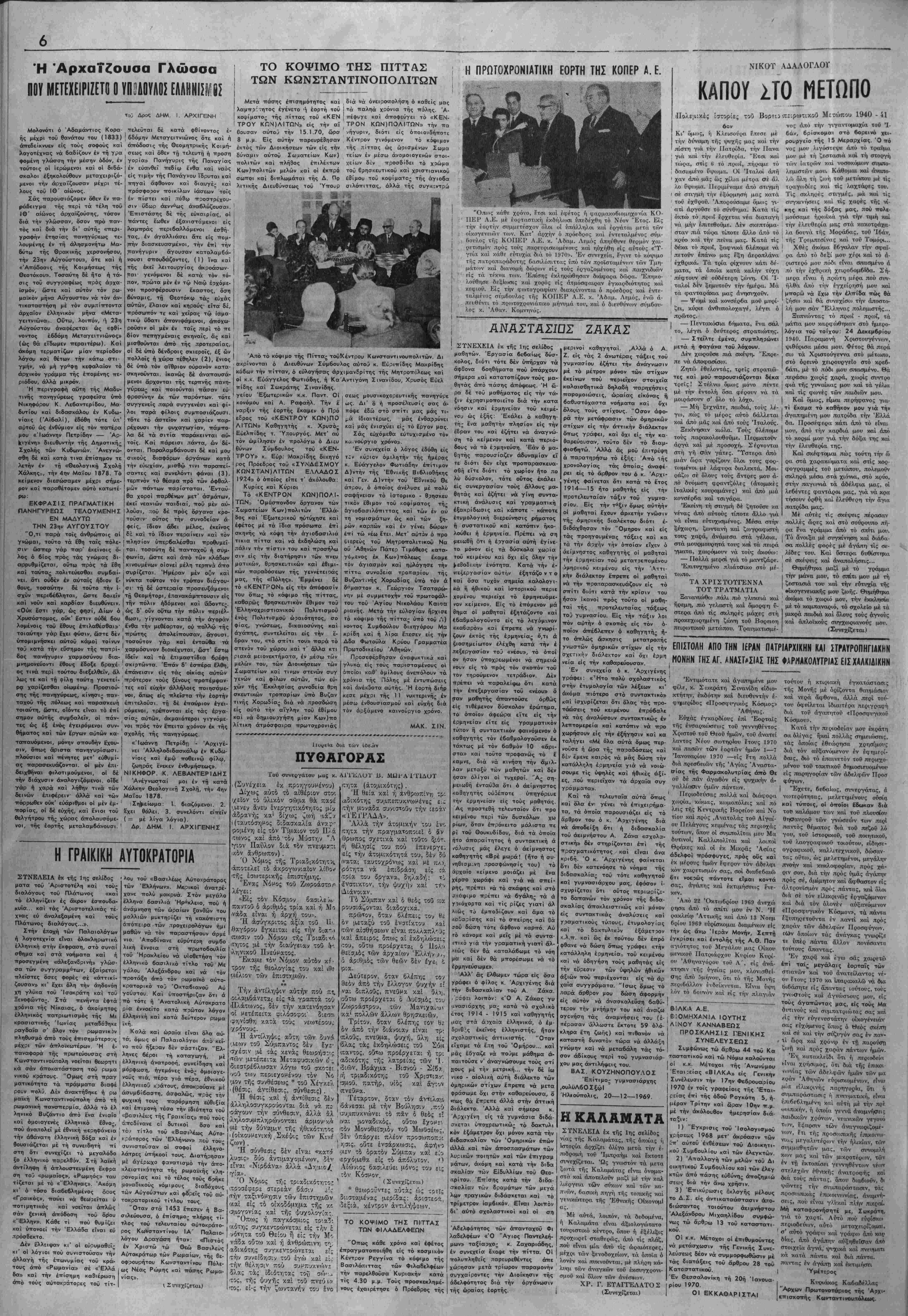 έν συνεχιία έ<οψε την πίττα. Οί | μέχρι των ξενοδοχείον, τα όποΐα ό πολυπληθεΐς παρευρεβέντες άπε ' λονέν καί πνκνοΰνται, μέ πλήρη κά- χώρησαν μετά τρίωρον παραμονήν λι<αι των άναγκών τοΰ έκσι«γχρονι- σι,γχαίροντες την Διοίκησιν τής σαοΰ καί όλον των άνέ<τ§ων. αδελφότητος διά την οργάνωσιν χρ. ρ. ΕΤΑΓΤΕΛΑΤΟ Σ τής ωραίας εορτής. ί (Συνεχίζεται) οί κ.κ. Μέτοχοι τής Άνωνύμου Έται:είας «ΒΙΛΚΑ» είς Γενικήν Συνέλευσιν την 17ην Φεβρονααίου Ι97ιΟ έν τοίς γραφείοις τής ΊΕται- ρείας επί τής οδόν Ρογκότη 5, η¬ μέραν Τρίτην καΐ ίίραν ΙΟην π.μ. μέ την ακόλουθον ημερησίαν διά- 1) "Εγκρισις τοΰ Ισολογισμόν χρησεκς 1968 μετ" ακρόασιν των .Ιπ' αυτού έ<Θέσεων τού Διοικητι¬ κόν Σι,μβουλίου καί των έλεγκτών. 2) Απαλλαγή των μελών τοΰ Δι επί ταίς μεγάλαι ς έορταϊς των στιανών καί τοΰ άνατείλαντος νέ¬ ου ίτονς 1970 κα ίπαρακαλώ νά δια 6ιβάσητε είς άπαντας ιοντονς, τοΰς γνί·>στοΰς καί άγνώστους μόν, είς