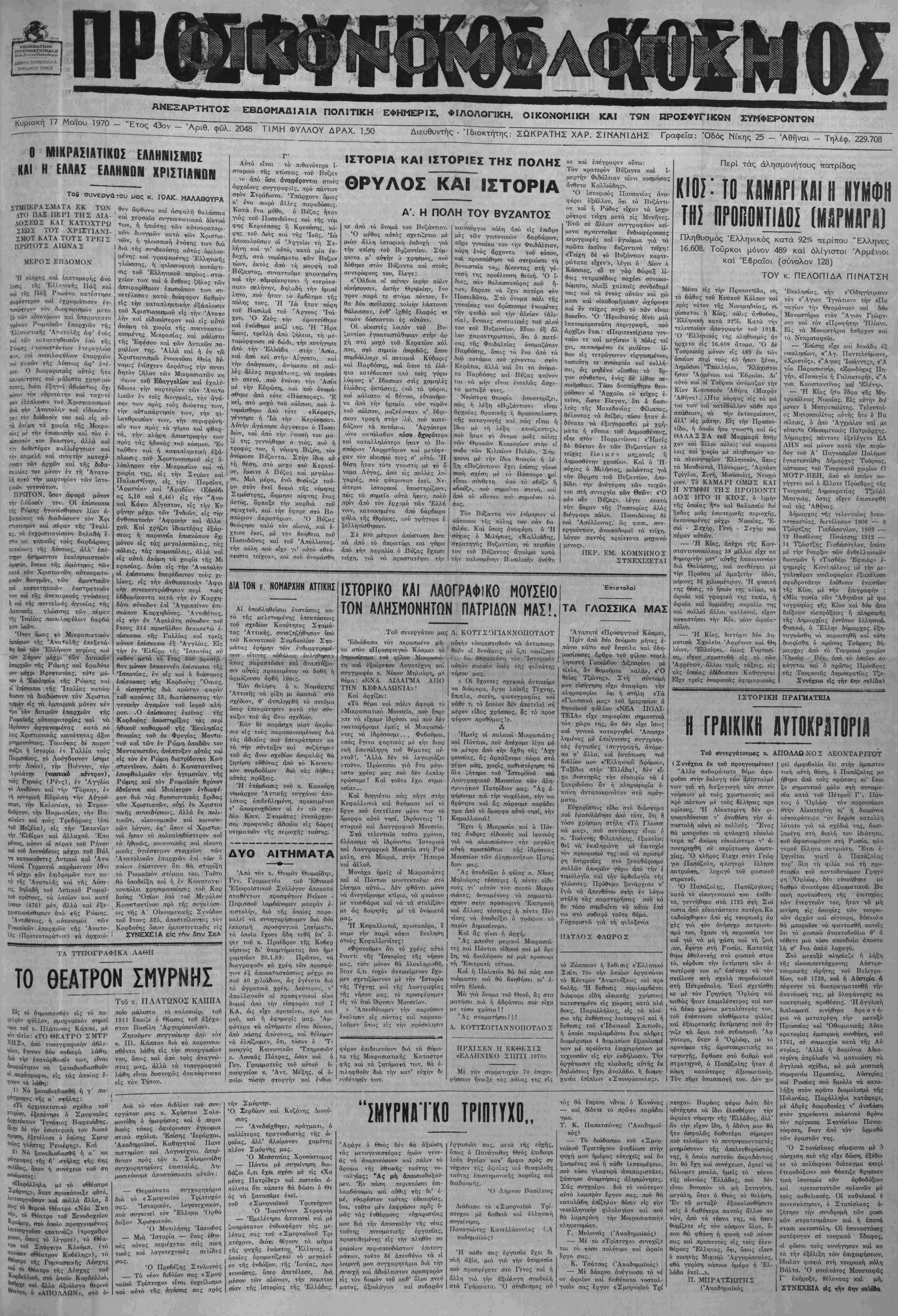 . φύλ. 2048 ΤΙΜΗ ΦΥΛΛΟΥ ΔΡΑΧ. 1,50