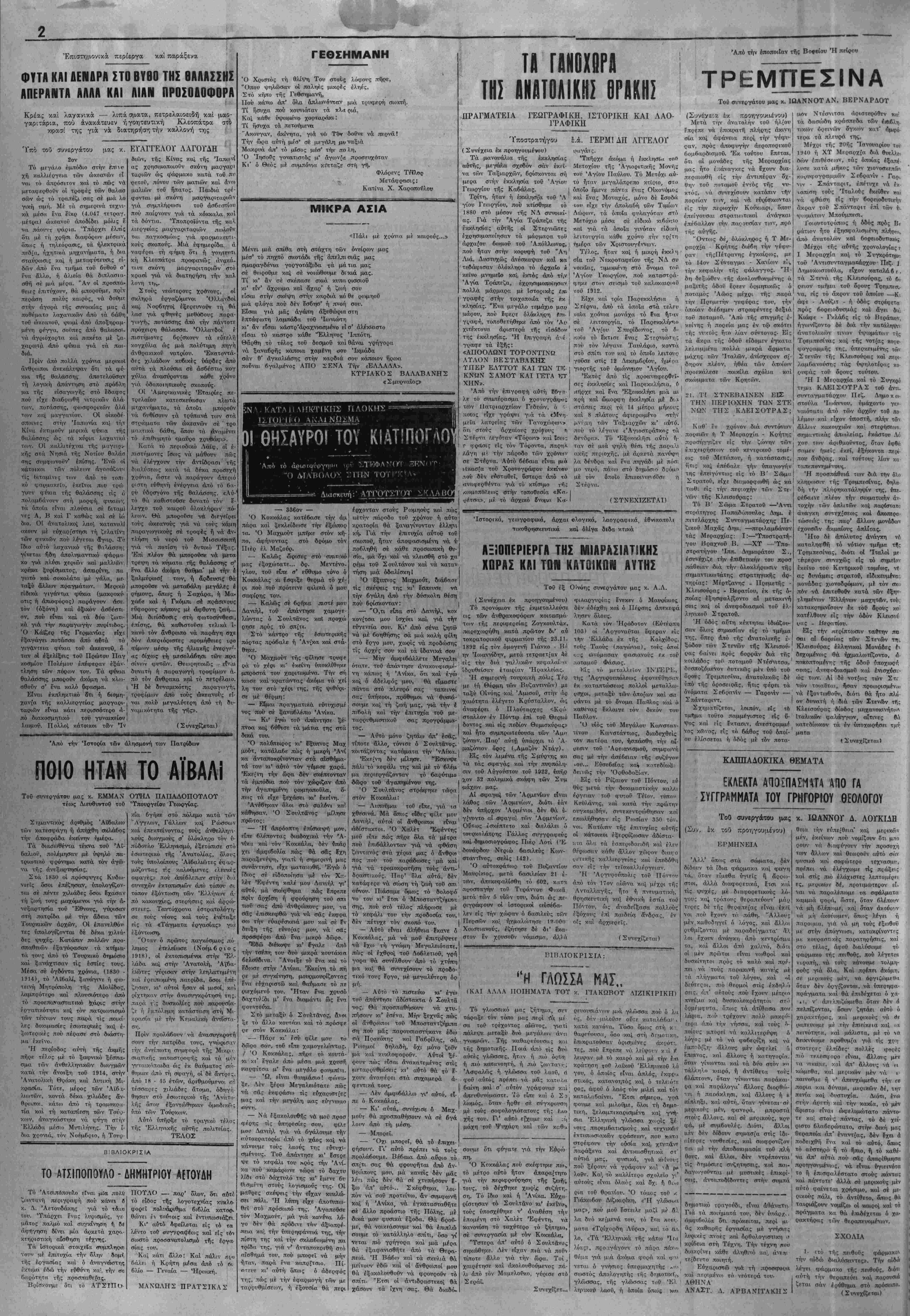 της. "Α<τησε τοΰς Χρΐ(~ιανούς έ ς νίι λαιτρεύουν τττν πά τρογονική τους Θρηβκεία. Καί τ' της ίοτορικής άπο τού πραγμααικά μεγάλου Μμ καϊταικαητοϋ φανήικιχ- νε στή σειρά των αιώνιον εϋεργεΐι ώ τόσο βτούς ΰπόδουλους δσο κ<'ϊ βτοί'ς ΜιοΓΐιμεθανοΰς Τούρκους. 'Ε .«ιδή — Λθώτο — οί "Ελλην ες. ,,έ τ'; ' Εκκληοίες τους κα ι με τα χρτ'φά σχολειά, πού τα. όργανώ βάνε τα.-ΐεινοί καλόνεροι καί κατώ τε^οι κΛ,τιρικοί, διατηρήοανε στά 380 χ<>όνια τής σκλαΰιάς τίς ε