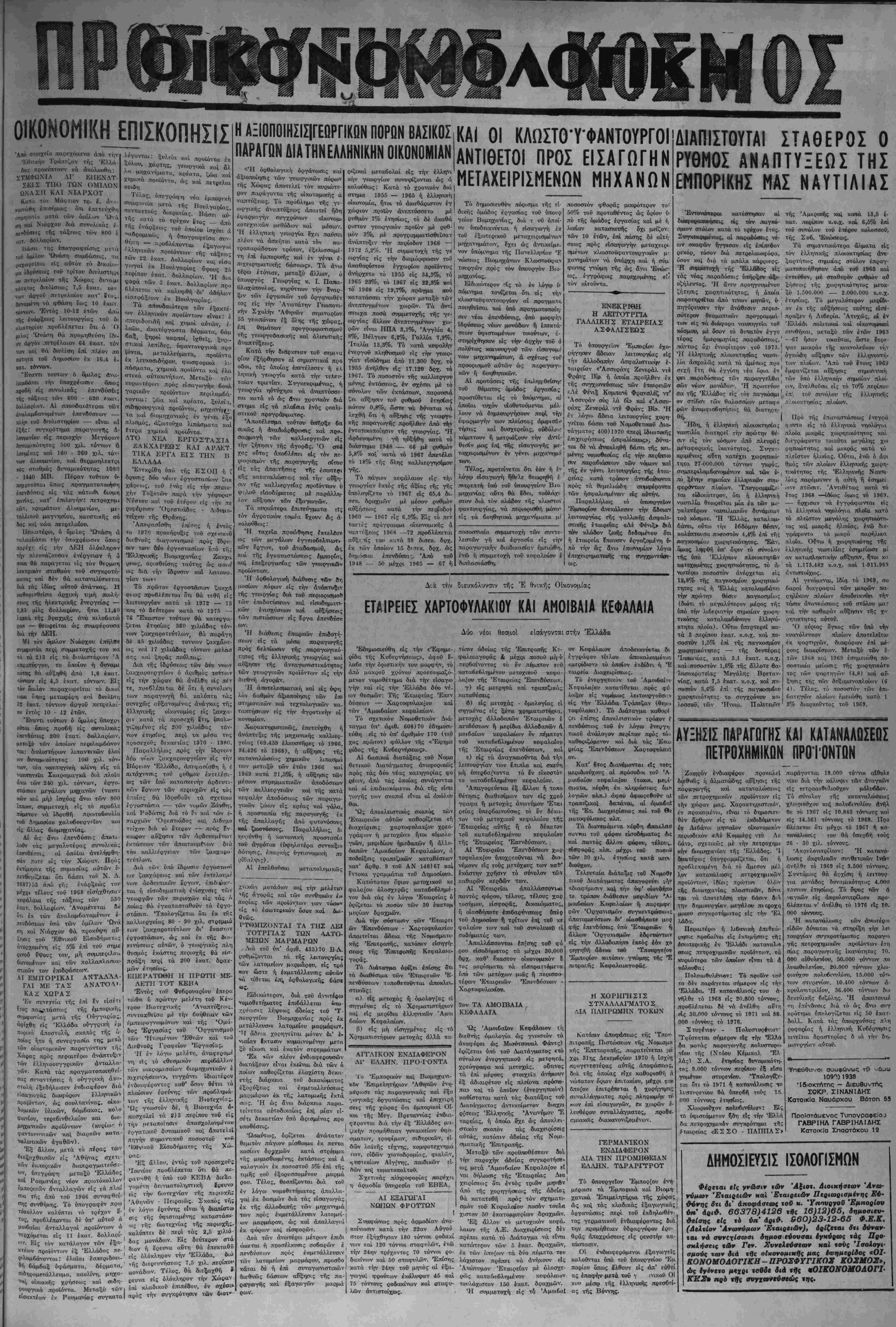| λαϊκάς άποαμιεύσεις καί νά τα; άς 1968. Σχετικώς ένε>:ρ{θη ή π«