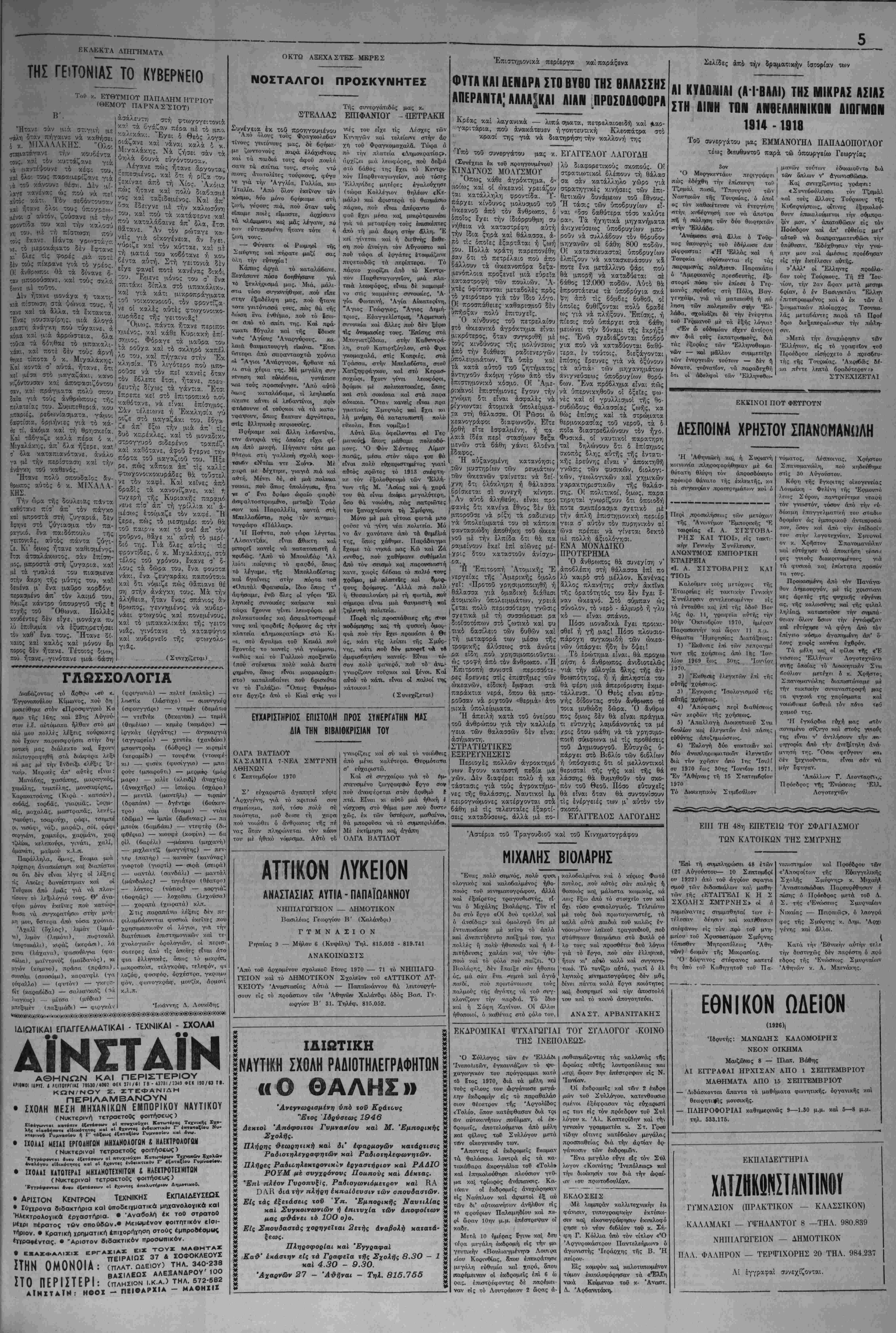 Πληςοφ. καΐ εγγραφαί: 9-2 μ.μ. καΐ β —10 μ μ·