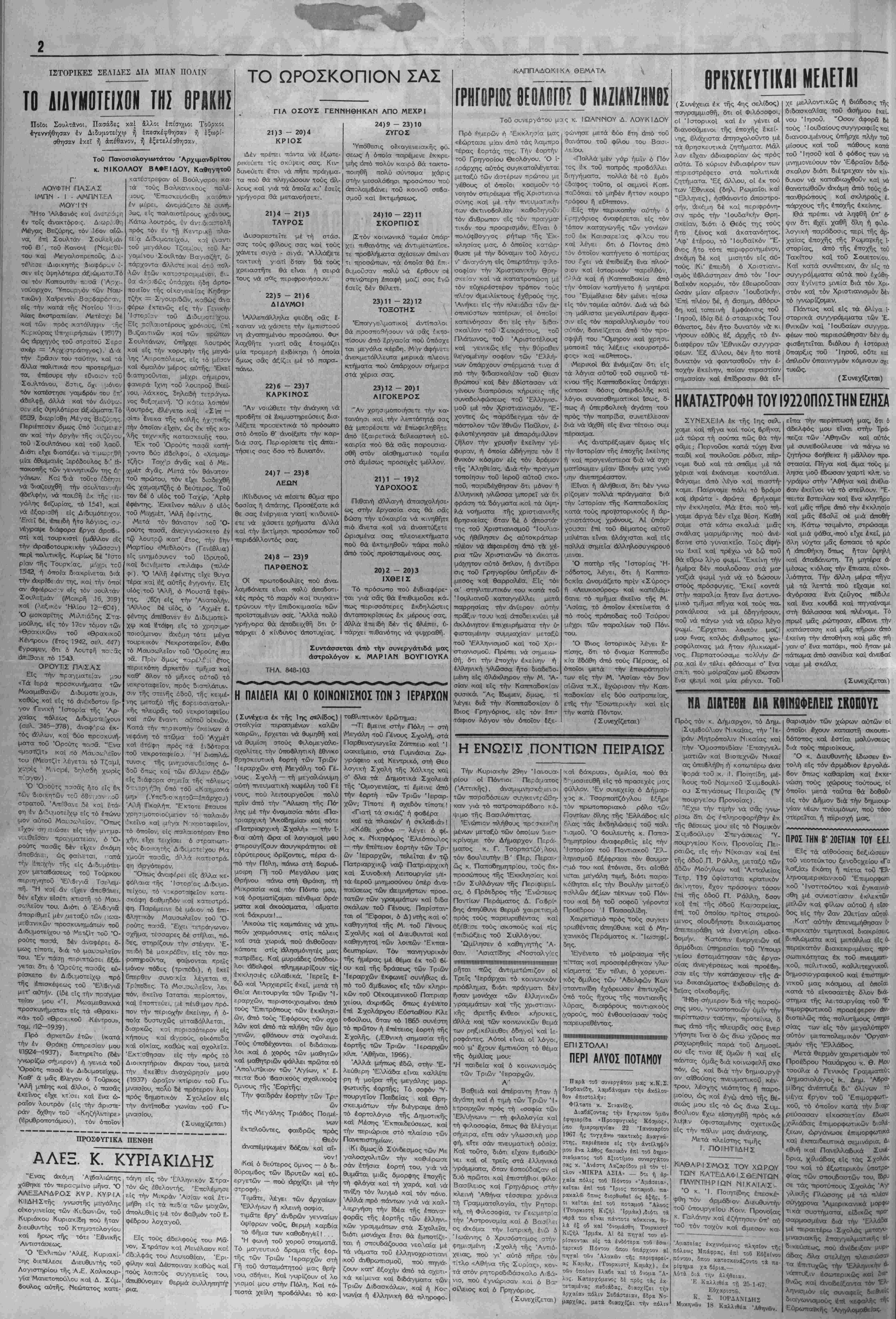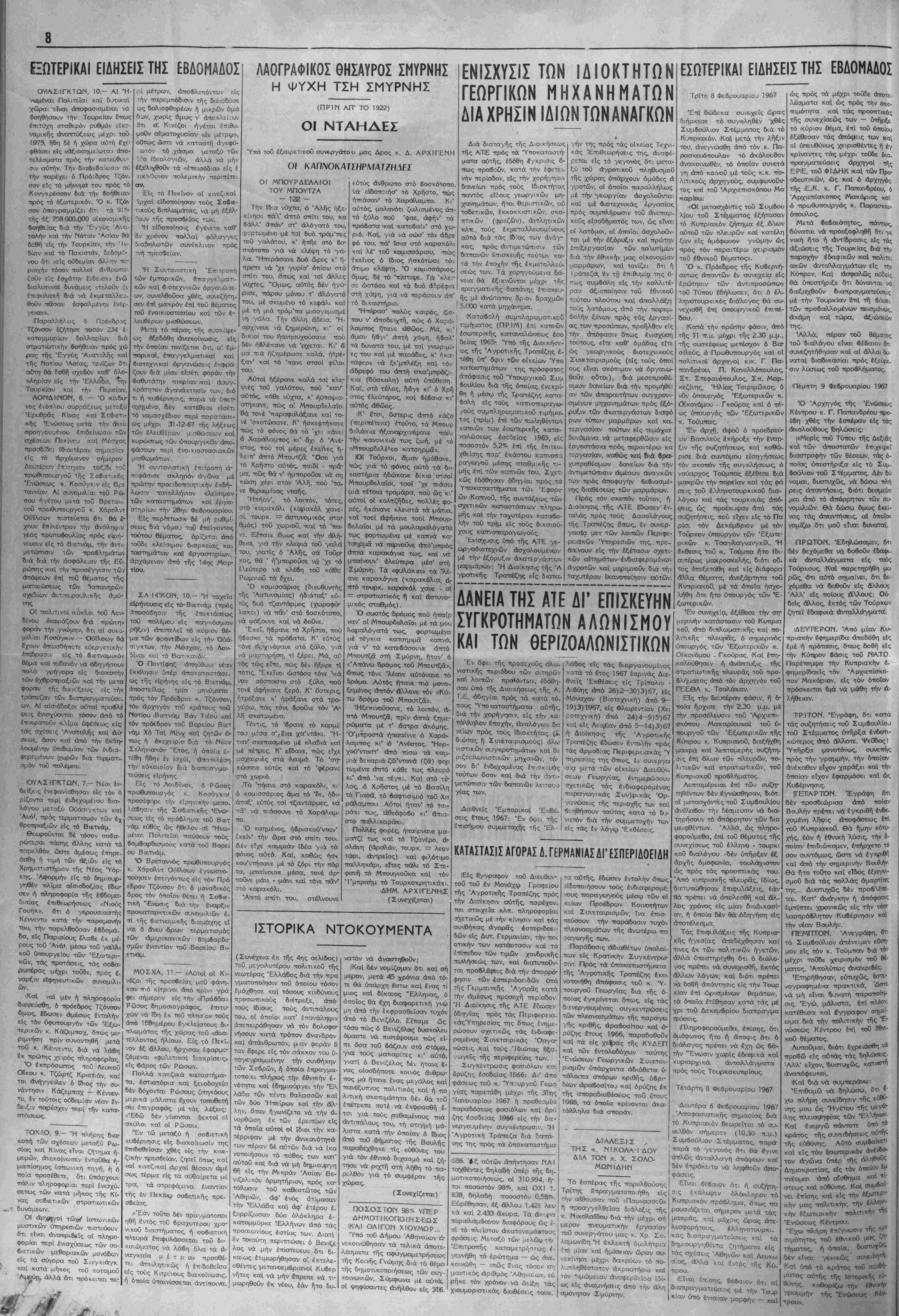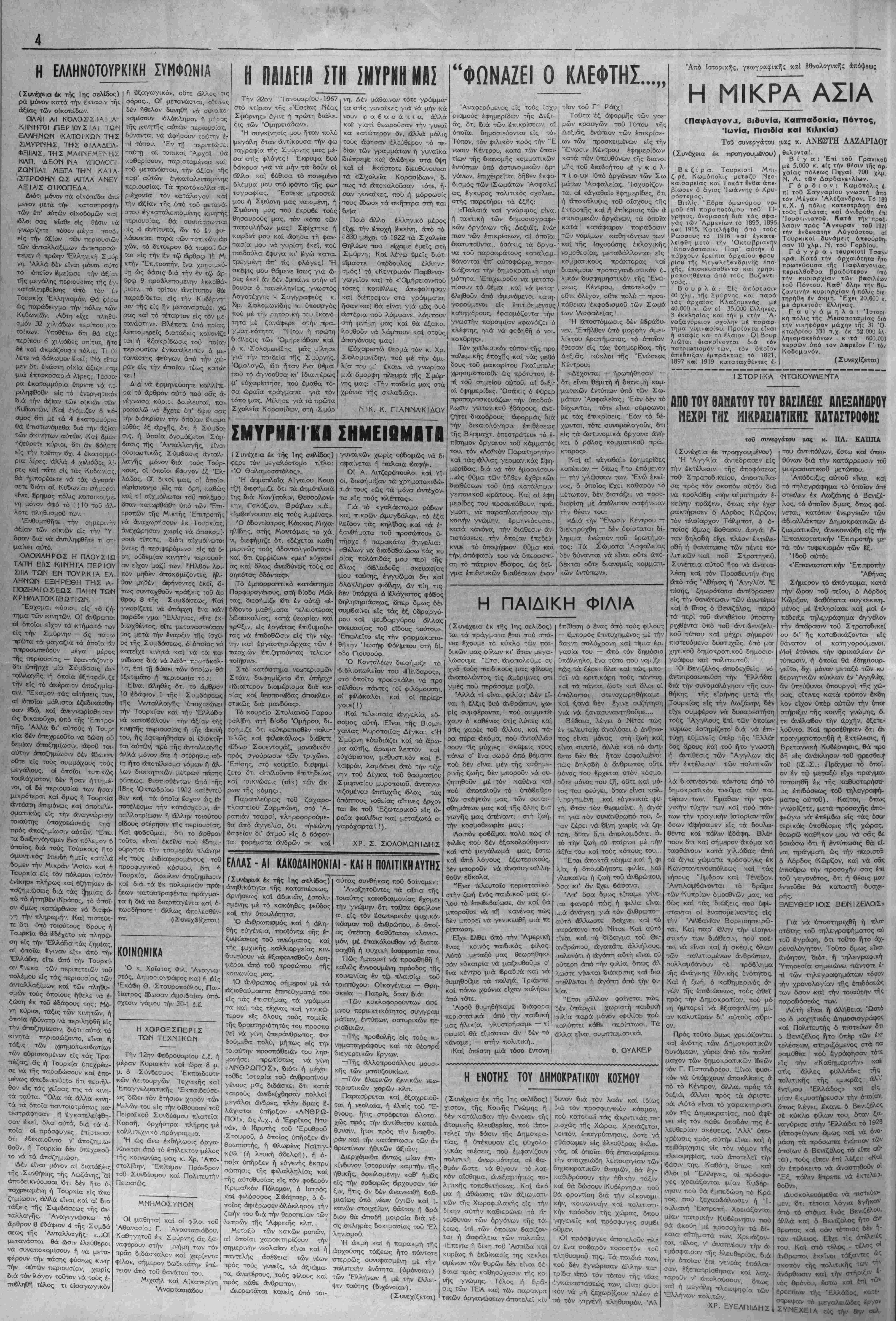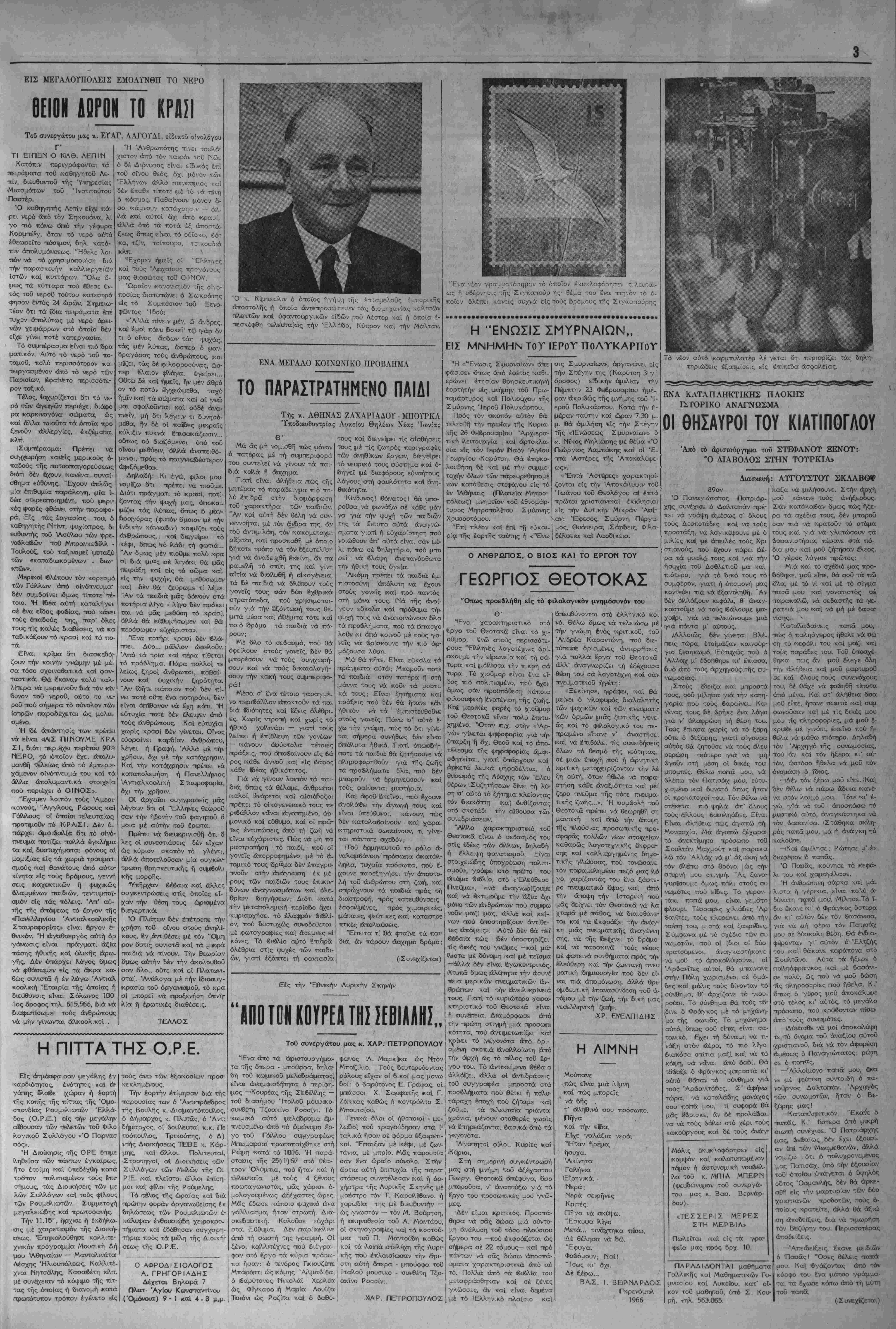 την ιαΛΙΘουσοΛ' τοΰ <Ποΐ(οναοσεΰ» ή προαγγελθείσα διάλεξις τής κ. Νυκολαΐδου διά την μέχρι σή ιμερον πνευματικήν εργασίαν τοΰ συνεργάτου ιαας κ. Χρ. Σο- λοιμωνίδη Ή 'έκλεκτή όμιλήΤιρια Ιπί μίαν καί ήμίσεΐιαν ώραν συ- νιΕκίνηισε μέχρι δακρύων τό πο- λ^τιληΐθέστατεν άκροοοτήριο καί τόν τιιμώμενον ιάναφερθεΐοα ιδί¬ ως είς ό.ν«μνήισεις άπο την άλη ομόνηιτον /Σιμύρνην. Τετάρτη 8 Φε6ρουαρ[ου ιΔζυτέρα 6 Φεβρουαριου 1|9θ7 "Αποφασίσηκης σηιμασίας διά τό Κοπριαικόν θεωρείται τό ου- νελΒόν σήμερον (10.30 π.μ.) Συμβουλιον 'Στέμιματος, παρά παρά τό γεγονός δτι θα #γινε απλώς ιάνταλλαγή άπόψεων χαί δέν επρόκειτο νά ληφθούν ά|ττο- φάσεις. Είναι βέβαιον δτι ή συζήτη¬ σις εκάλυψαν όλάκιλη,ρον τό Κυπρ.ακόν πρόδληιμα, όπως πά ρουσιόζεται σήιμερον ιμετά τάς μακράς, καί μέχρις ώιρας άτε- λεσφορήτους, έλληνοτουρκι- ικας δ.απραγματεώσεις καί τα 'δτϋμιουργηΐθέντα ζητήιματα είς τάς σχέσεις ΊΑΙΘηνών καΐ Λευκώ σιας, άλλά καί 'έντός τής Κό¬ πρου. ιΕΙναι έπ.σης, βέβαιον δτι αί βιαπραγματεύσ:ις ιμέ την Το-ιρ κίαν υπό ενιαίον μορφήν — τοΰ Στέμματος ύπηρξα ένδοτι- κώτερος από άλλοτε. Ψεύδος! Ύπηρζα ιμονοτόνως, συνεπής πρός την γραμμήν, την οποίον άνέκαθεν είχον χαράξει καί την όποιαν είχον έφαρμοσει κα:ί ώς Κυβέρνησις. ΠΈΤιΑΡΤΟΝ. Έγ,ράφη δτι ιδέν προοϊ&ιώρΐ'σα άπό ποίον Βοοίλήν ποέπει νά έγκοιθη ένδε- χομένη λήψις Ιόνΐτοφάσεως έττ'ι τοΰ Κυπριακοΰ. θά ήμην ευτυ¬ χή ς, εάν ή έθνιική λύσις, την ό¬ ποιαν έπιδιώχομεν, έπήρχετο τό σον συντόμως, ώστε νά εγκριθή κα] από την σημερινήν ΒονΛήν θά ήτο τουτο καί εΐδος έξαγνι- σμοΰ διά τάς πολλάς αμαρτίαις της... Δυστυχως δέν προβλέιηε- ται. Κατ' ανάγκην ή άπόφοκης ΐμπίπτει χρονΐ'κως είς την νέαν λαοπρόΐβλητον 'Κυβέρνησιν ««Α την νέαν Βουλήν. ΠΙΕΜΠΤΌΙΝ. Άνεγρόΐφη, 6^ τό Συμ'βούλιον άπένειμεν ε&ση- μόν είς τόν κ. Τοΰμπαν διά τόν μέχρι τοθδε 'χειρισμόν τοΰ θέ- μοπος. "Απολύτως άνακριβές Έτηρήθησαν, Εύτυχώς, 6 νογραφημένχχ πρακτικά, νά 'μή είναι δυν<ϊτη παραποίηκ σις. Έγώ, μάλιστα, επί πλέον, κατέΊθεσο: καΐ ίγτΐραφον ής Ε¬ ωμα διά την πολιτικήν της νώσεως Κέντρου επί τοΰ £θνι- κοϋ θέματος. Λυποθμαι, διότι έχρειάσθη νά προβώ είς αύτάς τάς δηλώσεις· ΊΑλλ" ιεΐχον, 'δυστυχώς, κατοοστη ώναπόφευκοι. Κα!ί διά νά συμτοεράινω: Έπιθυμώ νά δηλώσω, δτι^ χω πλήρη συνείδησιν τής νης μου ώς Ηγέτου της λης πλεισιΐΐτίφΐας των Καί ένεργώ πάντοτε υπό τό κρατος τής σΐ-<νει'οήσεως της ευθυνής. Αύτό συμβαίνετι καί είς τόν εσωτερικόν άνένδο- τον ιάγιώνα υπέρ της άληθους Δημοκρατίας, είς τόν οποίον &μ πνέο,μαι άπό αΤσθη'μα κσΑ ϋΐ· στεως καΐ ευθυνής. ΚοΛ συιμ**" νει έπϋσης καΐ είς την εσωτερι¬ κήν μας πολιτικήν, την ελληνι¬ κήν έξωτεοικήν πολιτικήν της "Ενώσεως 'Κέντρου. "Έχω πλήρη επϋγνωσιν τής Φι σιμότητος τοΰ έθνικοΰ Ψ και τήιματος, ή ύποια, όυστυχων δέν είναι γενικώς συνειδητή· Κ αί υπό τό κράτος τού αίοβή' ματος αυτής τής ίστορΐ'κής εύ· καθορίΐζω την εθνικήν γραιμμήν ^ης Ενώσεως Κέν¬ τρου»,