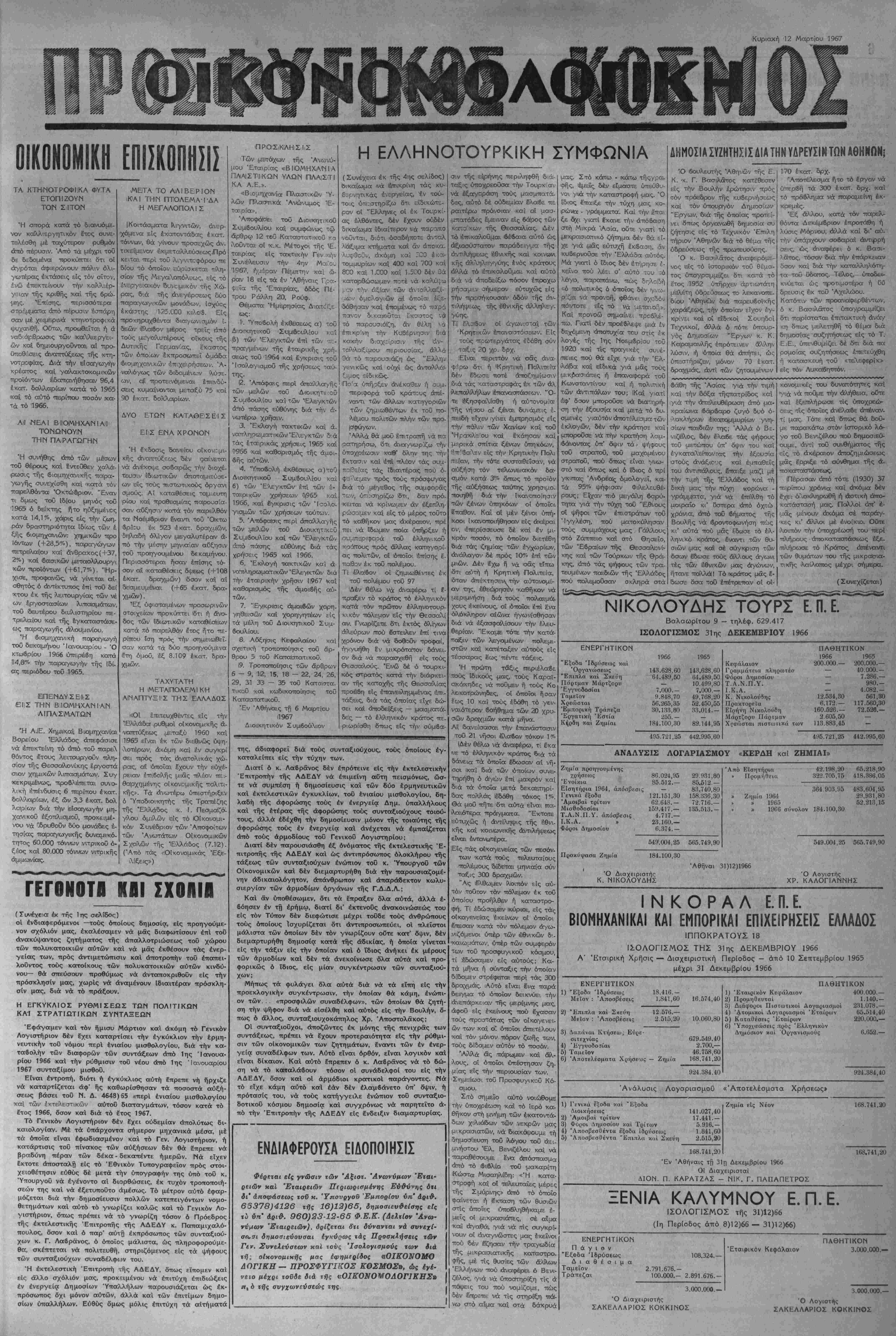 ιΚυριακή 12 Μαριου. 3967 Γιμή φύλλου δρχ. 1.50
