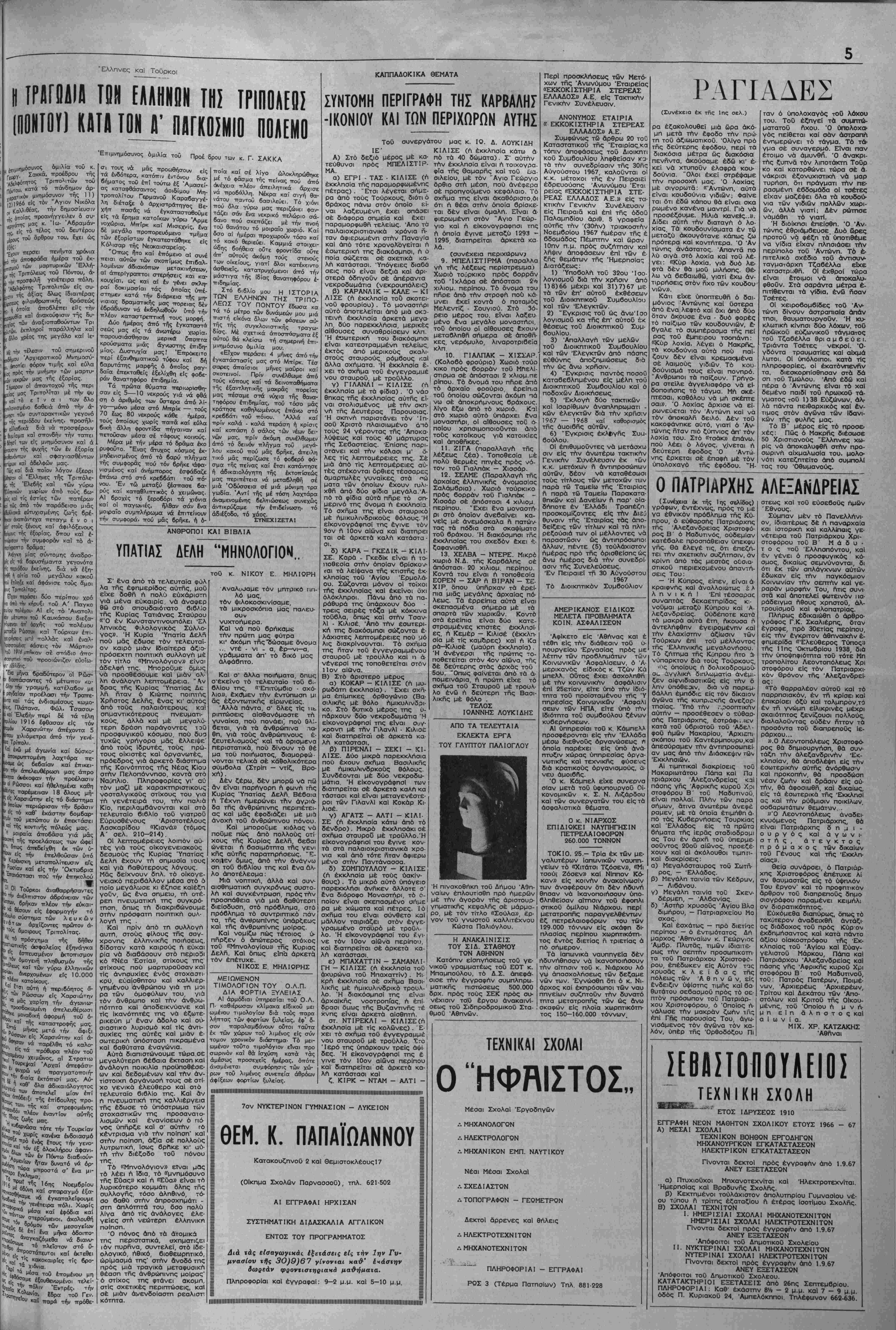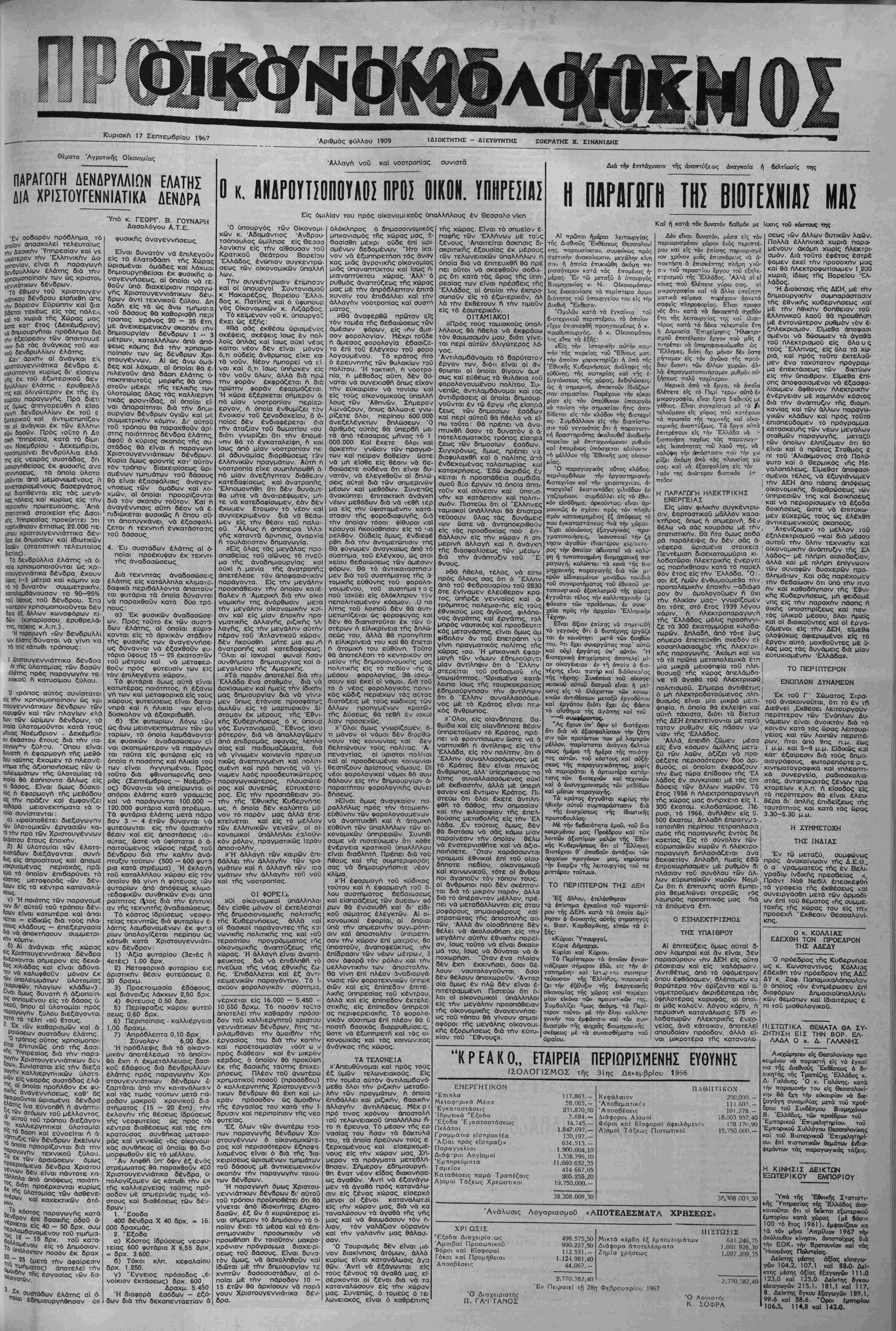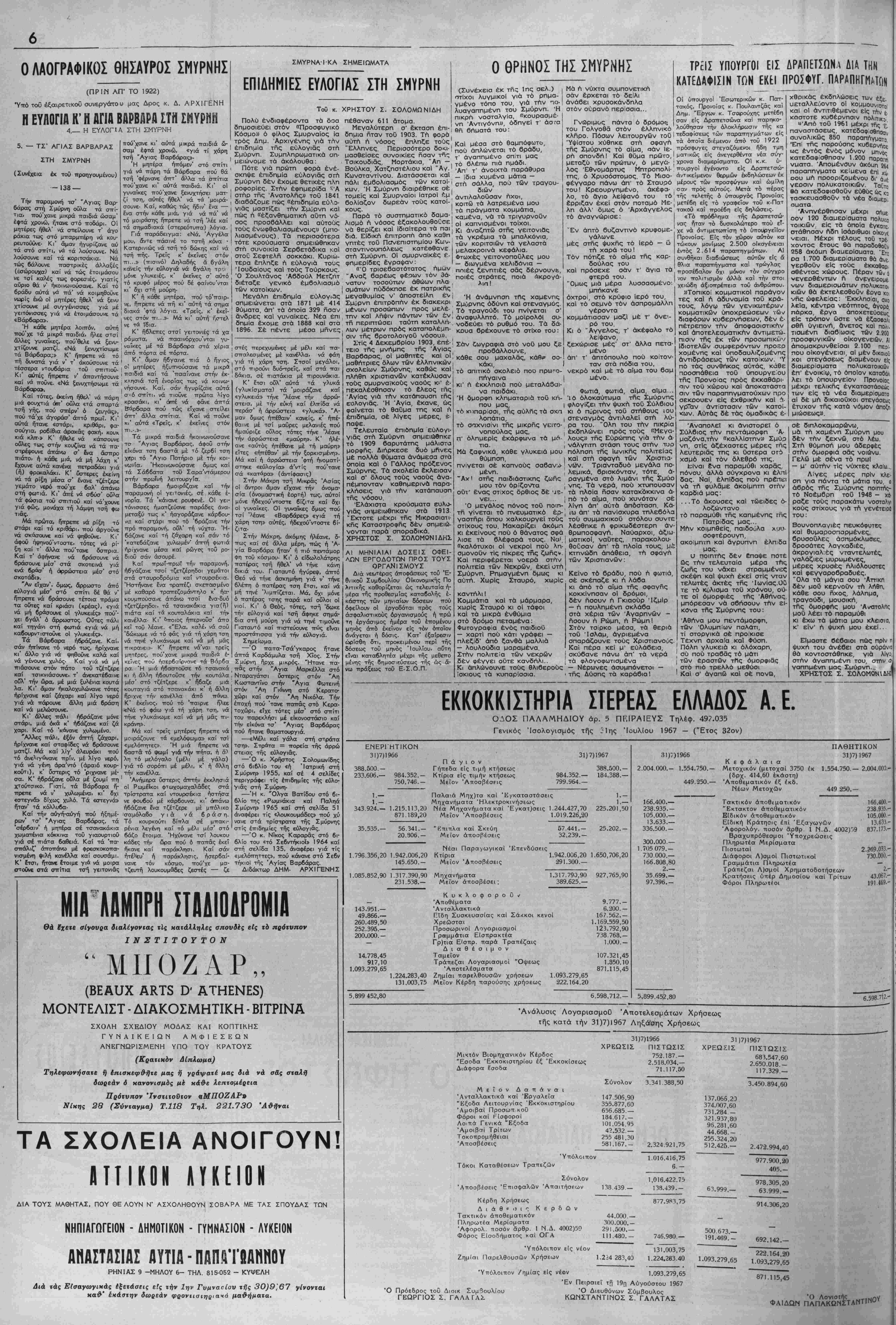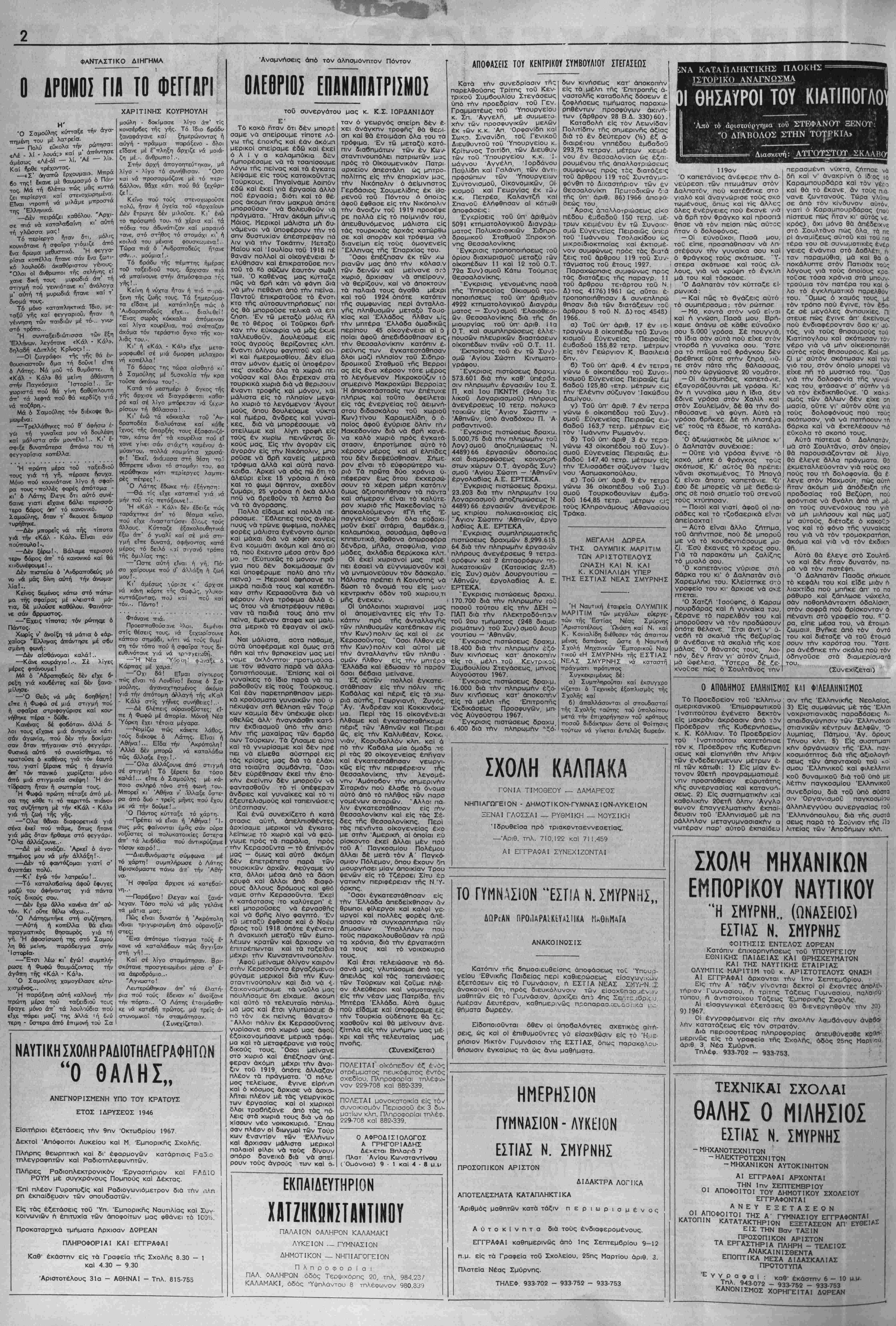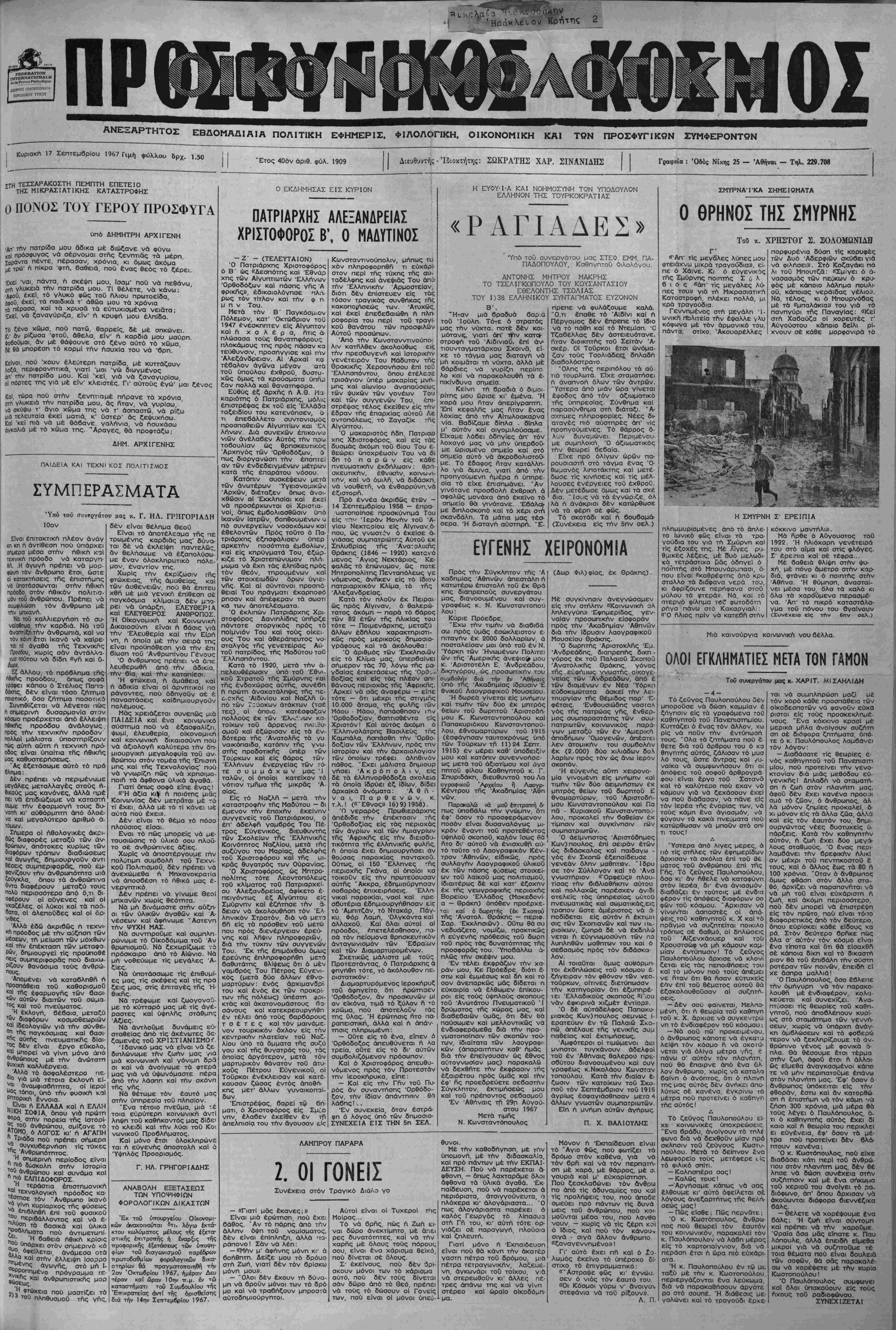 Κυριακπ 17 Σεπτεμβρίου 1967 Γιμή φύλλου δρχ. 1.