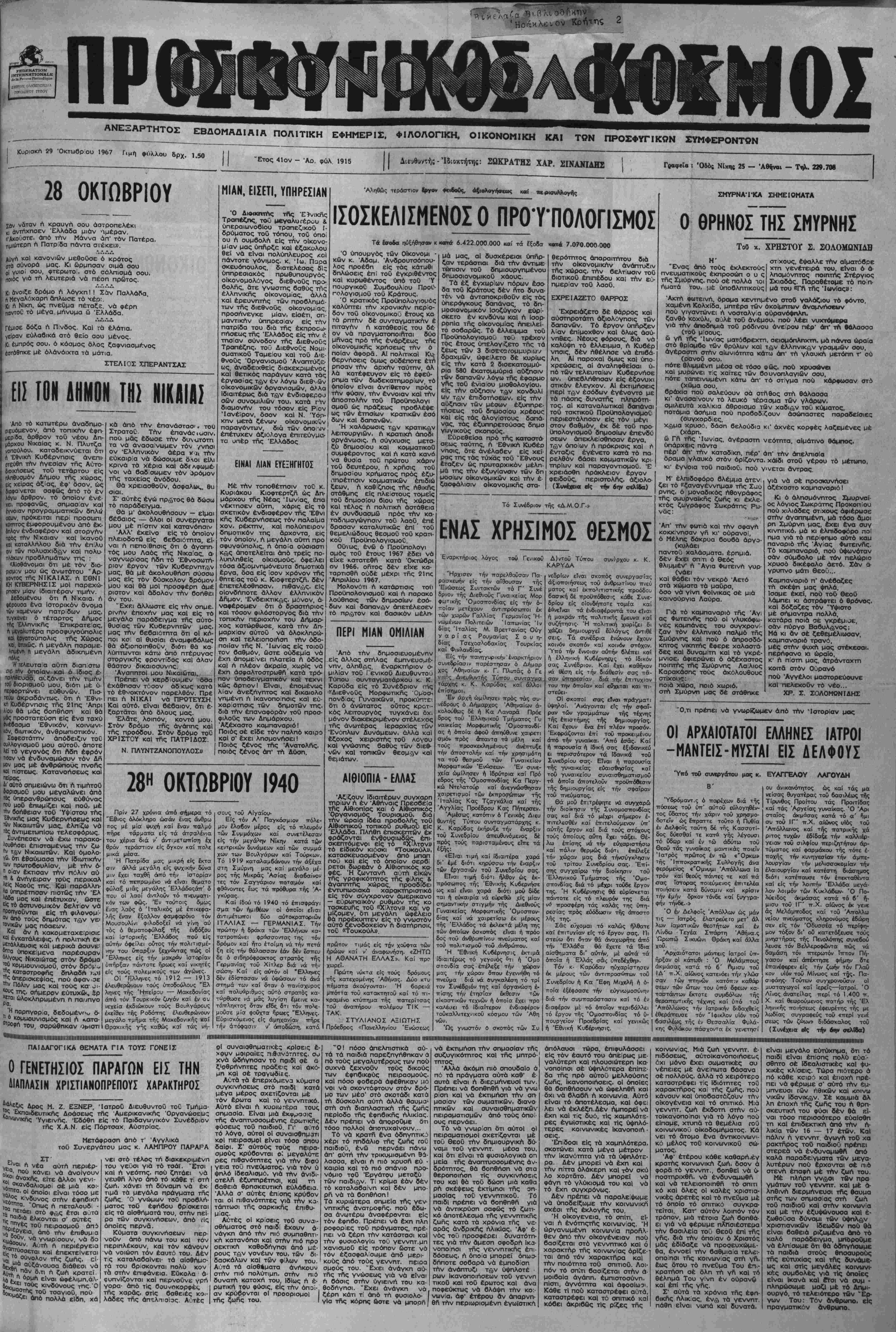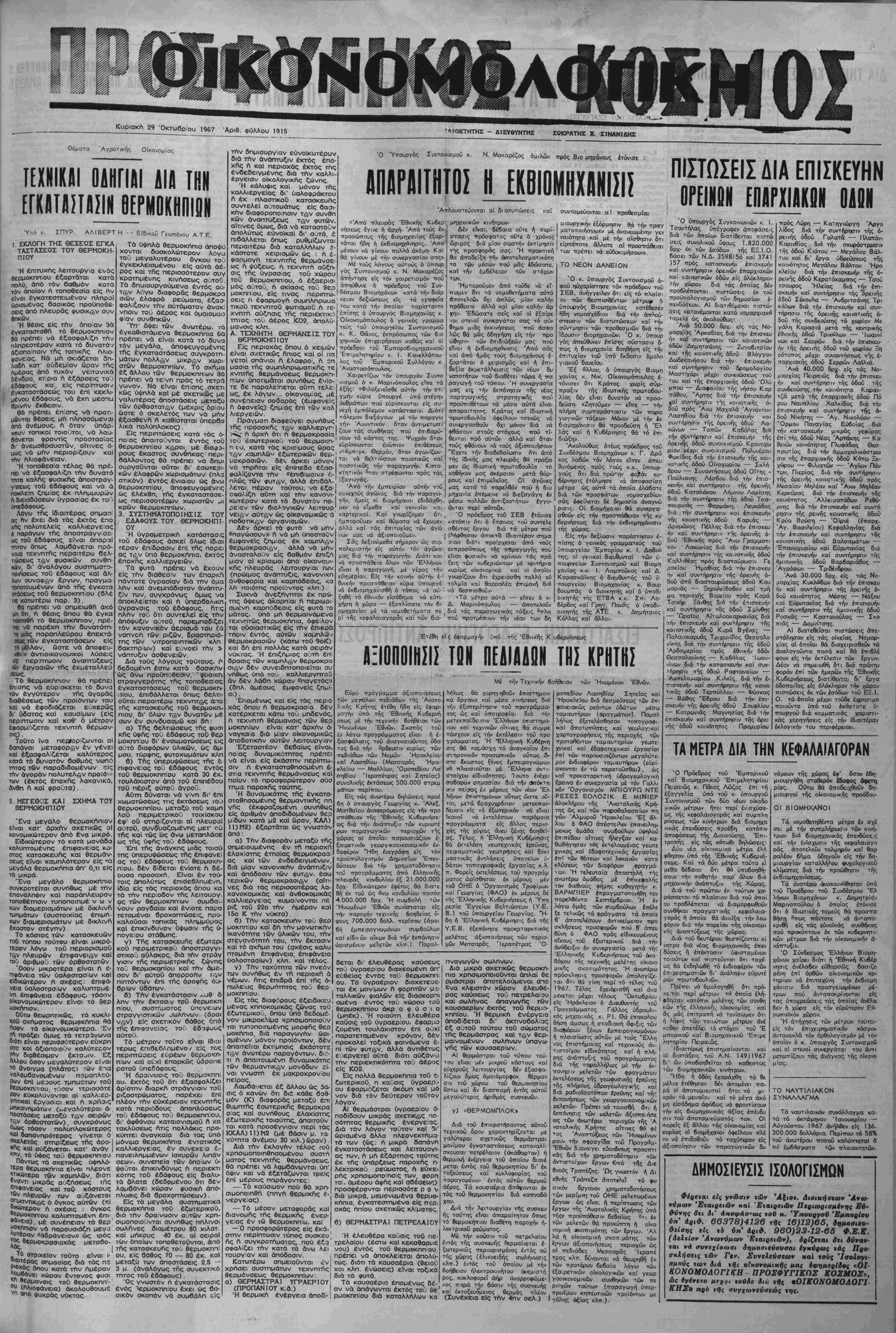 Κυριακή 29 Όκτωθρου 1967 Γιμή φύλΑου δρχ. 1.50