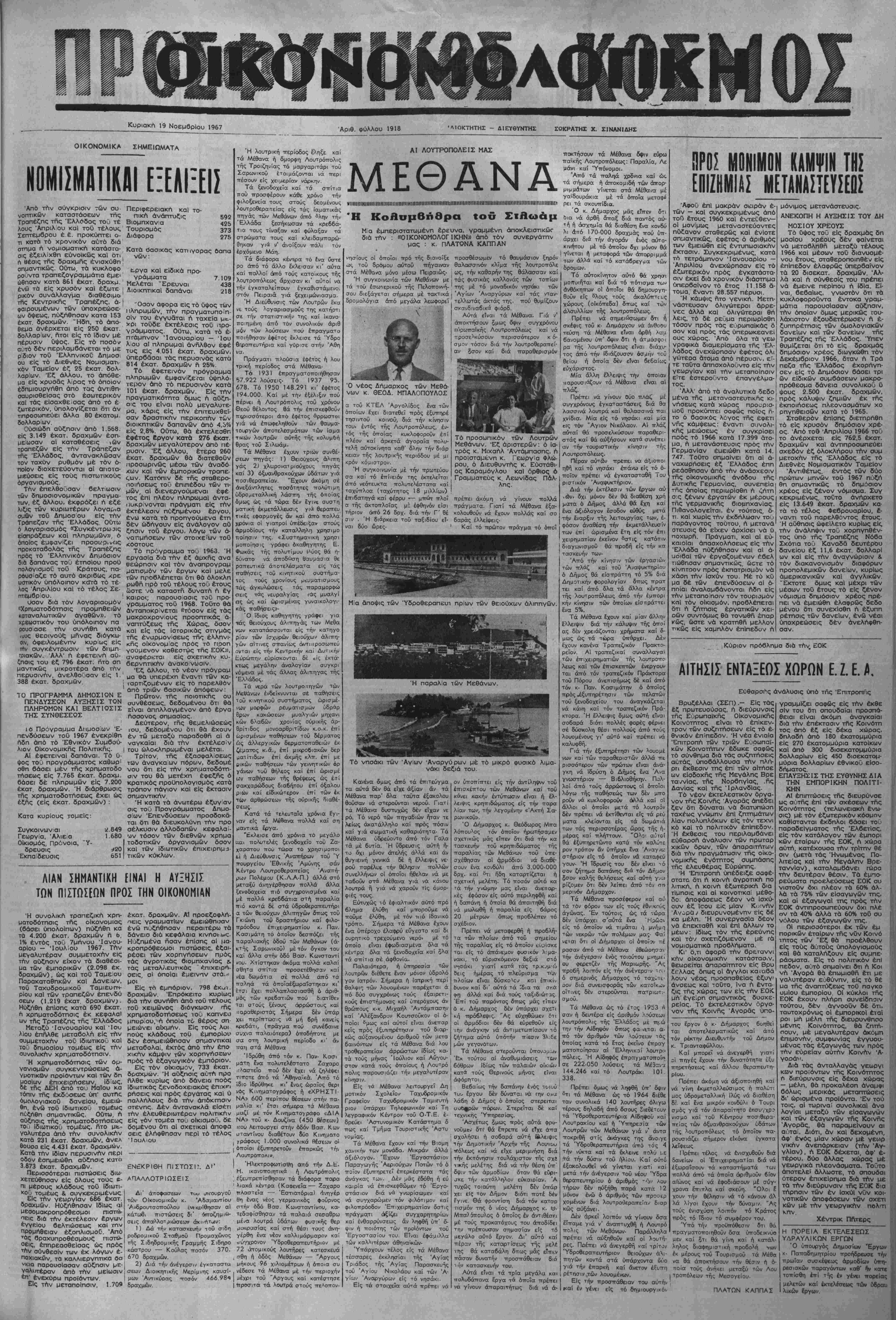 ΚυριακιΊ 19 Νοεμθρίου 1967 Γιμή φύλλου δρχ. 1.50