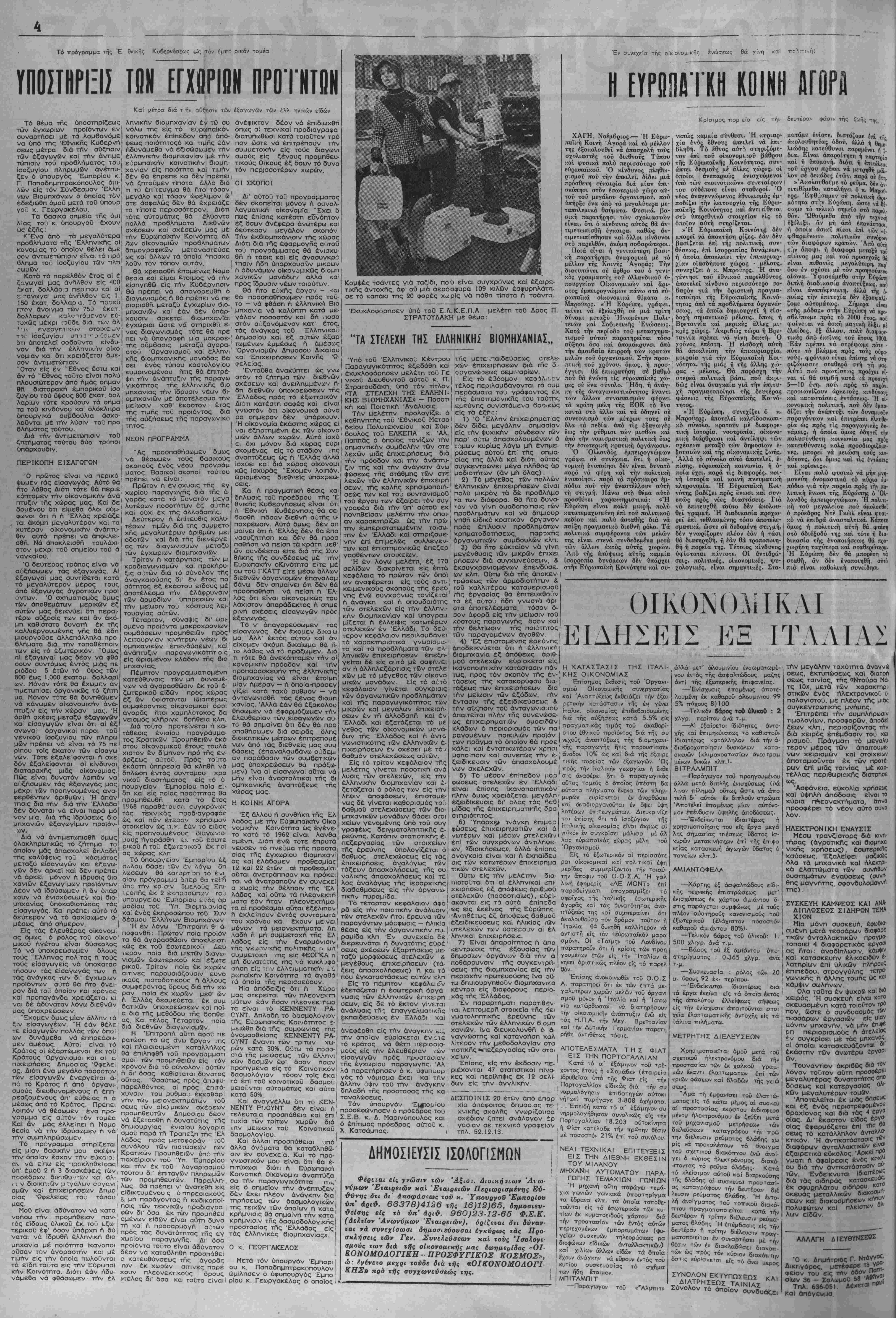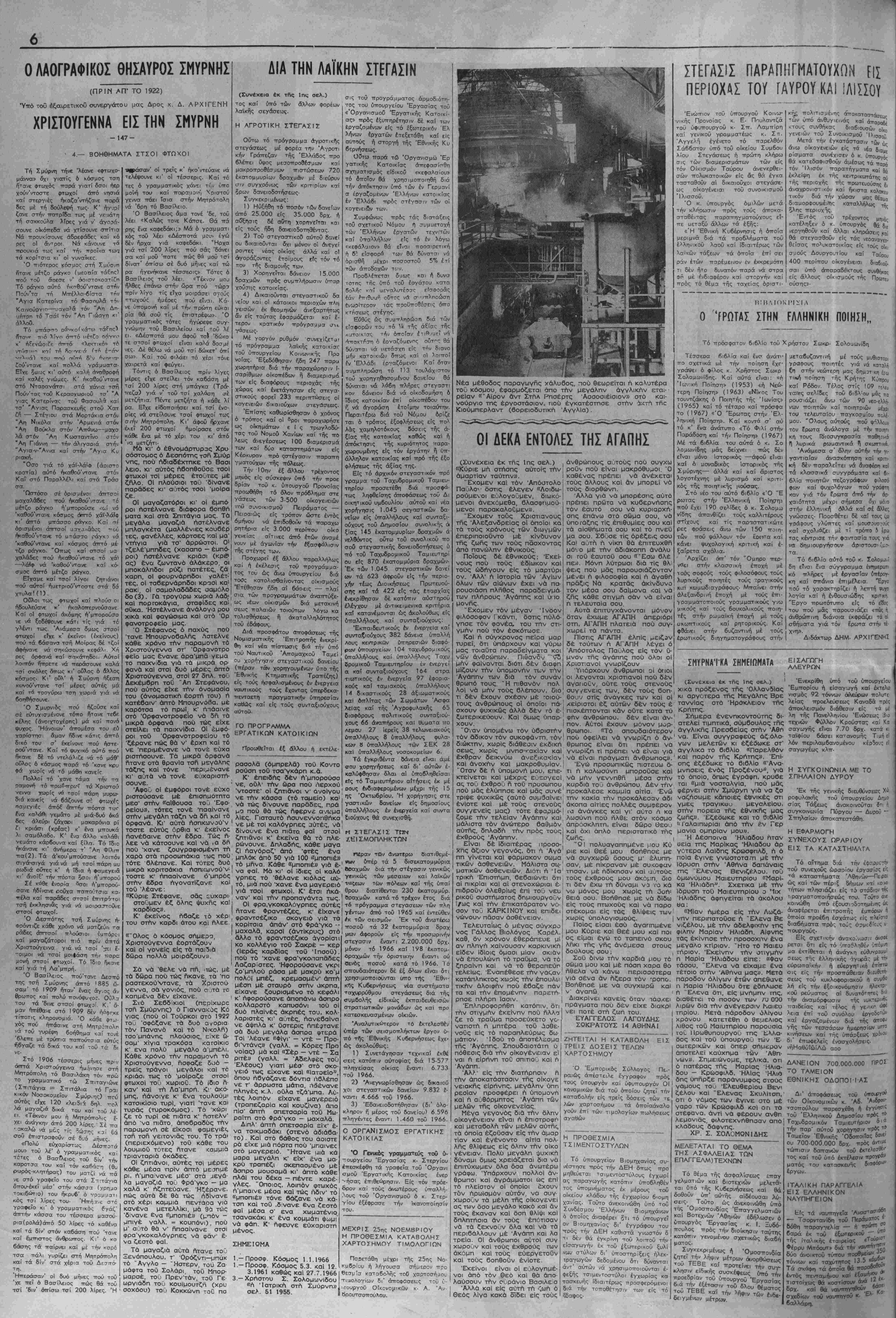 ακολούθως τάς ϋγιεΤς κο·ινο>ν<κάς δυνάμεις έν ονόματι κα! πρός τή συμφέρον των οποίων εγένετο ή με ταδολή διάτήν άναγέννΓΚΤιν τού "Εθνους. Καί ιδού ή ά—όδειξις: Διατίθενται διά τάς μεσαίας τα ςεις κα! τούς έργαζομένους των 'ών πόλεων καϊ τής ύπαίθρου άνω των 5 δισεκατομμυρίων διακοσΐω-1 ένενήκοντα ό<τώ έκατομμυρίων δρα χμών διά τό τρέχον ετος πρός ά πόοτησιν ύττ' αυτών στέγης συμ «ρώνως πρός άρτιώτατα μελετηθέν έκπονηθεν κα! χρηματοδοτηθίν εύ μύτατον ττρόγραμμα λαΐκής στεγά ΟΙ ΦΟΡΕ£ΙΣ ΤΟΥ ΠΡΟΓΡΑΜΜΑΤΟΣ Αναλυτικώτερον οί φορεΤς καί τα διατιθέμενα τιοσα έχουν ως α¬ κολούθως: 'Εθνική ΚτΓγματικη Τρά ,τεζα 1.775 εχατομμυρια δραχμών (το μεγαλύτερον ποσόν των όιπο! ψμ 6ιατ!θεται διά την ιδιωτικήν ατέγασιν) Ταμείον Παρακαταθη- κών κα! Δανείον 1.666 ίκατομ μύρια δραχμών Άγροτική Τράττεζα (κυρίως διά την όΐγροτικήν στε/ην /7Ο έκατομμύρια δραχμών Ταχυ- Τόν άθώον 6νθρω-ιο τον οτεύουν δλοι. Σκεφθήτε πρός διότι πρώτας καί θά ίδητε δτι οί άν γάπησε. ι έκείνοι πού έχουν επιρ επάνω σας είναι έκεινοι πήσωμε καί τούς έχθρούς μας δρομικά ιαμια/τήρια 870 έκατ. έκεϊνος τούς ή- λοιπαί Τράπεζαι (διά τούς ϋπαλλή ) 1 15 έύ δ άνω σας ενα πού σας πιστεύουν. Καί κοντά εζ τοθς άνθρώπους που σδς πιοτεύουν, ή ψυχή σας άνοίγε- ται παίρνει θάρρος καί ώνα- "τύσσεται. Είναι δέ περίεργον πώς έδώ κοί έκεί μέσα είς τόν σκληρόν καί συμπαθή αυτόν κόσμον ύ- π°ρχουν άκόμη μερικαί σπάνι^ α' Ψυχαί ποϋ δέν σκέπτονται ™ κακό. Αύτοι είναι οί Άθώοι " άγάπη ου λογίζεται τό κα κόν» δέν ζητεί αίτιολογίας-, °Λεπει πάντοτε την καλήν ό¬ ψιν των πραγμάτων. Τί εύλογία είναι νά συναντά κανείς τέτοι °υζ άθώους άνθρώπους οί οποί οί νά τόν πιστεύουν είλικρινά. υ' αθιόοι άνθρωποι όμοιάζουν °°ν τα μικρά παιδία. Είναι άκα £οΐι απονήρευτοι άναμάρτητοι ΕΙΛΙΚΡΙΝΕΙΑ ' Η είλικρΐνεια είναι ή ύψίστη «Ρ6τή. ό είλικρινής άνθρωπος ουδέποτε ψεύδεται οϋτε ύπο- κρίνεται. Και δταν ό άνθρωπος δέν ψεύ οεται δέν ημπορεί νά κάνη με νολην άμαρτίαν όπως είναι ή ϊ^εΐα, η Πορνεΐα ή Κλοπή, " Αχαριοτΐα δπου ύπάρχει ά- γαηη έκεί ε1ναι κα, ο Θεός υ ©εός είναι άγάπη. ΛΥαπάτε χωρίς ύπολογισμόν ν ορπδτε την στούς πτω- ^α1 ' πλουσΐους, οί όποί- περισσοτέραν άνάγ· Ας παρέχωμεν λοιπόν εοχα Άλλά είναι δυνατόν νά έ- φαρμοσθο£ν είς την πράζιν λους των) 1 15 έκατομμύρια δρα χμών Αύτόνομος ΌργανΜσμους 'Εργατικης Κατοικίας 91-5 έκατ. αύτά, ή τα γράφομε διά νά μέ δραχμών Πρόγραμμα ύπουργειου Μέ ά— οφασισ τικότητα άντιμετοττίζεται τό δλο τνρόβλημα μων διά τήν κατασκευήν δημοσίων θενται άπό τού Μαΐου καί έντεΰ κτιρίων σχολείων κλπ. βεν έναντι 275 έκατομμυρίων μό Ειδικώτερον τό στεγαστικόν πρό νόν διατεθέντων δι' ολόκληρον τό γραμμα τής 'Εθνικής Κτηματικής 1966 διά δάνεια πάλιν πρός στέ Τραπέζης τό οποίον έκτελεΐται μέ : γασιν Ιδιωτών μέχρι ττοσοΰ 150. γοργόν ρυθμόν χορηγηθέντα» μό 000 δραχμών κατά περίπτωσιν δέ νόν κατά τό πρώτον 4 μηνον τής Έ καετοΰς αυτά διαρκείας πρός 8% θνικής Κυβερνήσεως (Μάϊον—Αύ¬ γουστος έ.έ.) διπλασίων πιστώσε ών άπό τάς διατεθείσας δι' όλόκλη ρον τό παρελθόν έτος 1966 προ δλέπει 400 έκατομμύρια δραχμών διά δάνεια πρός έργατουπ«λλήλους στερουμένους ίδιοκτήτου στέγης 2ΟΟ.ΟΟΟ δραχμών κατά περίπτω σιν καί 1ΟΟ-ΟΟΟ δραχμών διά δα νεια συμπληρωματικά τών χορη γουμένων ΰττό τού ΌργαιΊσμοϋ Έργατικής Κατοικίας. Τα δάνεια ταυτα ι ό πρώτον χο ρηνούμενα είναι 15ετοΰς διαρκείας πρός 7% ετησίως ΰττάρχει δέ προ οπτική ικανοποιήσεως 5 000 περί που ττεριπτώσεον· 'Εΐτ'σης άλλα 