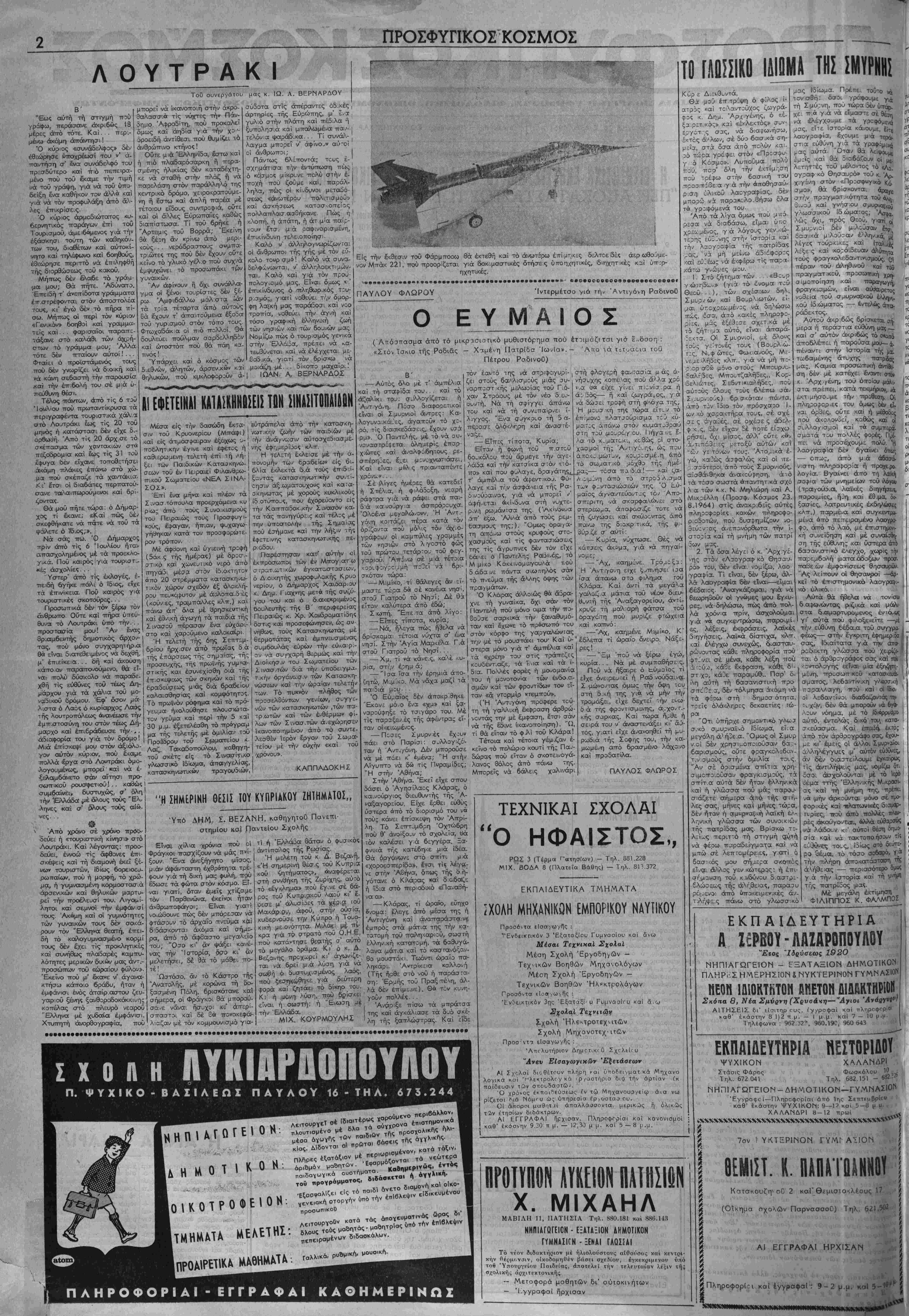 β<ράιτησαν μίΐρι της Συφάς ν° και έττι·μολως διττιλωμένο σέ ΕΛΛΗΝΙΚΟΝ ΩΔΕΙΟΝ 19 19 ΟΛΟΣ ΦΕΙΔΙΟΥ 3 - Τηλ. 620.098 ΑΙ εγγραφαί κσ.1 τα μαθήματα συνεχΐζονται Πληροφορίαι 9-1 καΐ 5 —8 κράπτκταν ,μδχρ. της Συμφοράς, νο κα, εττι,μεΛως δ.ττλωμενο σέ Ό έττιφανής Γάλλος ίστ,^.- καθαΡ0 Χ00^1 πωΛε'τ«ι <^τ« «ός Μττλανσέ τΓεριγράφων την μττακαΛιικα. στάσι τοΰ Νίκα στόν Ίττττόδρο- Τα τρία Τ στεγάζονται στό μο της ιΠάλης (532) γράφει ό- ϊβιο κτίριο. Τα γρά,μ,μαται δέν τι εάν ή επικρατήσασα επί ώ- ζυγίζονται. Δέν ΰπάρχει διά- ρας μόνον Δημοκρατία, έθεμε- κρ~υς γραμματοσήιμων. Ό ύ- λιοΰτο τότε καί 6έν άνετρέττε- ΤΓΟλληλος πιροσέχει μόνον τή το Ιάπό την όλ,ιγαρχία, άλιλη θά διευθυνσι τής έπιστολής καί δί- ήτο ή όψη τού ιΚόσμου έτσι καί δεί τό γραμιματόσημο. Τρείς ό άτταίσιος Νοέμΐδρυος τοΰ πέννες γιά την Αγγλία —μία 1920 ιξανάφειρε την συμφαρά μέ, δραχμή καί τΓέντ^ λετττάι— έξη πέννες γ ά την Εύρώπη καί 15 ττρννες γιά την Άμερκή καί τα άλλα μφη της Γής. Όλιγόλογες οί τηλεφαχΛκές συνδιαλέξεις γίνονταΐϋ μόνον ά¬ πό θαλάμους οί όποΐοι άφθο- νοΰν στούς σταθμούς τού ύττο- γείορ, σέ διάφορα σηΐμεΤα της τΓΟΛβως καί στά μβγάλα κατα- στήματα. "Η ερώτησις «μττορώ νά κάνω ενα τηλεφώνημα» είναι αγνωστη. Ή συνδιάλεξις στοι- χίίει τρ€ΐς ή τεσσαρες —έννες, οτη συσκεαή. Οί νυν κάτοοκο τοΰ Λονβίνου είναι ή όμτπρέλλα. Όττοιος δέν ε.χπ θά δ αβιραχή αν τόν ττιάση ή 6ραχή, έ<τός άν τπρολάδη καΐ μ πή σέ κανένα σταθιμό τοΰ ύ· πογείαυ. Σκάδες, στοές, μτΓαλ- κόν.α καί μαρκίζες γιά νά προ- φ'υλοτχθή ό διαδάτης δέν ύττάρ ν* ί",Ι « ■ χούν Γιά τα καί τούς μνημεΐα, τα πάρκα Έλληνας τού Λο-νθί- .·» .Ο." .- Ι« — ^α,,ρ Ν ΚΕΧΑΠΑΣ (Ιυνέχβια βκ αής 1ης σβλ.) Μαρία δέ ζή ττλέο^ σ' ένα τόιτο] δέν ττροσφέρει χαρά σ' ένα δι κό της ττεριωριισμένσν κόσμοΙ είναι λίγο πολύ κάτοι«ος όλοι κ,λήιρο-' τής γής. "ΕΞιχει σύγχρονη κσΐ Γή ττσ,ρο^σί·! σέ II 5ες σημείο:, χομο/ελα άπο <5. λες τής έφη,μερίδες, λήμ—ι ττο-1^1 λυχρωμη σέ δλα τα ττεριώικά, ^' ευρίσκεται σέ ά,μέτ.ρητες σκο- τενές αΐ3ουσες σιι/ε,μά, ττρο- έ<αταμμύρΐα ικαρ τσόατουλα ΚατοικεΤ ττλέον τταντοΰ, «τι.^1 3ά γίνη ή ττρώτη άλη9Β'/ή οαυι-1τ< λ.σσα τής τηλεοράσεως, Ί ιΚανείς 6έν ιά5 αίορ:ϊ στό ιο ^ ρασμά της, οΰτε έκεϊνος που 1 γγ στεύει είς την δικαία ,μορα· - σ ά των αγαθών Υ Κανείς δέν φέρεται μέ ιο» τ 5 όν τ,ράίπ,ο που φέρετοι είς τφ τ 3"υμτΓ0ΐ3ΐητι<ή, την νοστμούλα, * τΐΓ,ν άσημη. ' τ Καί έπει δή στήι' όμορφΑ ττροστίθεται καΐ ή ράτσα ή "Αν να - Μαρία εΤι-αι πλάϊμα μο- ναδ.κό, άστέρι διεθνοθς γορίας. Μαΐζί της, γλάστρα τυχερη Γτοτιζεται καί κάθε έλληνικόιο| Ί πίο ττού θά την φΛοξενεί, κ πλαίσιο έπικαρότητος πού την παροΐΛΤ'άζη. Τί τα θέλετε, μεγάλη 6πό9ί| σις ή όμορφιά. ΡΥΜΟΥΛΚΕΙΤΑΙ ΤΟ «ΕΒΡΟΣ» Είς τό υπουργείον ΝαντιλίαΙ άνεφέρθη τηλεγραίικιός, ότι ναυαγοσωστικόν «"Ατλσς» ττροΙ σέδεσε τό άκι;6έρνητον μιχρό| φορτηγόν «έΈ6ρος» καί "Κ, μο^ιλκεΐ είς τό Ηράκλειον ττ| Κρήτης. Τό «Έδρος» εΐχ£ κ«| ραιμεί'νει ά<υ6έρνητον άττο 1 χθές την νύκ,τα 40 μίλια νοτί^ τοΰ Ίταλιχού άκρωηηρκ Σ τταρτ.ιδέντο. ΔΙΕΤΥΠΩΘΗ ΤΕΛΙΚΩΙ ΤΟ ΝΟΜΟΣΧΕΔΙΟΝ ΑΡΤΟΠΟΙΙ-ΑΣ Επερατώθη υπό τής παρασκει,χΐστ.κής ή έττεξεργασ.α τοΰ _^ τος υπό τοΰ ΰφιητουργοΰ ^ ττορίοι; κ Ν. Κουντούρη ^ σχεδίου πεο! γχρ τής άρτοπο ΐας κτλ. Τό νόν τοΰ νομοσχεοίευ, ώς διετνπώ9η τελ χώς, θά θή δα την κατά νόμον τού είς χά ΰπουργεΐα σιμού και Οικονομικόν. ΕΘΝΙΚΟΝ ΩΔΕΙΟΝ Ίδρκτής· Μ. ΚΑΛΟΜΟΙΡΗ! ΓενικήΔιευθύντρια: ΚΡΙΜΩ ΚΑΛΟΜΟΙΡ.Ϊ Όδός ΣολωμοΟ 67 και Άριστοτέλους γωνία - (Τηλ.5'3.175 ΑΙ εγγραφαί καί τα μαθήματα ήρχισαν 67 γων