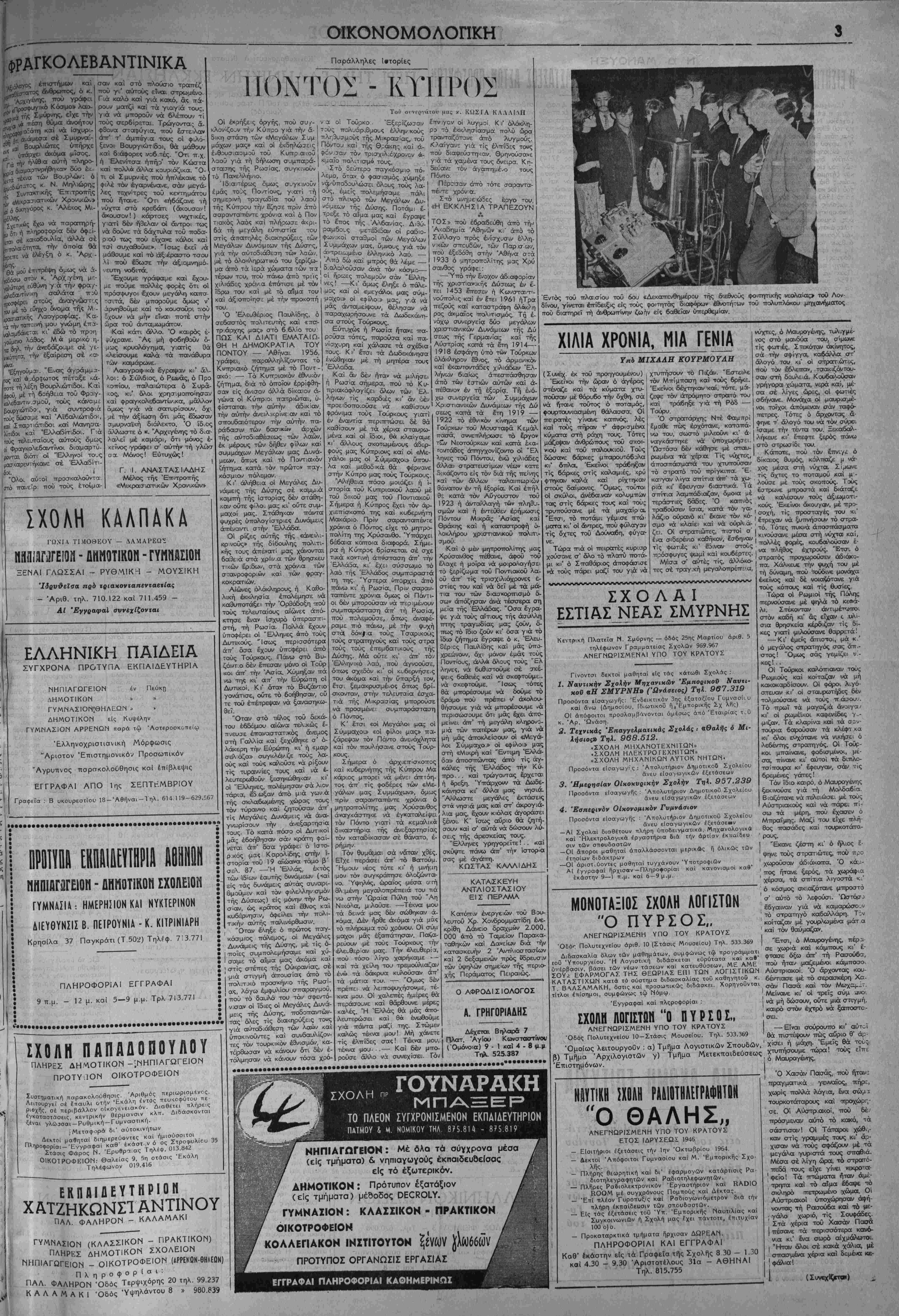0ρησ<ευτικοί ττόλεμο^ μεταξύ Ϊ<α3ελ ΐκΓ2ν καί Προτεστοοντών. Κα3' ιδλον δέ τόν Μεσαίωνα καί μέχρι τής ιΓαλλΐΐκής ΈτΓαναστά- σεως έκαίοντο ώνθρώττϋνα ττν- ροτεχνήματα ύττό ρασοφόρων δα μόνων. ΥΠΕΡ 200 ΟΙ ΞΕιΊ Α.Μ.ΤΟΥΒΑΣΙΛΕ0! ΐ1 καί πλέον ξ, πρασκΗκλΐ-,ιμένοι ευρίσκονται μερον είς "Αθήνας διά τούς <^ μερνούς γάμθΛς τού Βασ^Ι ως. Δέχα τρείς έστεμμένοι Τ πτά δά5αχοι, 114 ' «αί πρυγκήπισσες, ύττουργοί, κ.α. Μέσα είς τό πλήθος των τΓροσ<εκλημένων 6τιχ. <αί ώρ σμένοι οί οποίοι νόν νά μή προκαλέση ■ιυσΛ Γτολύ την προσοχήν τού κουνοΛ!ί& <ατσ την σημερυνήν γα "" ΓΓομττήιν, άλλά κατέχουν τικάς θέσε ς είς τό ΝΑΤ0 και *< οέν επ θυμοΰν νά χάσουν Ί^* «ευκαιρίαν» διά «π,ροκτικάς Γχί παφάς» ,μέ την Κυβέρνησις ρίως έττί τού Κυπριακού δέ αύτοι οί εξής: . Στρατηγός τατος δ ο κητής των τού ΝΑΤΟ είς Ευρώπην. ψι Ναύαρχος Τζέΐμς ΡύσσΛ^χ άρχηγός των δυνάμεων ΝΑΤΟ ά :σογείου. * Στρατηγός Μ«αέλ ς, γός των συμμαχικον τοΰ κλιμακίου Σμύρνης. 'Στρατηγός Γουέμπστερ ά» 4" χηγός των άεροττοριχών 6ιλι ών τής Ν.Α. τττέρυγος τού Μαύαρχος ΜαοΐΛτμπ(3ίΓΓ5,ί φ* άρχη/ός τού Βρεττανικοΰ ΝβΙ ^ αριχιείου Ιτέραρχος Φουρκιέ, γο,^ γρσ,μματεύς τού υπουργείον '& λ Α/.χης Αμύνης τής Γαλλίας. ' Οί ανωτέρω, καί κι/ρίως ο| ™ τζσσσρες ττρώτοι — οί σττοϋκ Λί ρ-'ναι Άμερικανοί — θα συναμ λίας μέ τόν Εδν κης Αμύνης κ. Γαρουΐ» ' λάν καΐ την στρατ ωτικήν ί|γί· σΐαν έττί των έττιτττώσευ» τή ίς Κυπρια<ού είς τάς σχέσις '& %ο ^-------' --- ' [δ καί Τουρκίας. Εί5 χώτερον, Ασκησ ς ττιέσεως διά την β—■, 5οιν τώ^ Έλλήνων ιάίξι <ων είς τό συμιμαχ κο γεΐον της Σμύρνης. Χιροναγράφημα Η ΑΝΝΑ — ΜΑ.ΡΙΑ (II (Έπεται τό τέλος) Βυζάντ ος, Τοσίτσα 10 εεεεεεεεεε^οεβι ο········· «·οο··ο·ο···οο·ο·οοοοοοο·ο··οοοε)ο···οο··οοο··ο·· ___ Η ΘΥΣΙΑ ΤΗΝ ΟΠΟΙΑ ΔΙΗΝΕΚΩΣ ΠΡΟΣΦΕΡΕΙΗ ΦΥΛΗ ΣΤΗΝ ΠΟΑΚ Ή Έστία ιΝέας Σμύρνης, ή μονοβική Κυδωτός των Μικ,ρα- σιατΊ<ών άναιμνησεων, άττέκτη- σε, χαρ ς είς τόν άκάματσν Πρό¬ εδρον της κ. Π. Χαλβέζον καί την μεσολάβησίν τού <κ. Χ. Σο- λο,μωνίβη, έ/α ττολύτι,μοιν χρΐΛ σόδετον λεύ<ω"μα τής Σμύρνης τοΰ 1864 Εξεδόθη έτπ τή ε¬ νάρξει, άκρ.δώς ττ,ρό εκατόν έ¬ τών, τής σιδηρα5ρομ ,ΐκής γραμ- μής Σμύρνης - Άΐδινίου καί πε- λσ,μδάνει σπανίας, μεγάλου σχήματος φωτογροφ'ας Σμύρ¬ νης, Έφέσου, Μαγνησίας, Άί- δινίου κ·ά. (Ευνέχβιβ έκ τής 1ης σβλ.) στρέψουν τα γεγο.ότα καί νά τπαρουσιάσουν το^ς ίκαΐ/θύς κοτί ττατριώτες σάν ττιρο!5ότες, δ ά νά έξούϊετερώσθι,ιν τόν ένοχο σκοττό τους. Καί Ιέτ^ι, τό χά- σμα, την ττροσμονη διά την α- ττελει.θερωση τής Έθνικής Έ στίας, τού 'μόλις την γνωρίο·α- με, την νοιώσαμε, την ιχαρήκα- με ιμέ την άδημονΐα ότι πάλι ένα νέο ιΚέντρο Πολιτικόν κσί Ονευματ κόν στην Πόλη στήν Ανατολή θά ιφωτίση μέ τόν τνο- λ.τισμό το^ τόν 'Κόοιμο, έχάθη γ.ατί τό τιτάνειο ιέργο τής Έ- θν»ϋκής μεγαΐλουργίας ήοέληισαν και επέτυχον νά σίΐνειχίθΌ-'/ ά νεπντιυχώς >καί όλεθρΐως οί λι,σ- < σαλέοι ττολέμ ο! τού τό 1920. ι Έττ^σημως άττο τούς -νικ.—τές σΜμμόιχους μάς εΤχε καταστή την ιΠολ νό[3ΐθωση. 'Αλλά &ς ελ- των δυτικών χΐςχι ή ττροσ3ο*ία θουμε τώρα, στήν ΠολΛρκ,ία! ιτώς οί Τοθρκο,. 3ά έξσ<ελου τής ιΠίιλτ-,ις καί στήν "Άλωσι {ι?οθσαν νά δείχ^ευν την ά εξ.- (1453). ιΚαιί άντιγράφουμε α- τγο τον ίστορικό Γ. Φραντζή ττού ,?;>-„,—. τ^ βρόΐμα. ΊΕττί 57 ήιμέ-