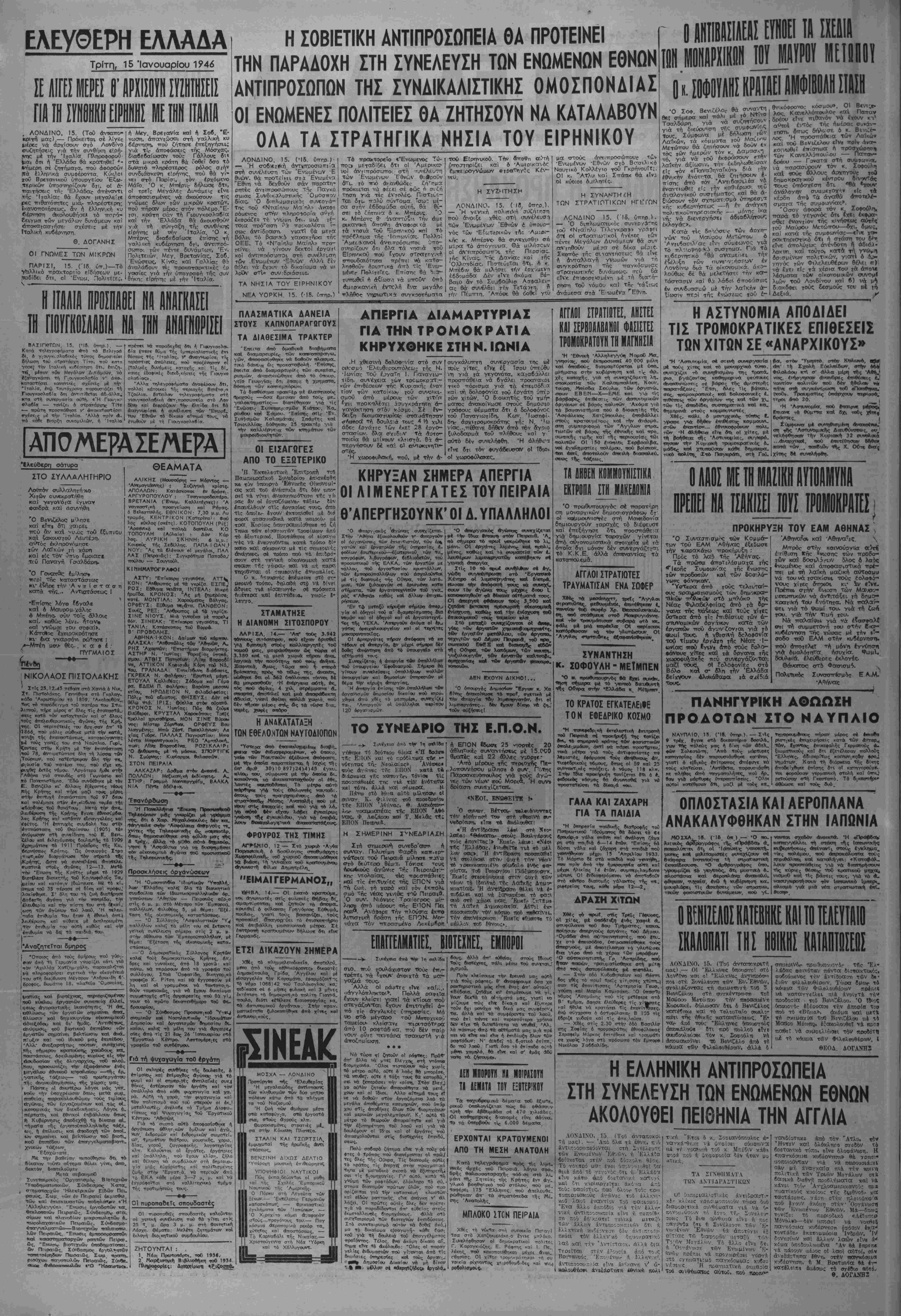 'Αδήνα, ΤρΙτη 15 Ίανουαρίου 1946