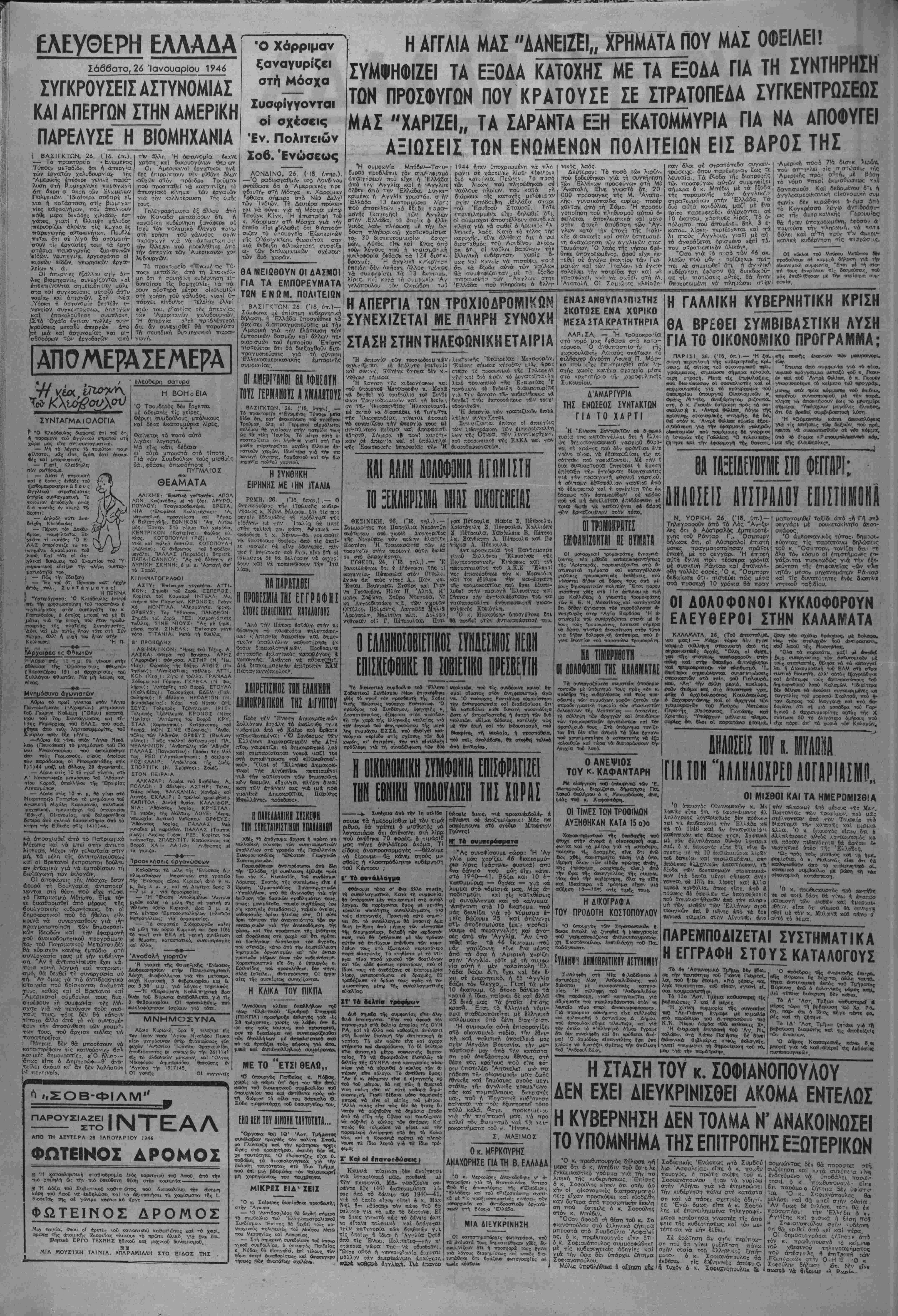 'Αθήνα, Σάββατο 26 Ίανουαρίου 1946