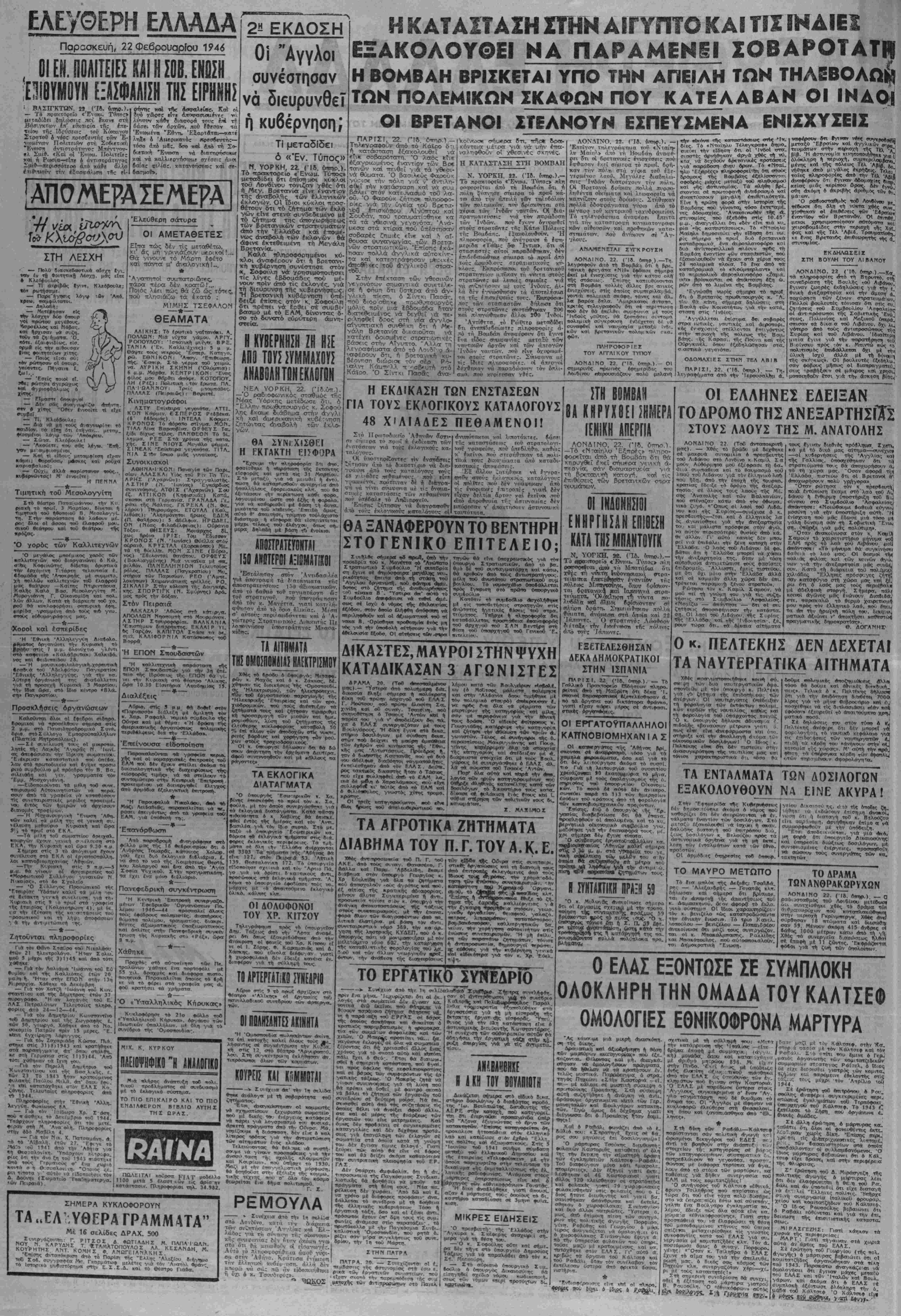 , Παρασκευή 22 ΦεβρουαρΙου 1946