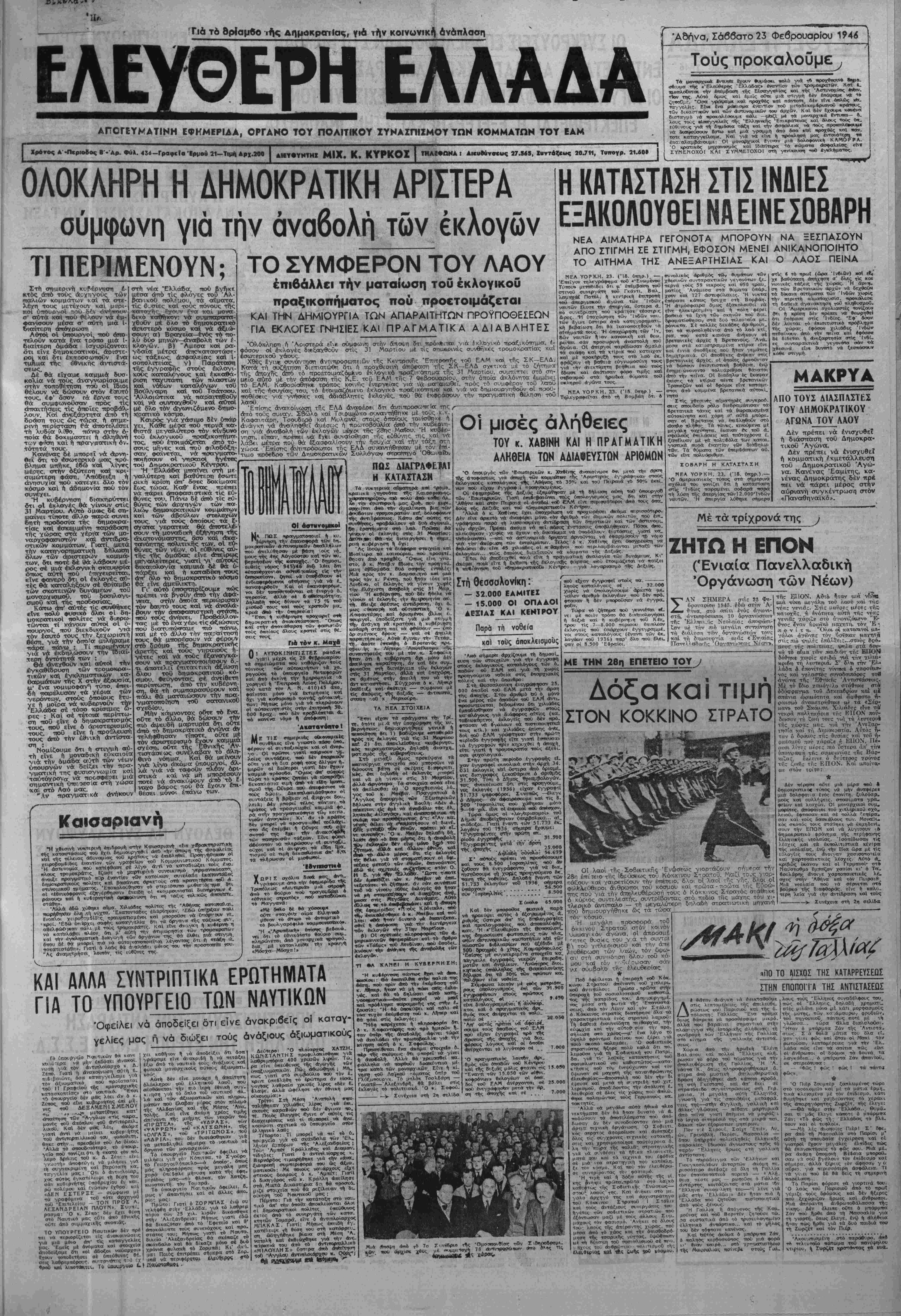ίΕ^>κου<ί κατβλόγους. Ποραίβίτει τή« *κο·ο~ι τής Κιντρι,κης τοθ ΕΑΜ οκά —ιους δρους θά ί—ιρνί τ6 ΒΑΜ μί Ρ?ς.<"ΐ5 **λ·Υ*<: ««Ί χ—αλήγιι μ* τή βιαπίστω— βτι τα μ<Λχΐαχοφ—ι.