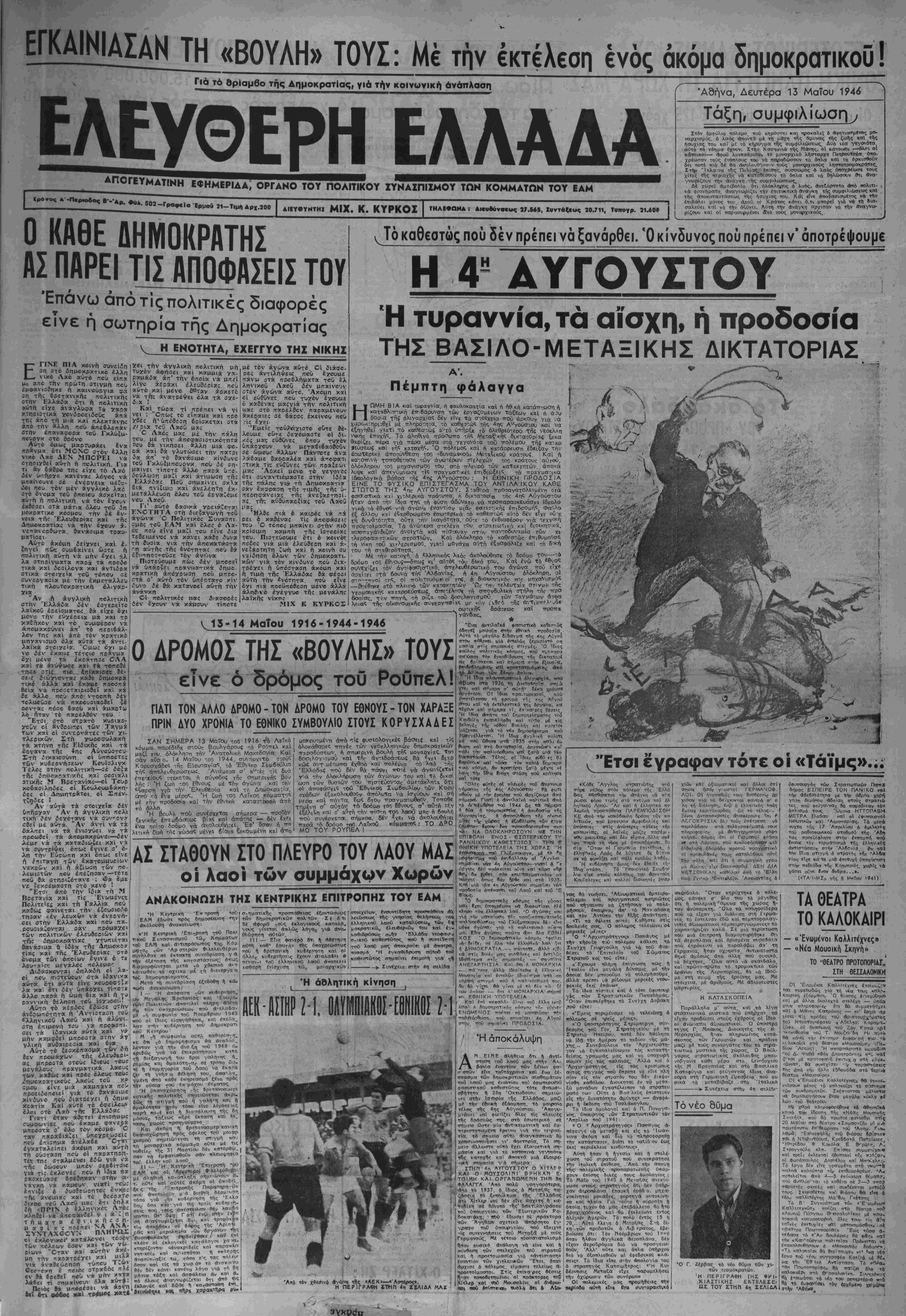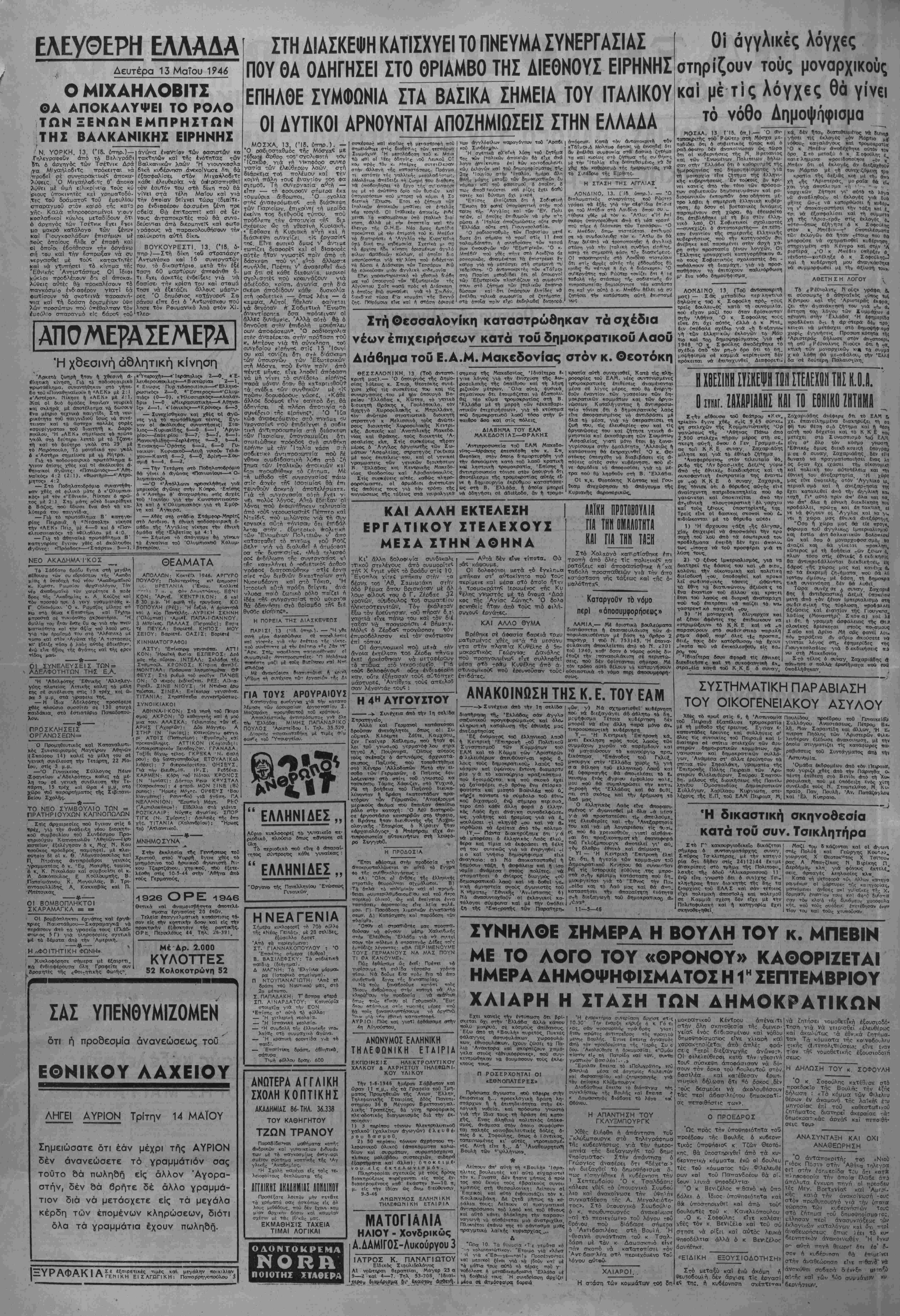 ^ Ά9ήνα, Δευτέρα 13 Μαΐου 1946"