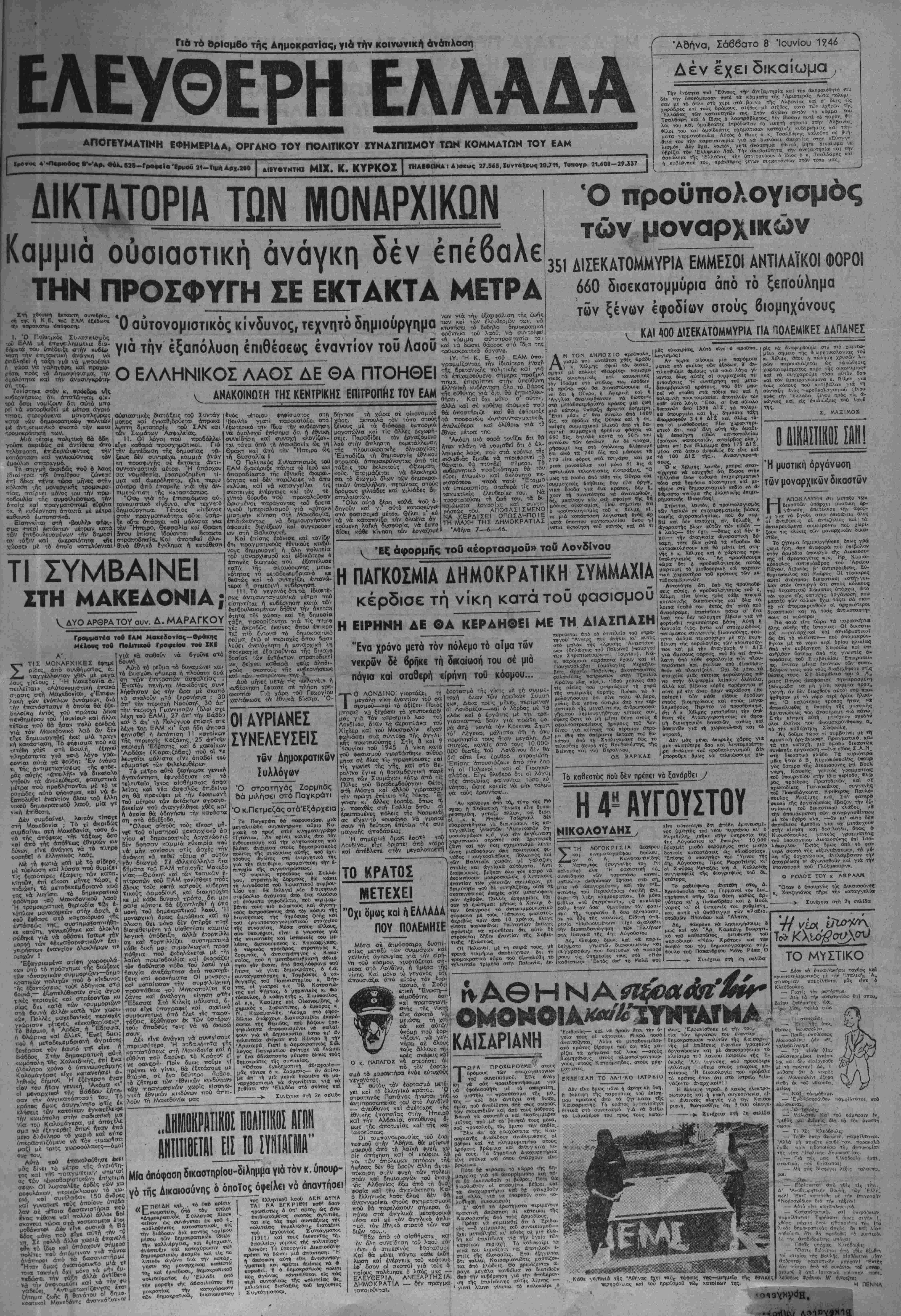 τΛ νόιιΐΜΠ αώτοττροσ-ασία ~ο<) κα νά δώσει θάρρος σ-ά "δια "ΐκ τοθιιοκρΐ-Λκά δργσνχ. Ι Υ. Ή Κ. Ε. τοΰ ΕΑΜ ίπτο- γρσομϋίζον-χις την ϊδιαί-.ερη ένοχΛ τής βρε:<χνικης ■ρ^ολ1-Λκή^ κσι γιό τα έτΛχει ρούμενο σημερα ττραξικ·*· έτΓΐρρίτττεΐ σ'ήν ϋττεύβκνη ημραικάν μί άντικειμεν*κό «τκοττό την κατα ιρομοκρότ:τ>ο;ή των.