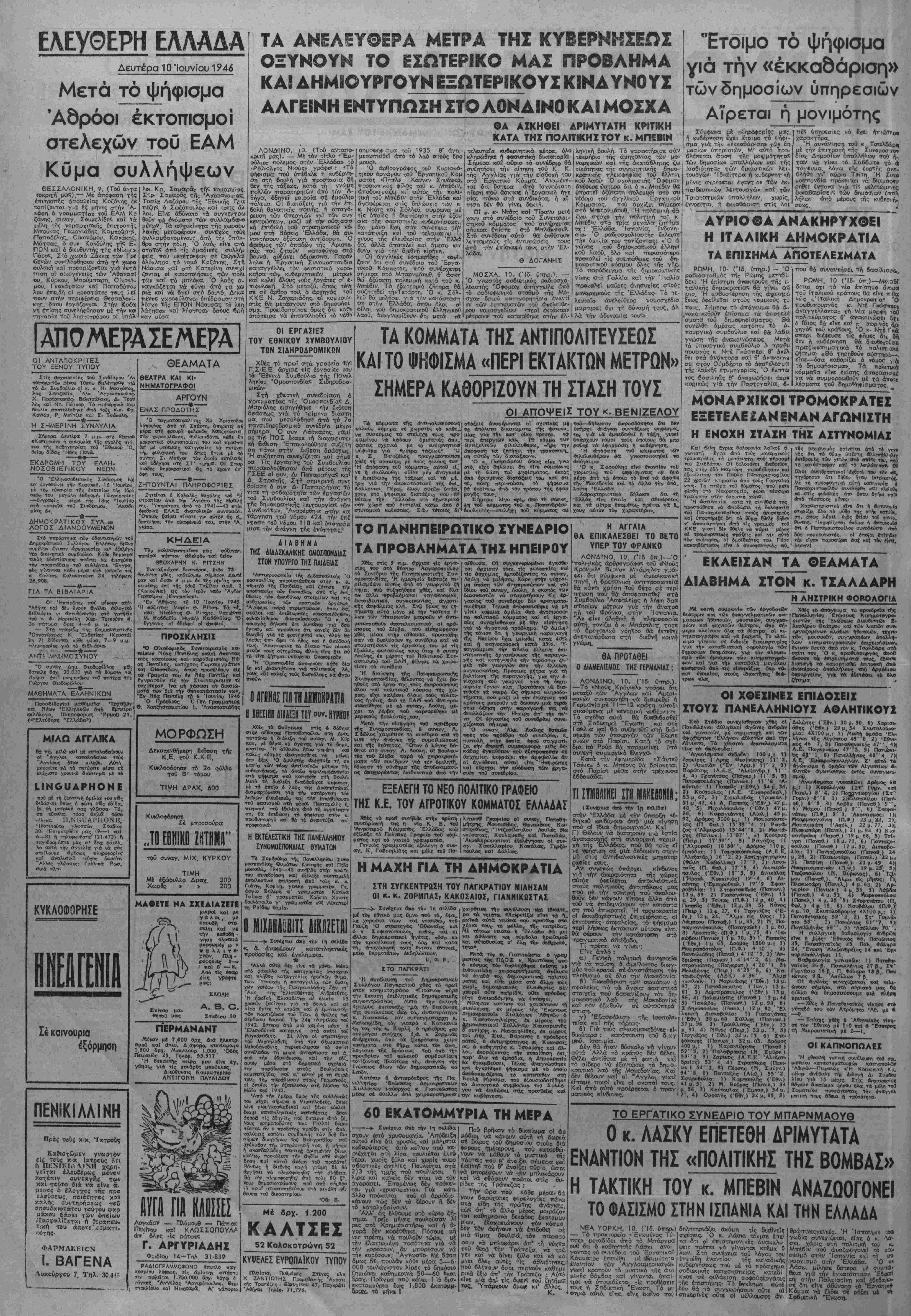 Άδήνα, Δευτέρα 10 ΊουνΙου 1946 ]