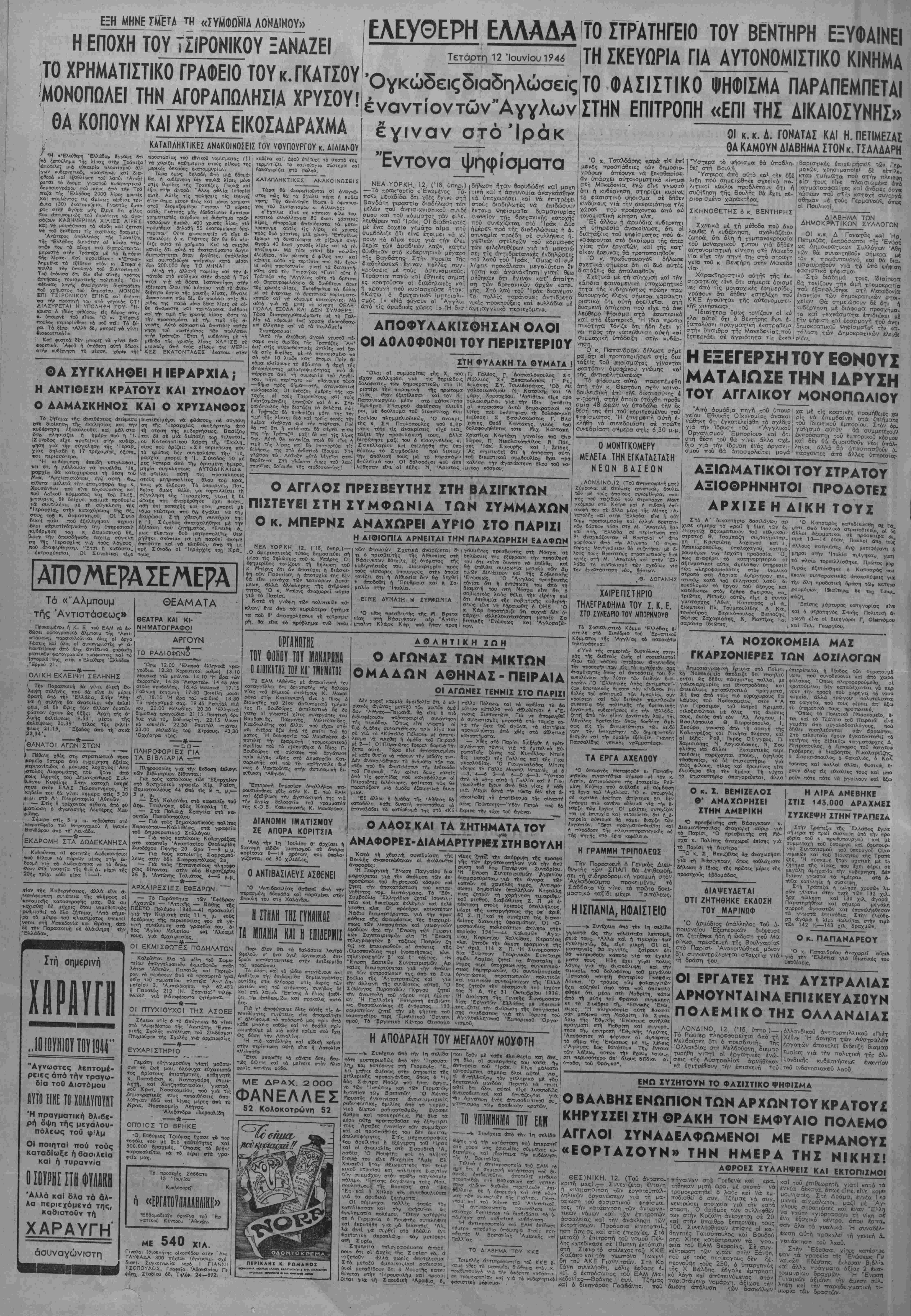 Ά&ήνα, Τετάρτη 12 Ίουνίου 1946*
